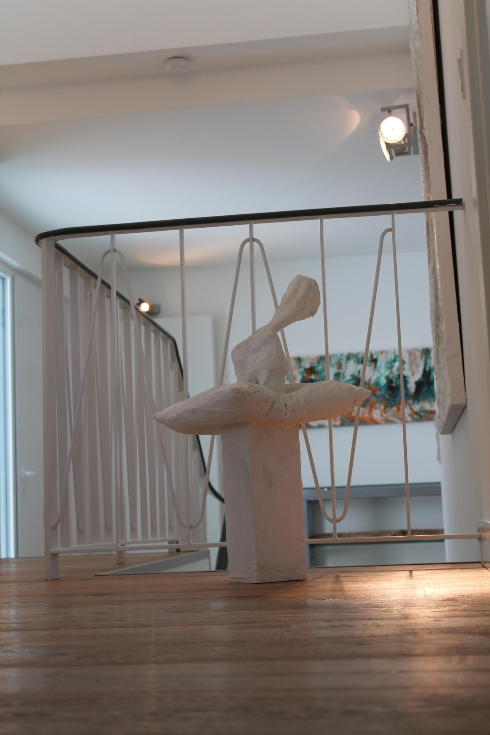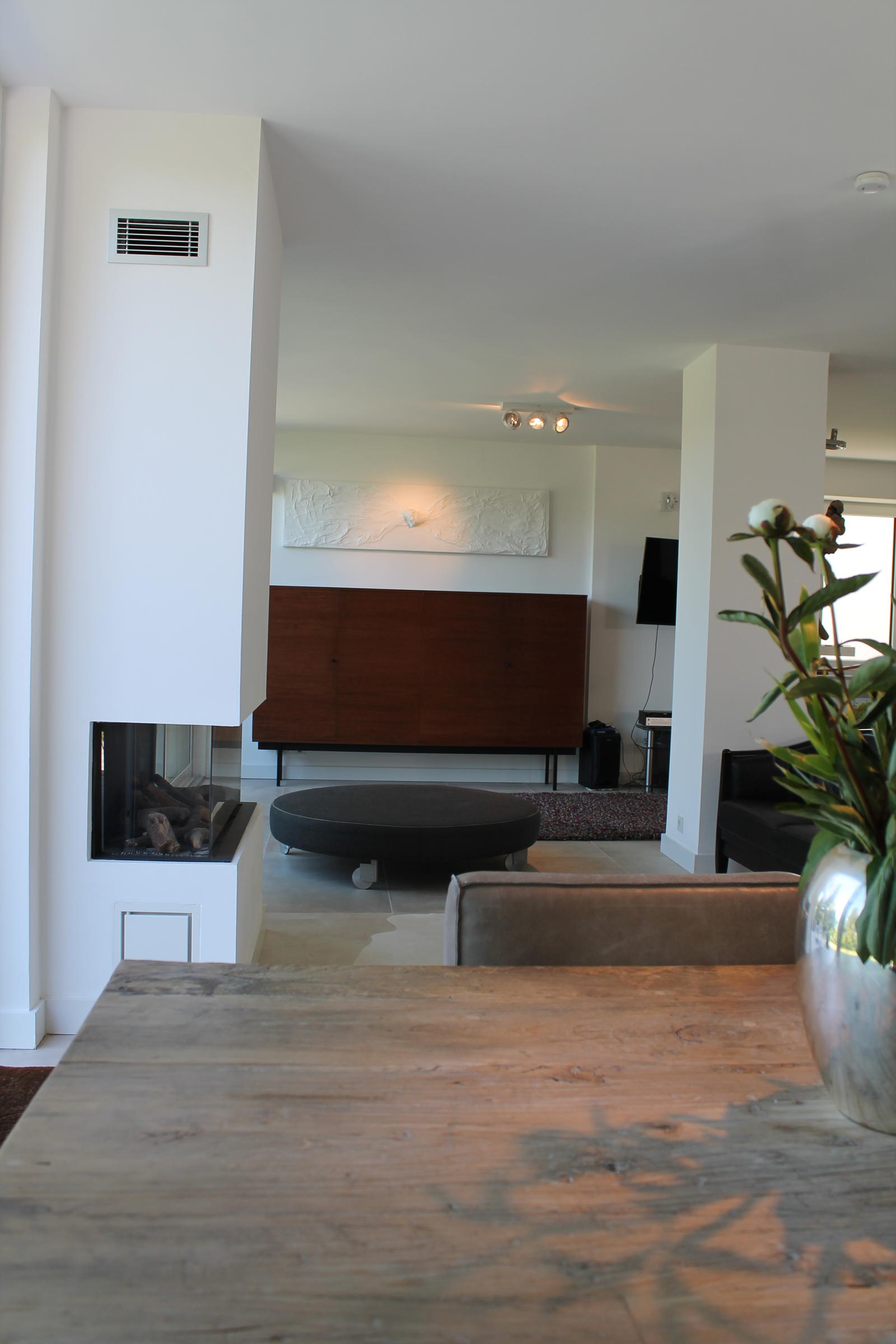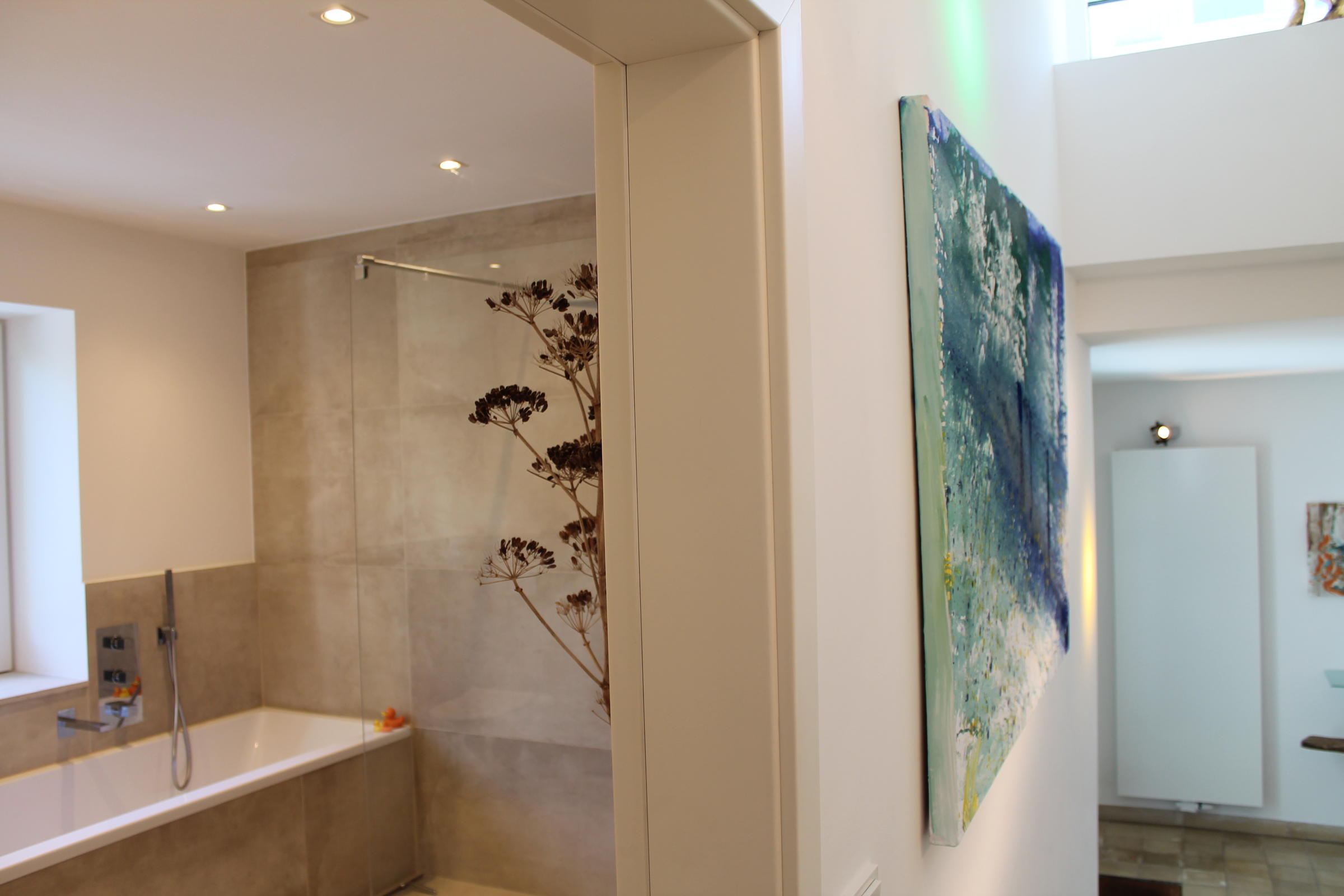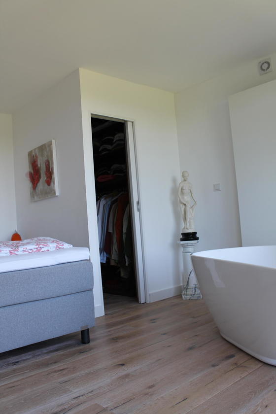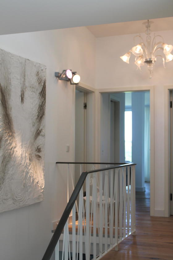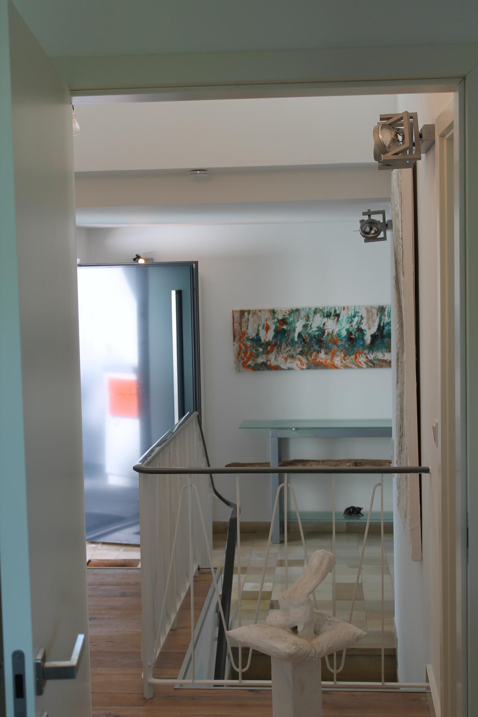 Zur besonderen Ausstattung des Schlafzimmers gehören Badewanne, Gaskamin und bodentiefe Fenster (auch Hebe-Schiebeanlagen) mit atemberaubender Aussicht auf den Sonnenuntergang. Außerdem hat das architektonisch reizvolle Haus eine zweite Küche, drei Badezimmer, zwei Arbeitszimmer, ein Kinderzimmer, ein Gästezimmer und einen Waschraum. Natur-, Weißtöne und robustes Ulmenholz sind Ausstattungsmerkmale im Innenbereich. Die Besitzerin ist Künstlerin. Ihre Kunstwerke hängen im ganzen Haus.