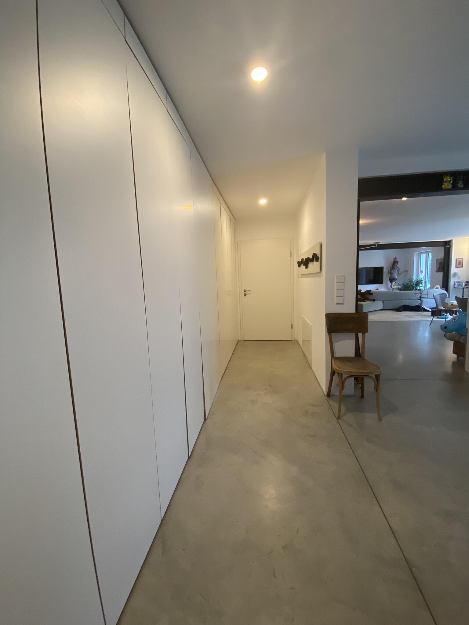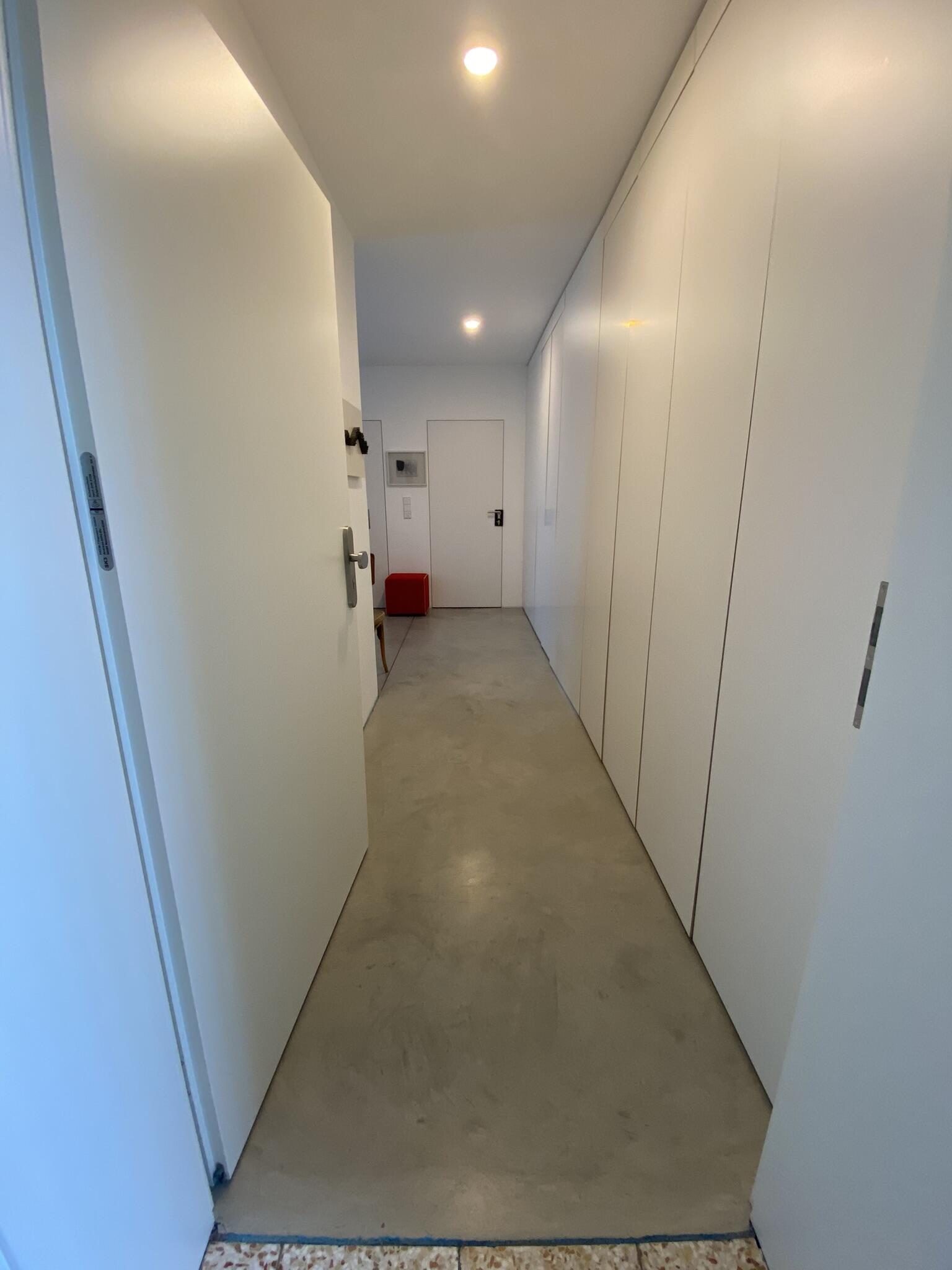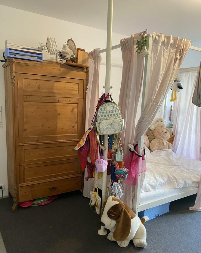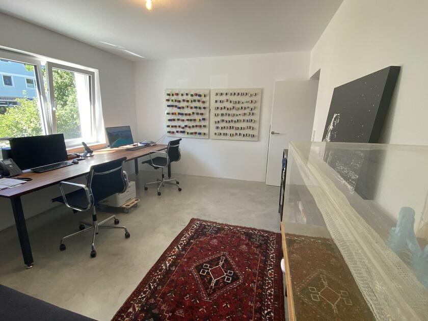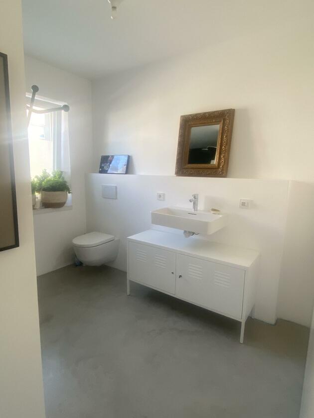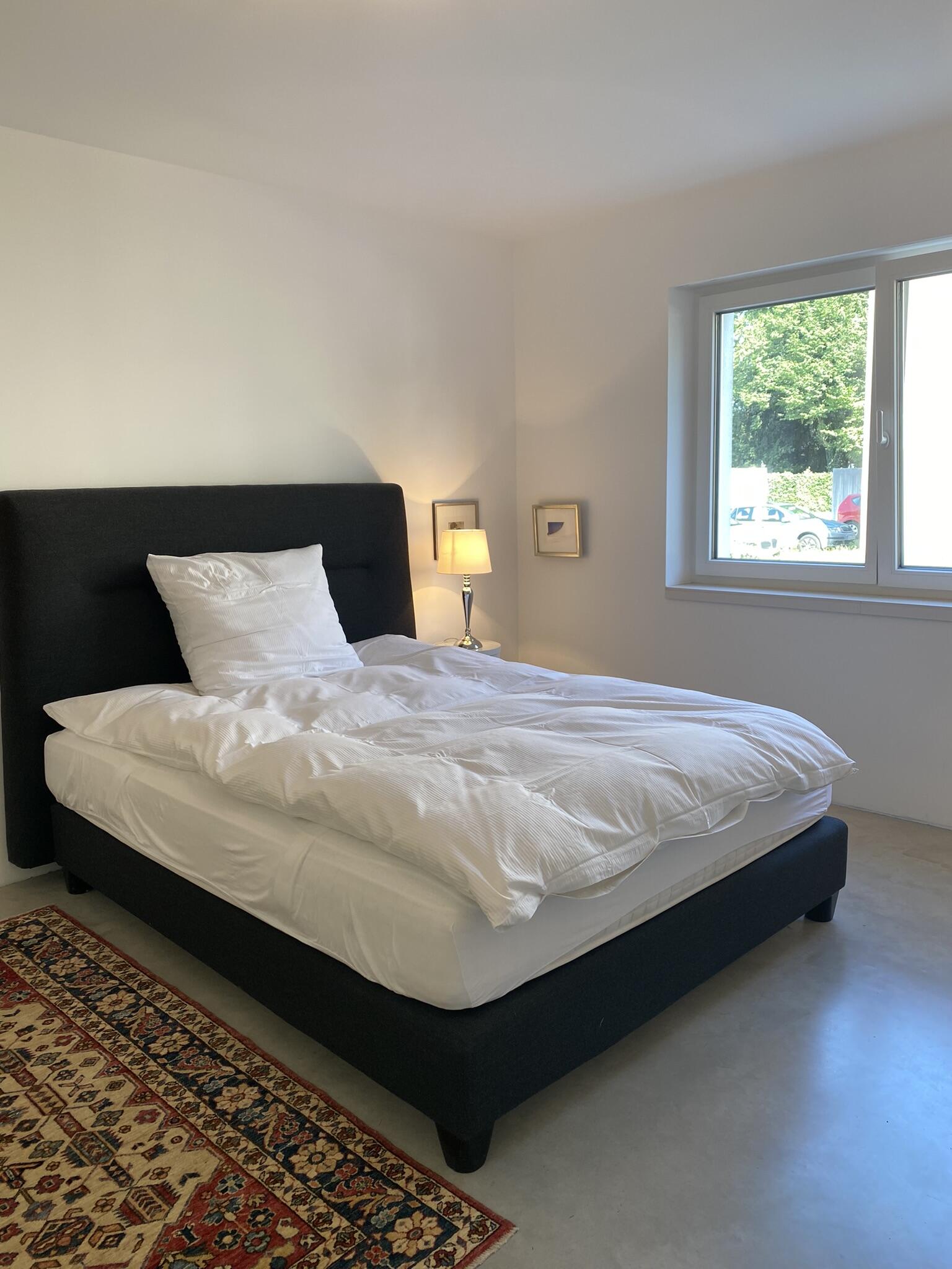 Die Wohnung befindet sich Hochparterre in einem Mehrparteienhaus in ruhiger und ländlicher Umgebung. Die Räume sind hell und zeitgemäß ausgestattet und möbliert. Stahlträger und Sichtestrich verleihen dem Wohnbereich einen loftartigen Charakter. Die offene Küche schließt direkt an den Wohn- und Essbereich an. Die Fenster der der Schlafzimmer, des Kinderzimmers und des Arbeitszimmers können mit Rollläden abgedunkelt werden. Nach vorheriger Absprache dürfen die Räume umgestaltet werden. Parkplätze bestehen direkt vor dem Haus und an der vorbeiführenden und wenig befahrenen Straße.