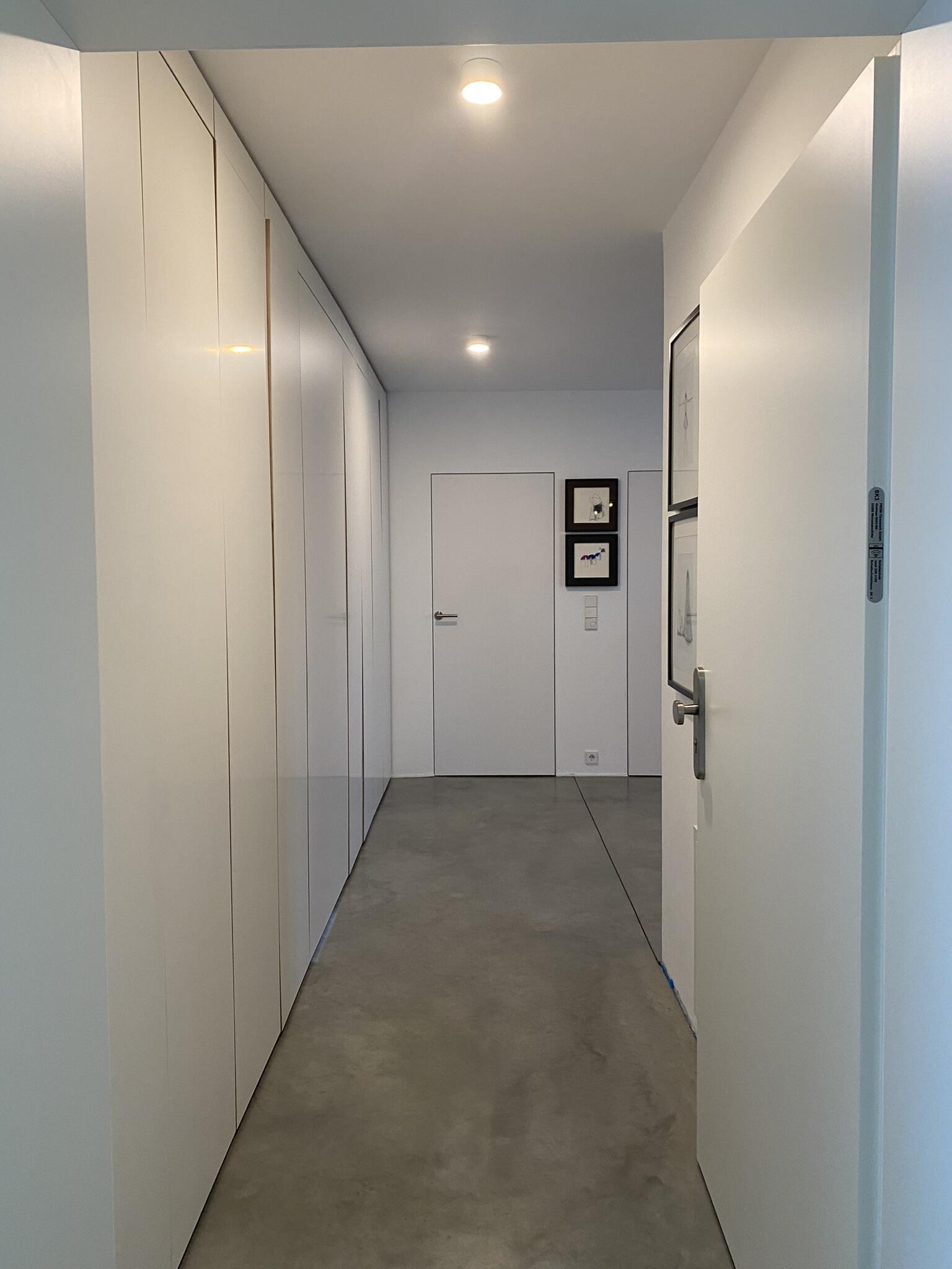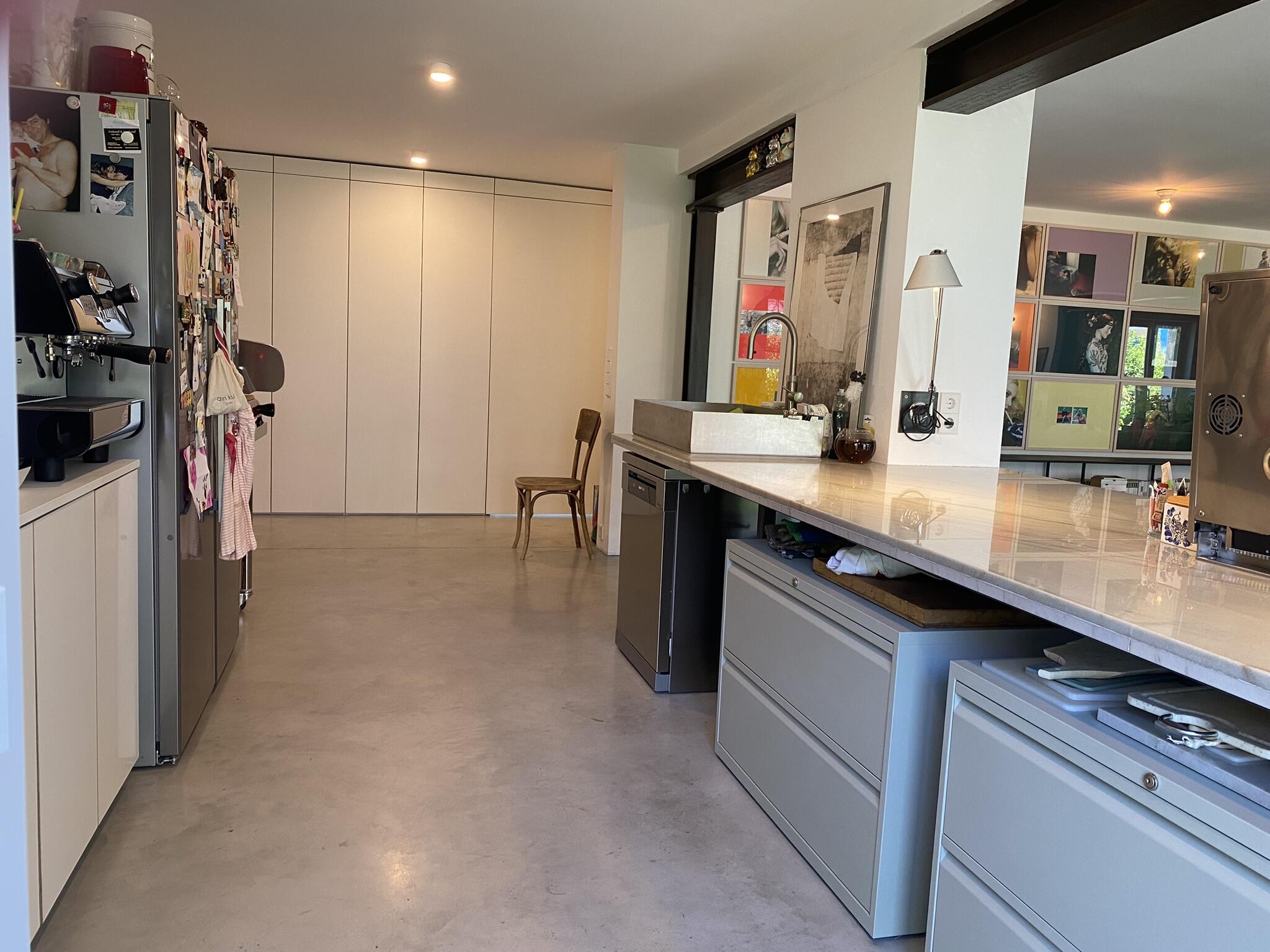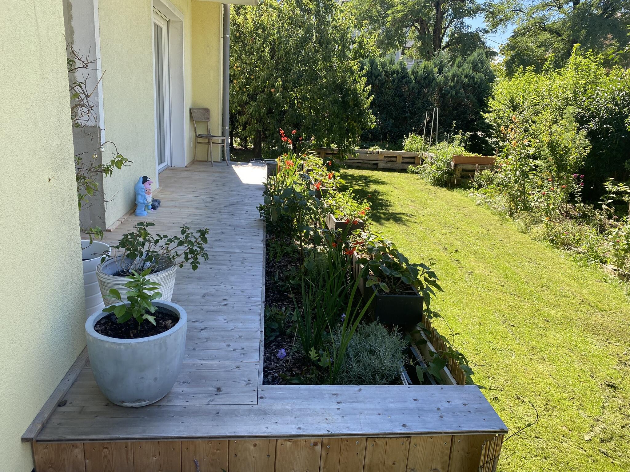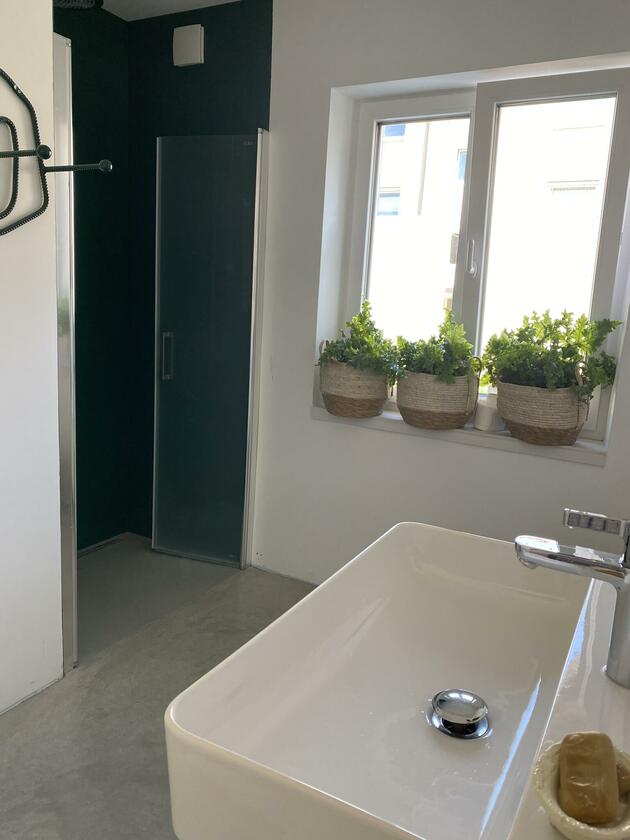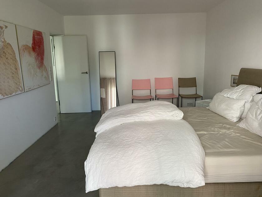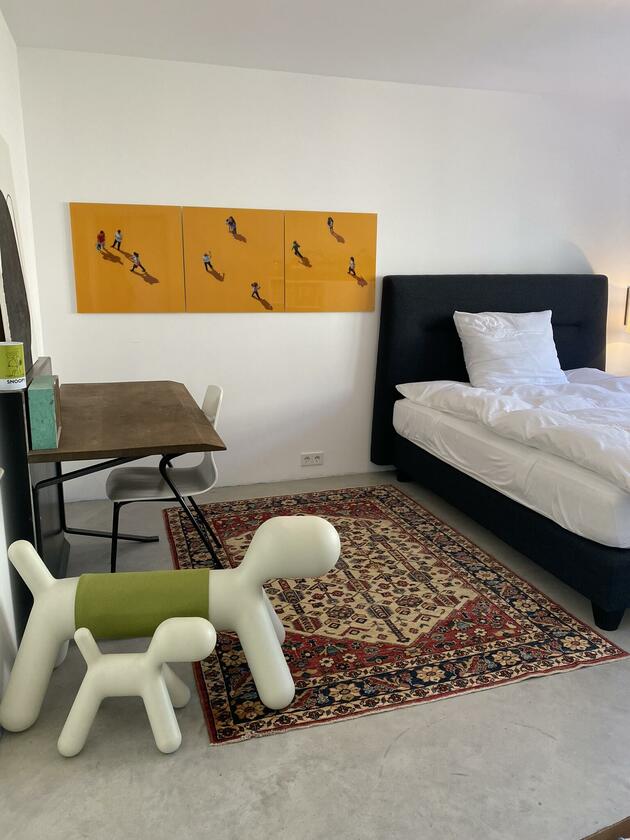 Die Wohnung befindet sich Hochparterre in einem Mehrparteienhaus in ruhiger und ländlicher Umgebung. Die Räume sind hell und zeitgemäß ausgestattet und möbliert. Stahlträger und Sichtestrich verleihen dem Wohnbereich einen loftartigen Charakter. Die offene Küche schließt direkt an den Wohn- und Essbereich an. Die Fenster der der Schlafzimmer, des Kinderzimmers und des Arbeitszimmers können mit Rollläden abgedunkelt werden. Nach vorheriger Absprache dürfen die Räume umgestaltet werden. Parkplätze bestehen direkt vor dem Haus und an der vorbeiführenden und wenig befahrenen Straße.