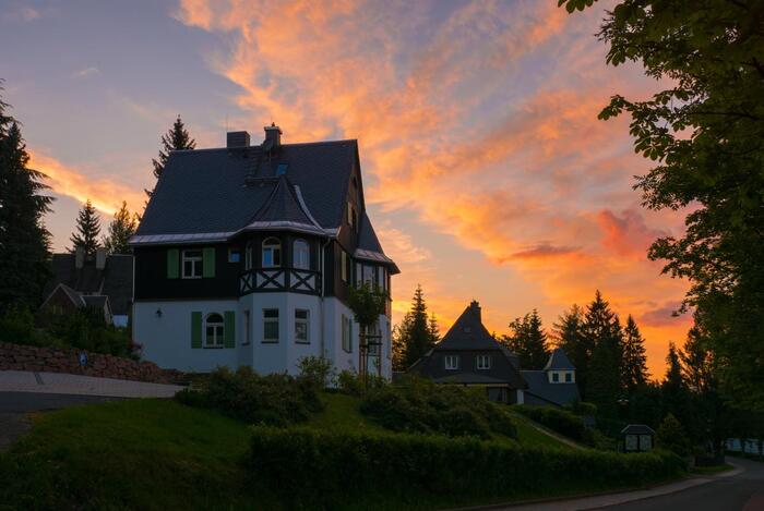 Die denkmalgeschützte ehemalige Fabrikantenvilla befindet sich in ländlicher Umgebung im Osterzgebirge. Die Ausstattung ist hochwertig und entspricht modernsten Anforderungen. Parkettböden und Kamine und die voll ausgestatteten Wohnküchen gehören zu den abgeschlossenen Wohnbereichen im Erdgeschoß, Obergeschoß und im Dachgeschoß. Der großzügige Wohnbereich mit dem gemütlichen Kamin grenzt an den offen gestalteten, modernen Koch- und Essbereich. Das bezaubernde Appartement unter dem Dach verfügt über eine offene Galerie, zwei getrennte Schlafzimmer und eine gemütliche, moderne Wohnküche. Ein Kamin und eine großzügige Wellnessdusche komplettieren die Ausstattung. Im Untergeschoss des Hauses befinden sich eine Sauna mit Ruheraum und ein kleiner Fitnessbereich.