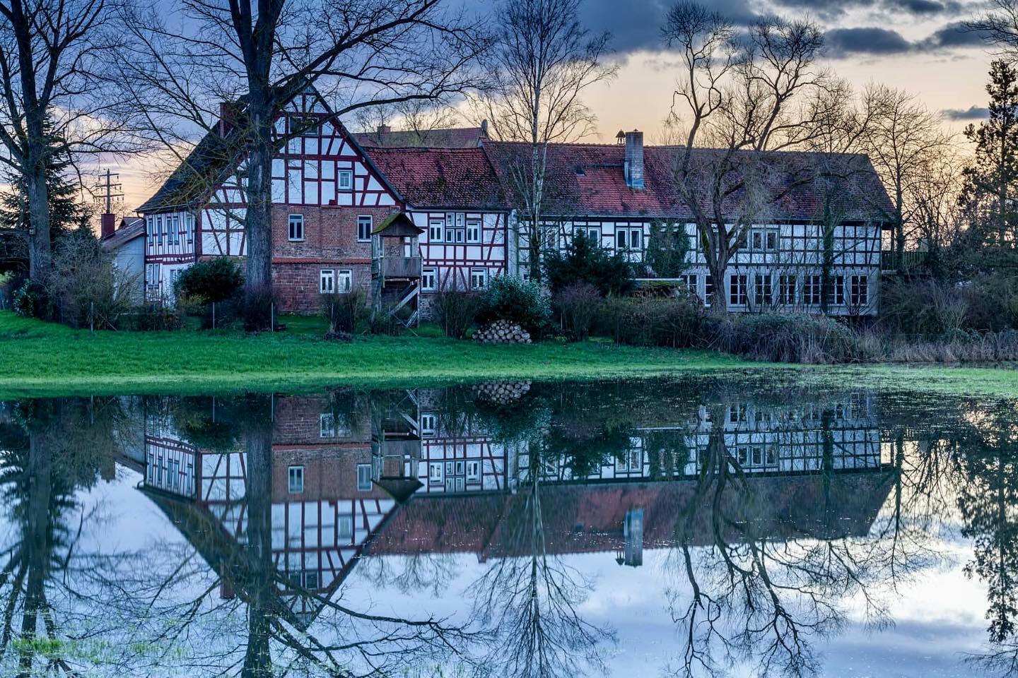 Unser denkmalgeschützter Gutshof befindet sich mitten im Grünen und bietet zahlreiche Räumlichkeiten und Bereiche für verschiedenste Motive. Auf dem Hof befinden sich beispielsweise mehrere Wohnungen, Büroräume und ein Rittersaal. Im Innenhof gibt es einen Brunnen. Neben den verschiedenen Gartenflächen, gibt es auch ein altes Mühlrad mit einer dazugehörigen kleinen Brücke auf dem Grundstück. Diverse Räume für Teamaufenthalt, Maske, Garderobe und Lagerungsmöglichkeiten für die Produktionsausrüstung sind selbstverständlich vorhanden. Parkplätze gibt es vor und auf dem Grundstück. Die A 45 ist in kurzer Zeit erreichbar.