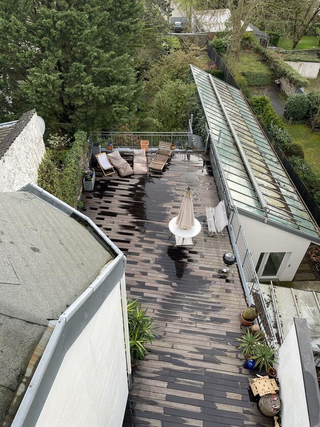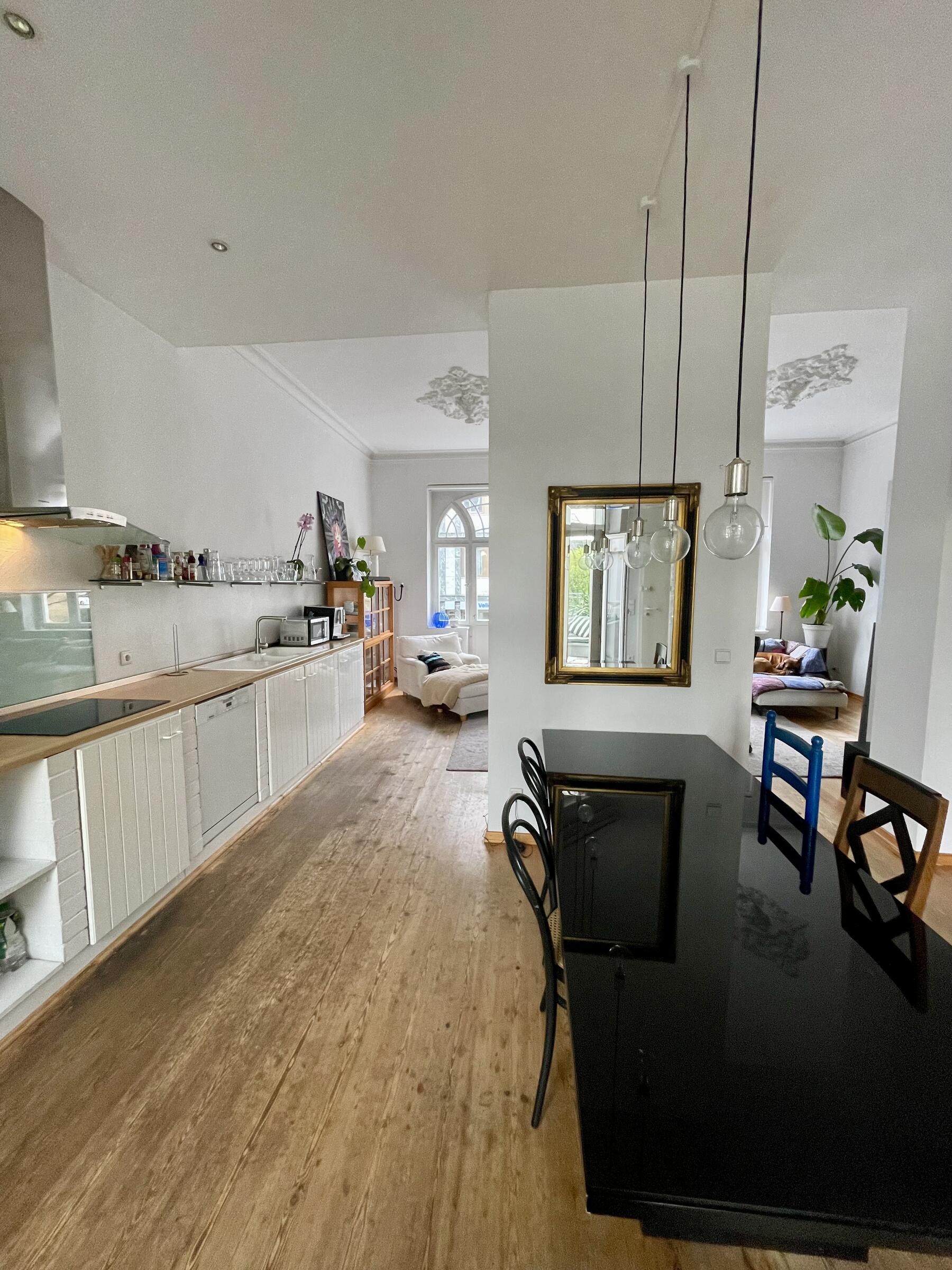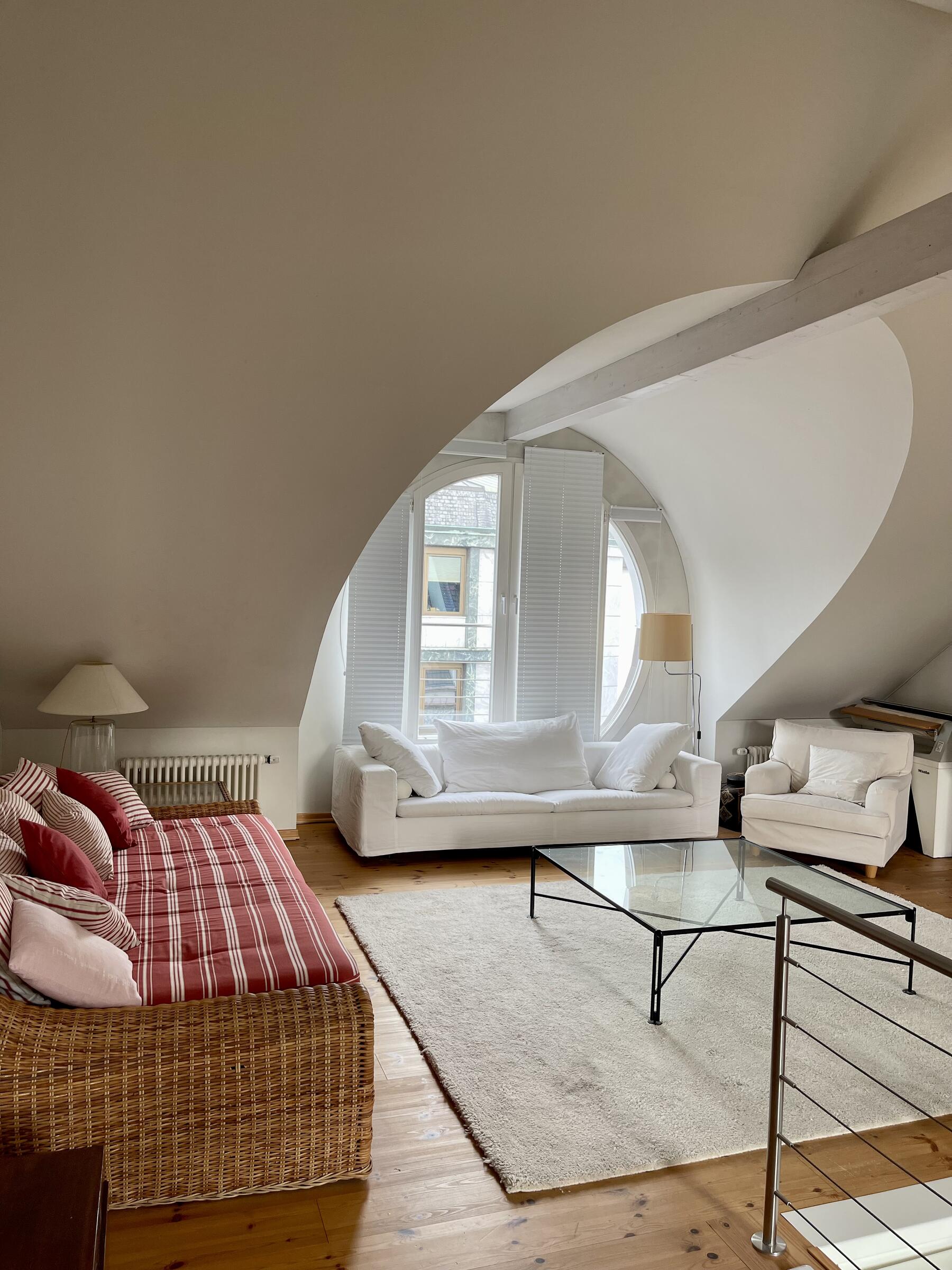 Das Stadthaus befindet sich an einer ruhigen Hauptstraße. Die offen gestalteten Wohnräume des dreistöckigen Altbauhauses sind hell und lichtdurchflutet. Die großen Fenster können mit Hilfe von Jalousien abgedunkelt werden. An den Decken der Räume gibt es sorgfältig restaurierte Stuckverzierungen. Nach Absprache ist es möglich, die Räume je nach Produktionsbedarf umzugestalten und Einrichtungsgegenstände und Mobiliar um- oder auszuräumen. Die Dachterrasse wird ab ca. 12 Uhr von der Sonne beschienen. Auf der Straße vor dem Haus stehen kostenpflichtige Parkplätze zur Verfügung.