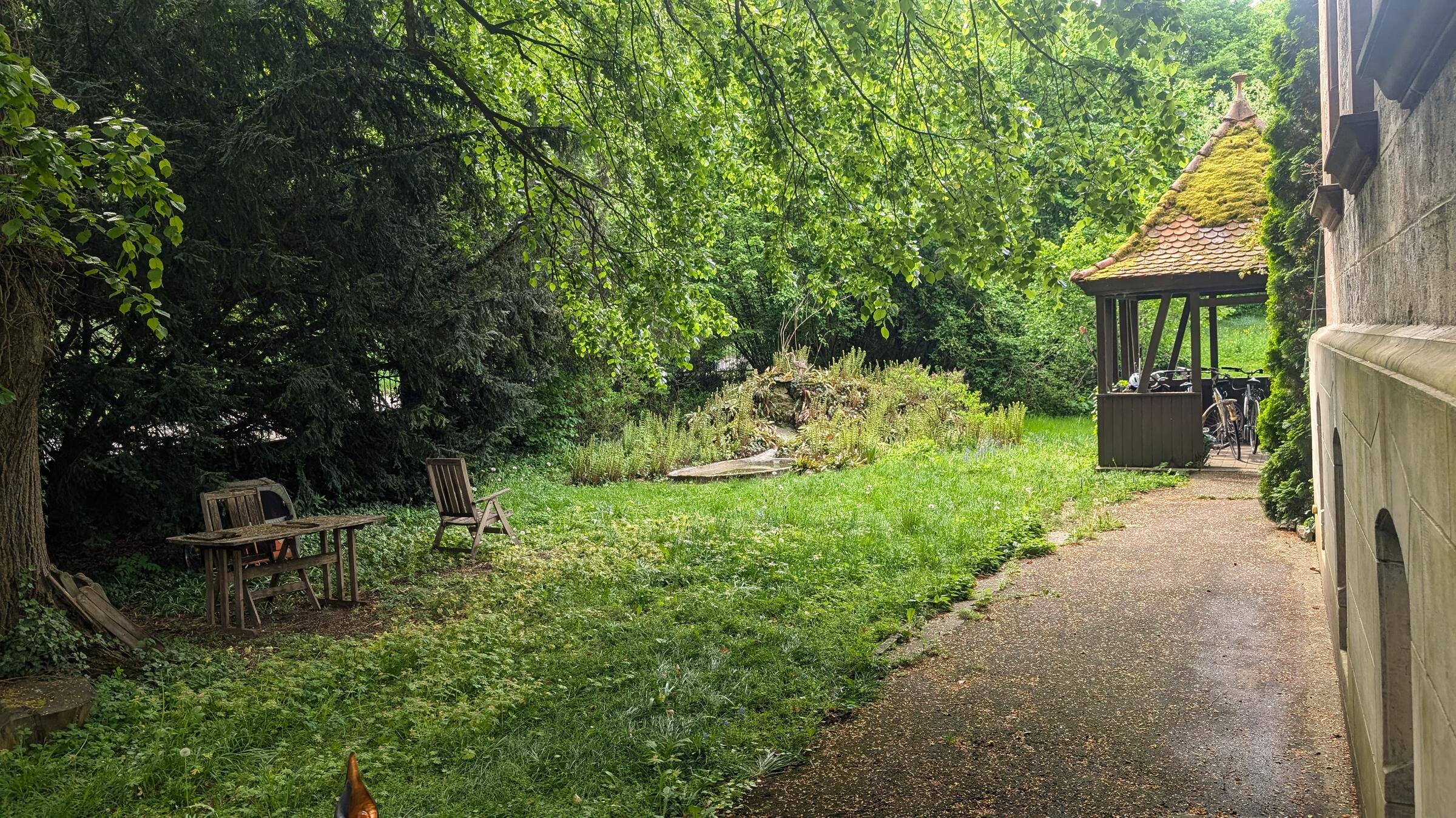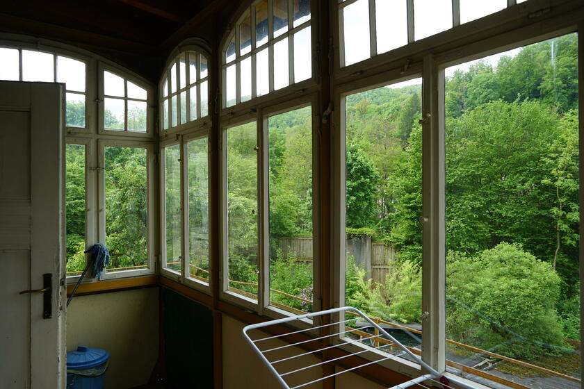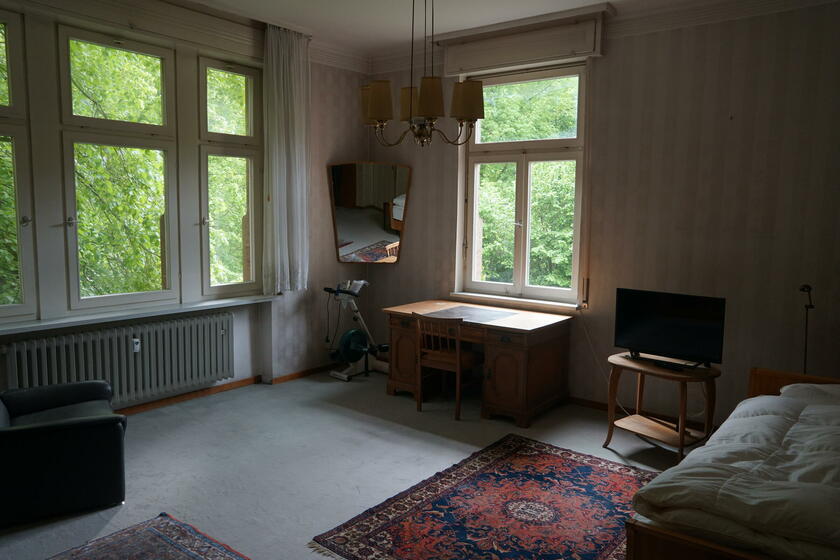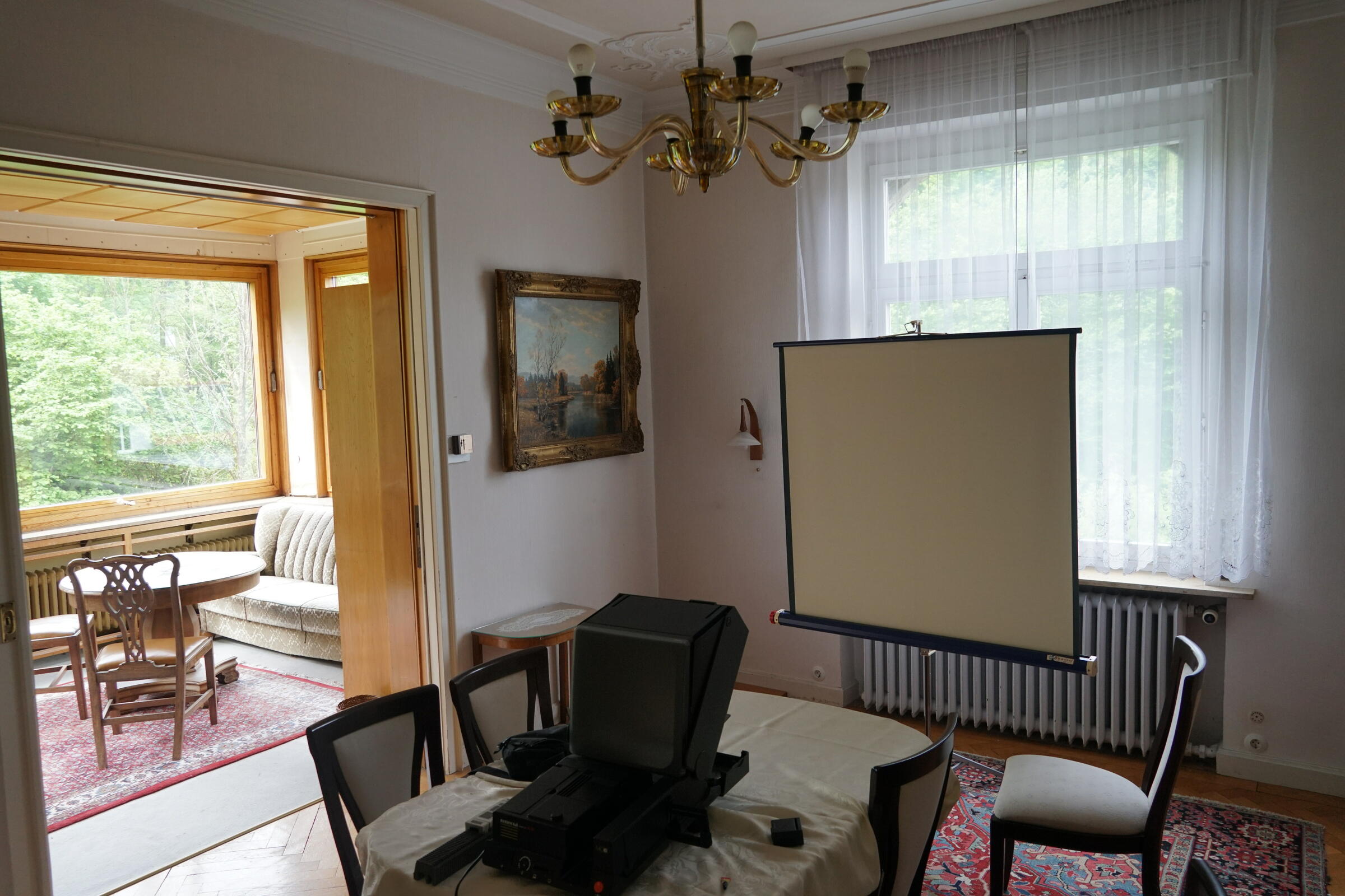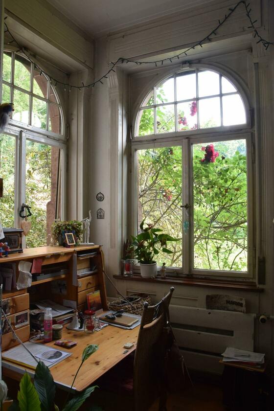 Die Wohnung befindet sich einer mehr als 100 Jahre alten Jugendstilvilla, in der mittleren Etage. Die Räume bieten hohe Decken und sind möbliert. Auf den Böden der Wohnräume ist Parkett verlegt. Das Badezimmer ist gefliest. Die meisten Fenster können mit Hilfe von Vorhängen verdunkelt werden. Nach Absprache dürfen die Räume zu Produktionszwecken umgestaltet werden. Im Außenbereich kann ebenfalls ein großer Garten genutzt werden. Das Grundstück befindet sich an zwei Straßen, wodurch Verkehrslärm im Hintergrund zu hören ist. Vor dem Haus und in der näheren Umgebung stehen Parkplätze zur Verfügung.