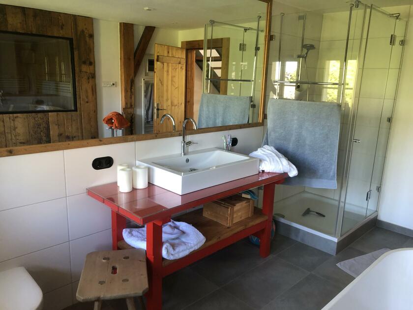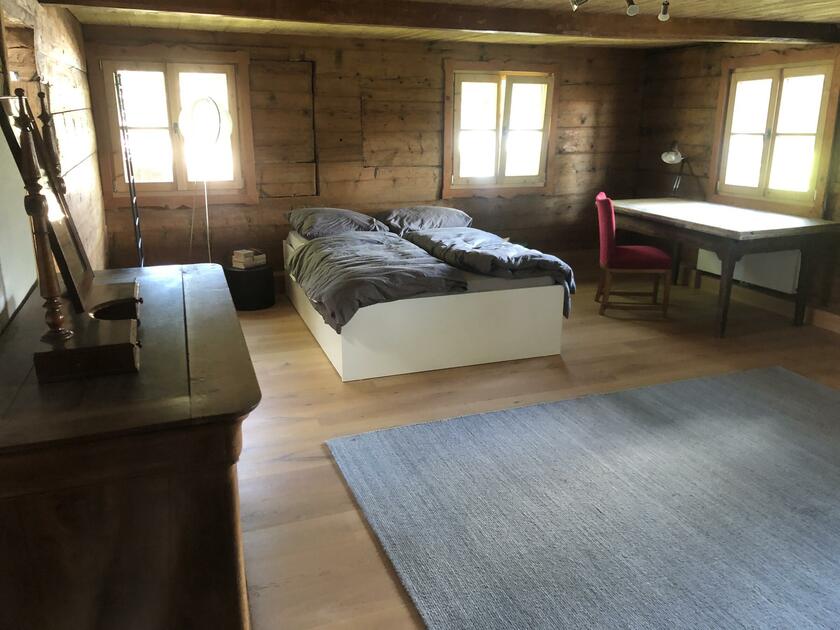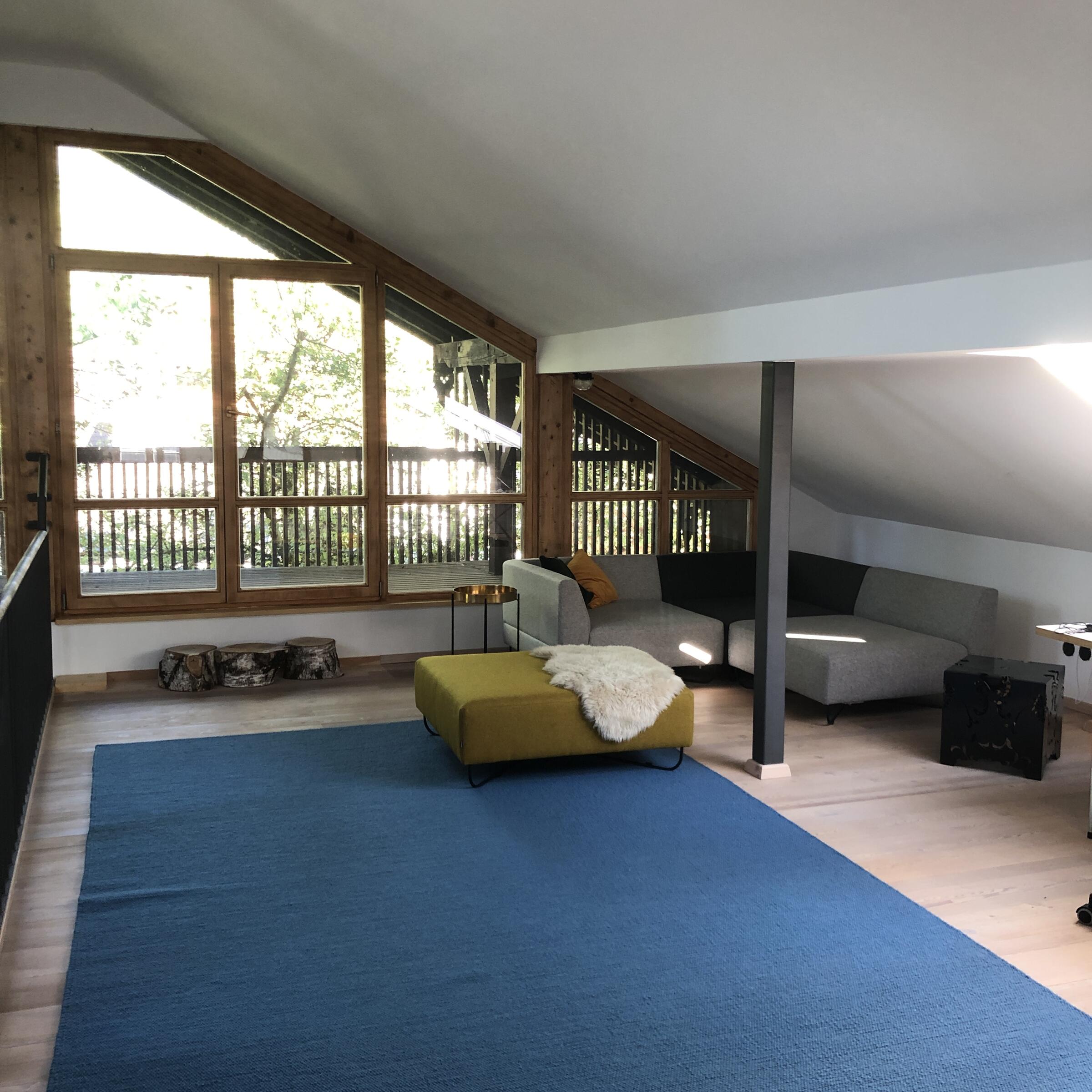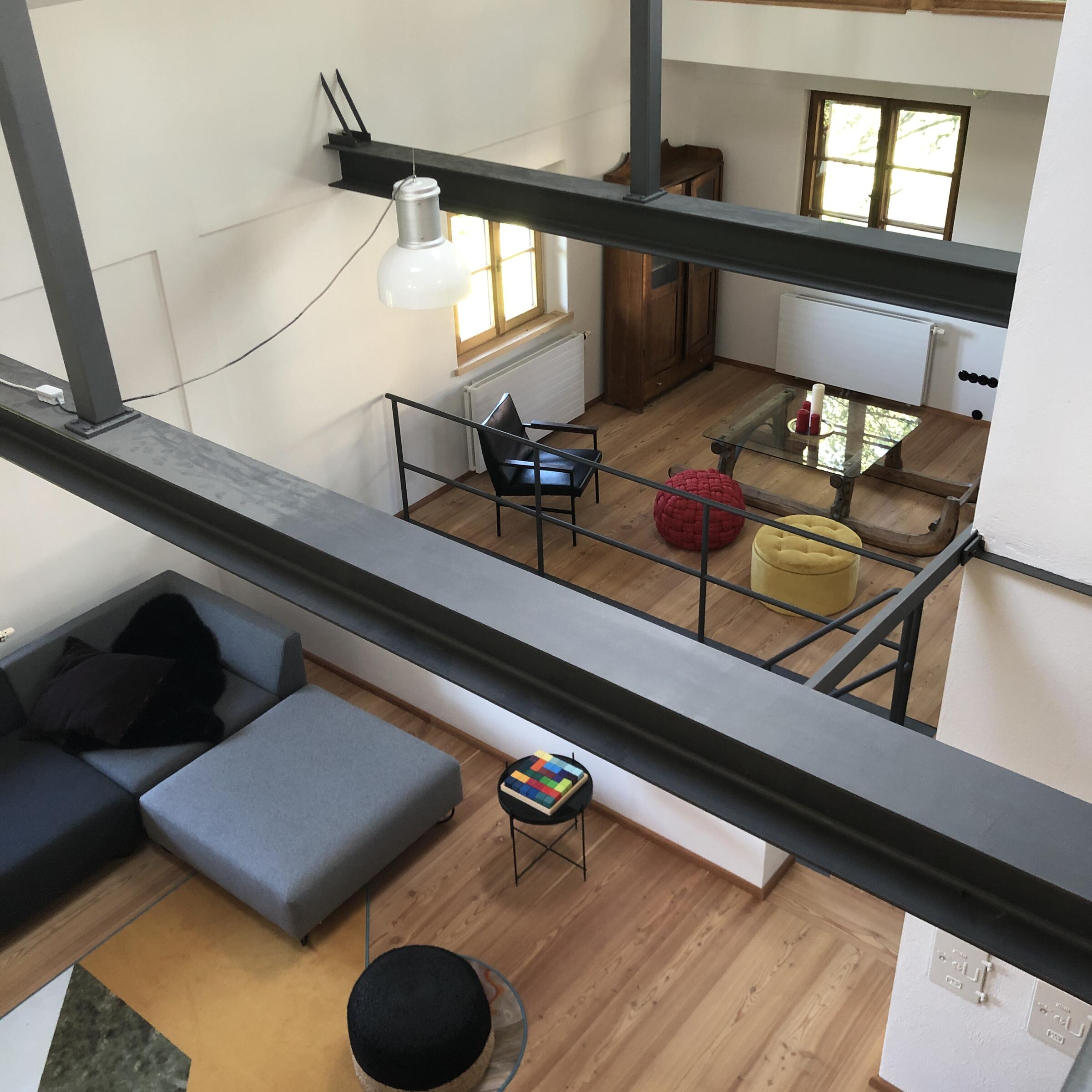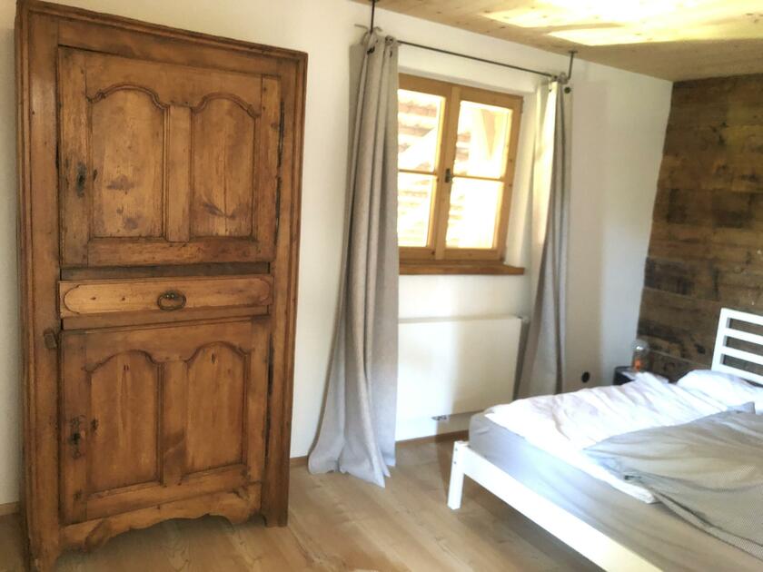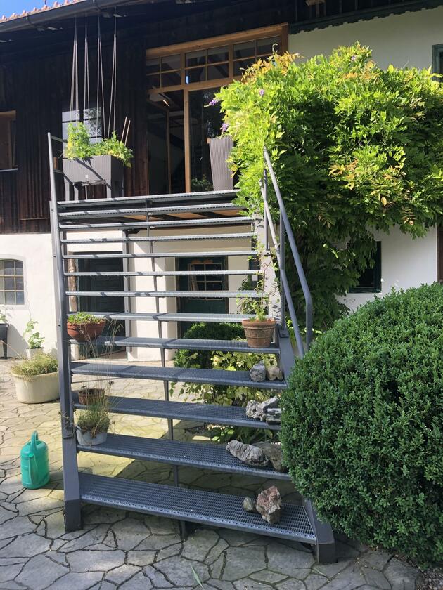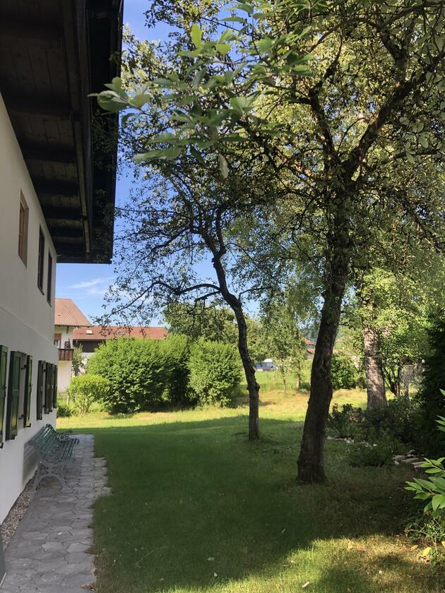 Das 200 Jahre alte Bauernhaus befindet sich in einem denkmalgeschützen Ensemble in der schönsten Straße von Benediktbeuern. Das Haus wurde in den vergangenen 7 Jahren kernsaniert und liebevoll restauriert. Wir haben darauf geachtet, heimische und ursprüngliche Materialen zu verwenden und sie mit modernen Design-Elemente verbunden. Das Haus bietet im Inneren sehr viel Licht und Luft, da 1. und 2. OG jeweils loftartig zusammengefasst sind. Das Haus steht in einem gepflegten Bauerngarten mit diversen Obstbäumen. Auf der Südseite befindet sich einen große, mit Buchsbaum eingefasste Terrasse. Schmuckstücke sind die markante Außentreppe, die ausgebaute Tenne mit Einschnitzungen im Holz aus dem 19. Jahrhundert und das modern gestaltete, fast 50 m² große Wohnzimmer im 1. OG.