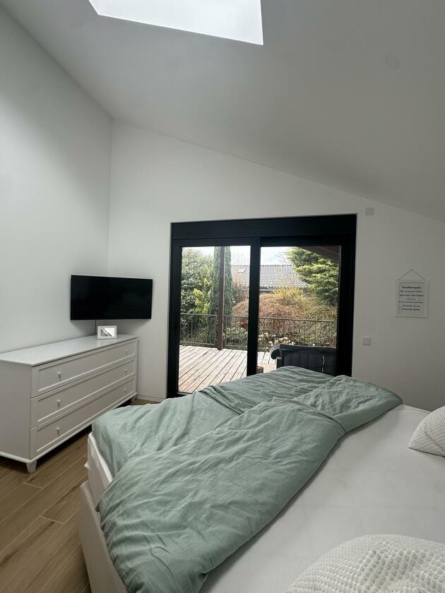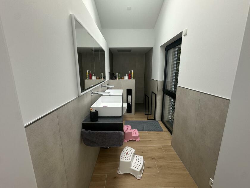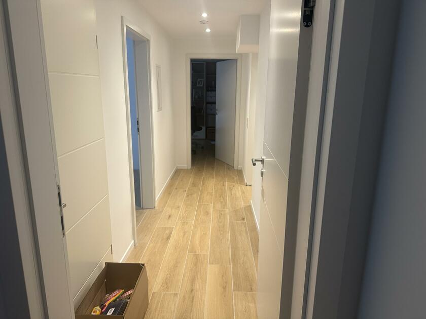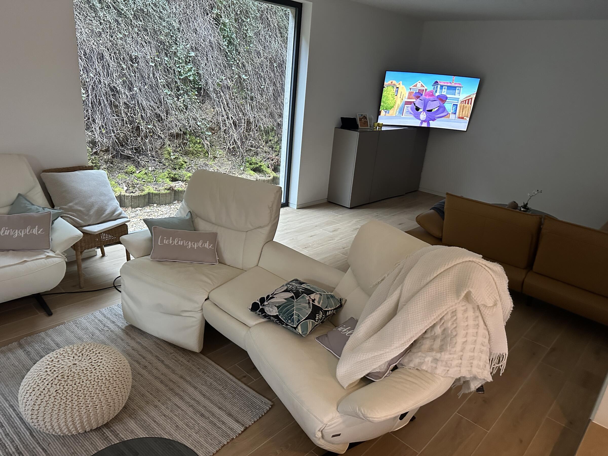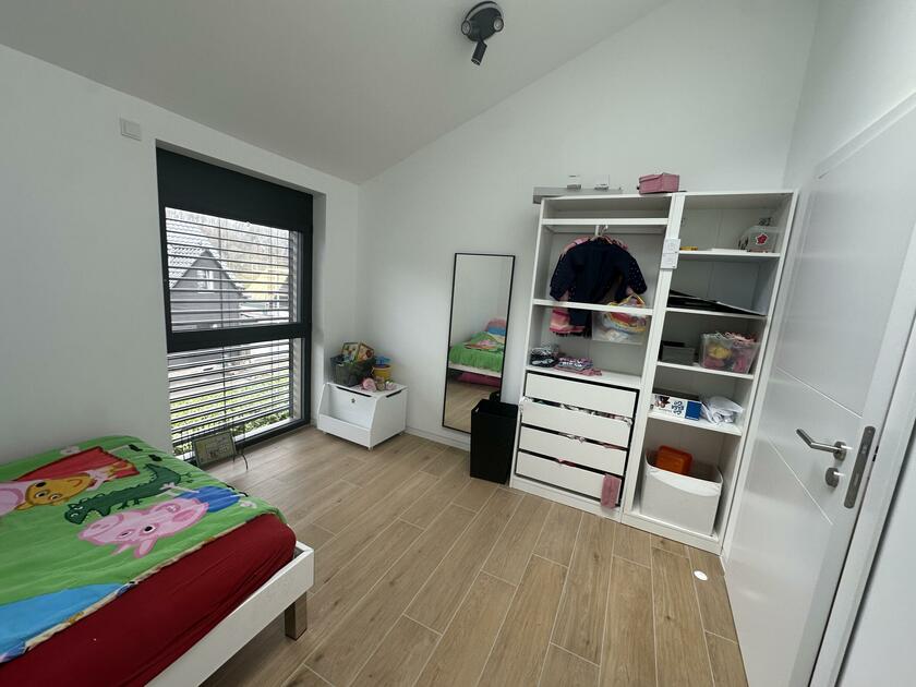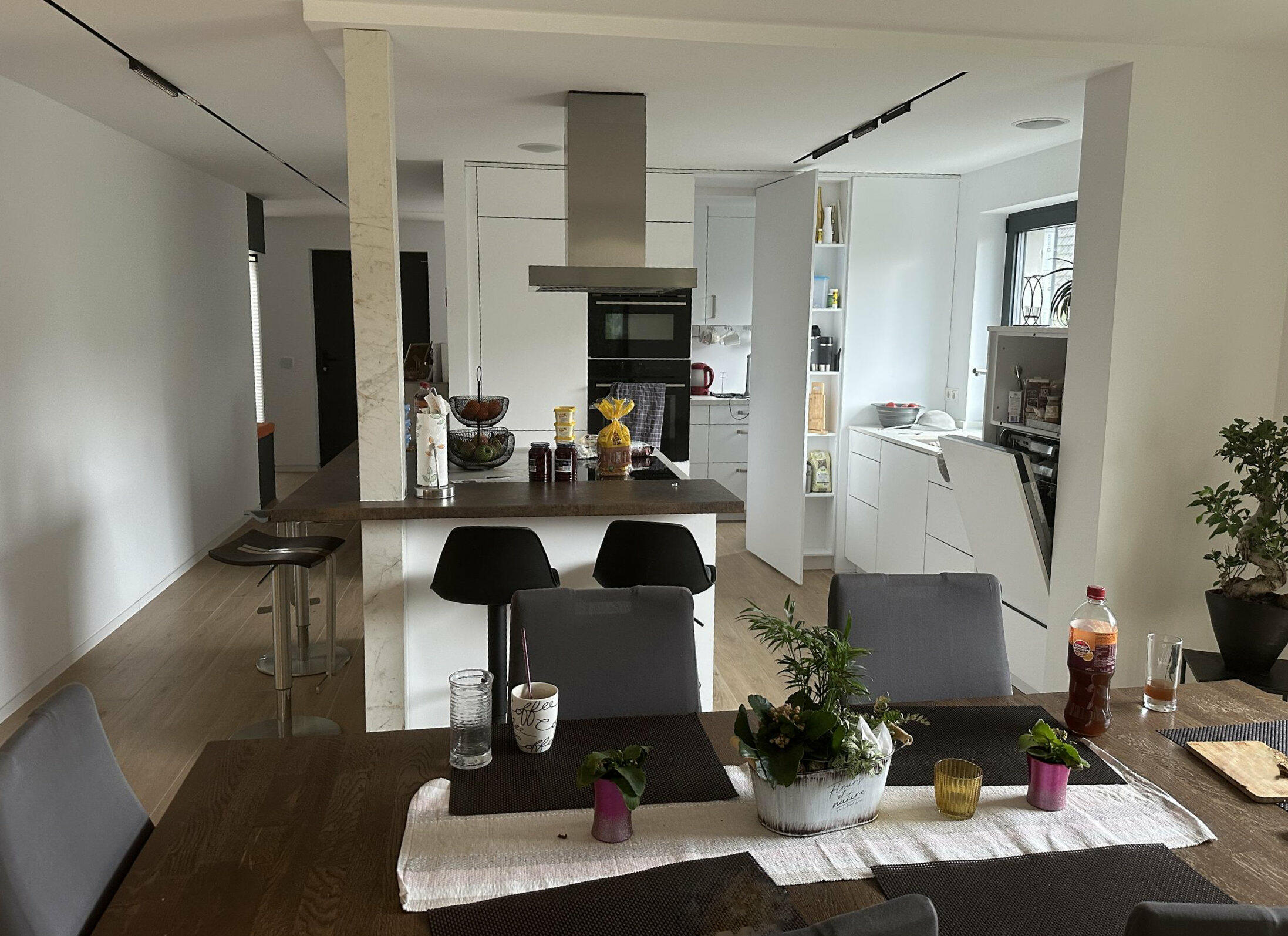 Unser Haus befindet sich in einer ruhigen Wohngegend. Der große Wohn- und Essbereich im Erdgeschoss ist offen gestaltet. Die Küche schließt direkt an den Essbereich an und verfügt über eine Kochinsel. Die Räume sind modern und funktional eingerichtet. Die teilweise bodentiefen Fenster ermöglichen Tageslicht in den Wohnräumen. Die Fenster in der Küche, im Wohn- und Essbereich und im Obergeschoss können mit Raffstores verdunkelt werden. Die Räume können nach Absprache umgestaltet werden. Im Außenbereich kann unsere Loggia genutzt werden. Vor dem Haus gibt es 2 Pkw-Parkplätze. Weitere Stellflächen befinden sich auf der verkehrsberuhigten, vorbeiführenden Straße.