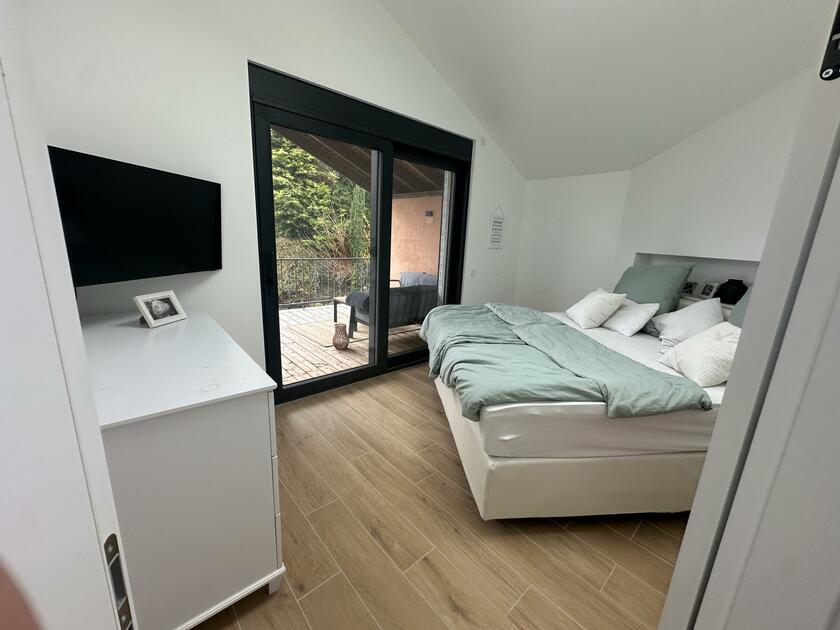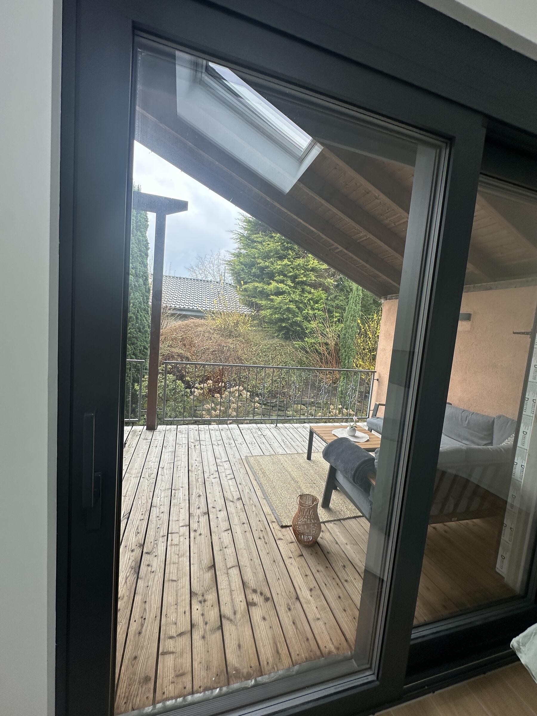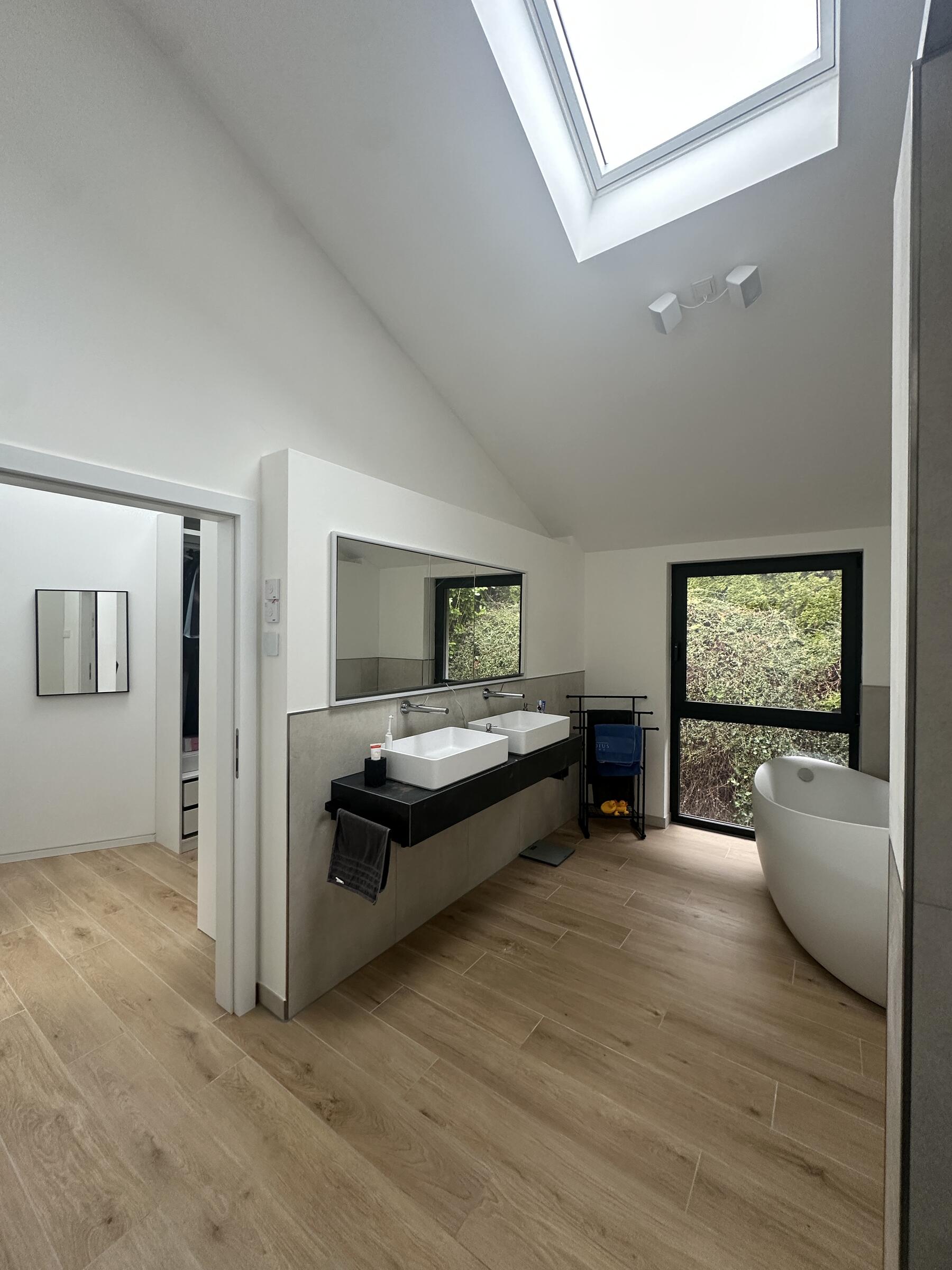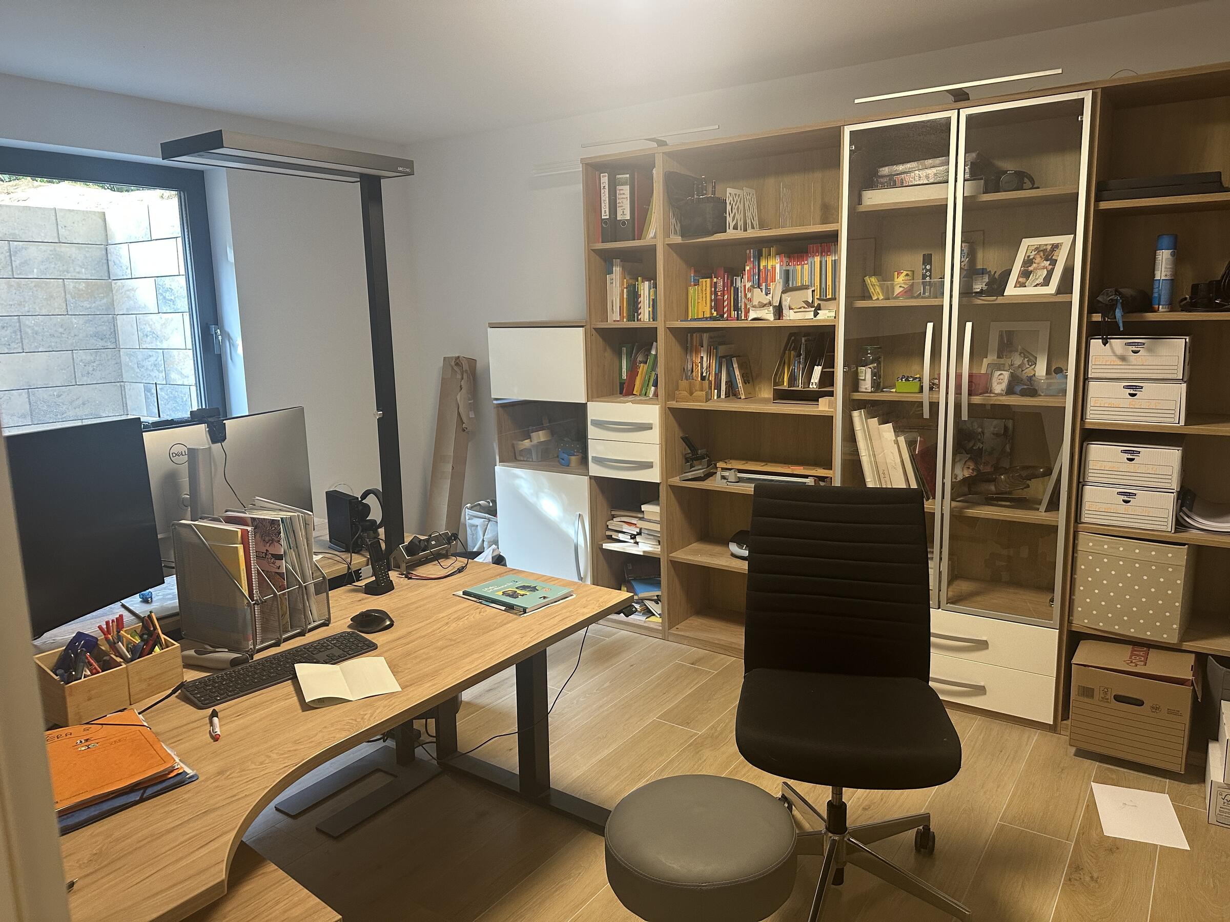 Unser Haus befindet sich in einer ruhigen Wohngegend. Der große Wohn- und Essbereich im Erdgeschoss ist offen gestaltet. Die Küche schließt direkt an den Essbereich an und verfügt über eine Kochinsel. Die Räume sind modern und funktional eingerichtet. Die teilweise bodentiefen Fenster ermöglichen Tageslicht in den Wohnräumen. Die Fenster in der Küche, im Wohn- und Essbereich und im Obergeschoss können mit Raffstores verdunkelt werden. Die Räume können nach Absprache umgestaltet werden. Im Außenbereich kann unsere Loggia genutzt werden. Vor dem Haus gibt es 2 Pkw-Parkplätze. Weitere Stellflächen befinden sich auf der verkehrsberuhigten, vorbeiführenden Straße.