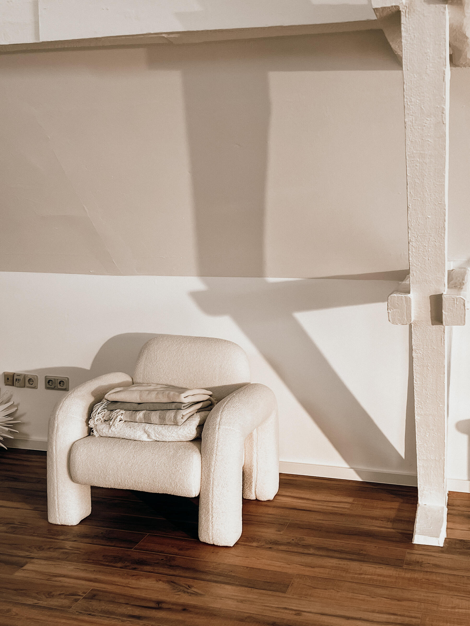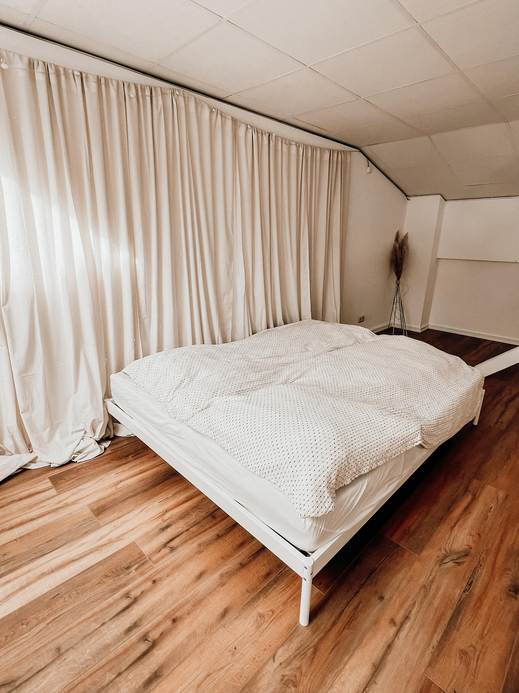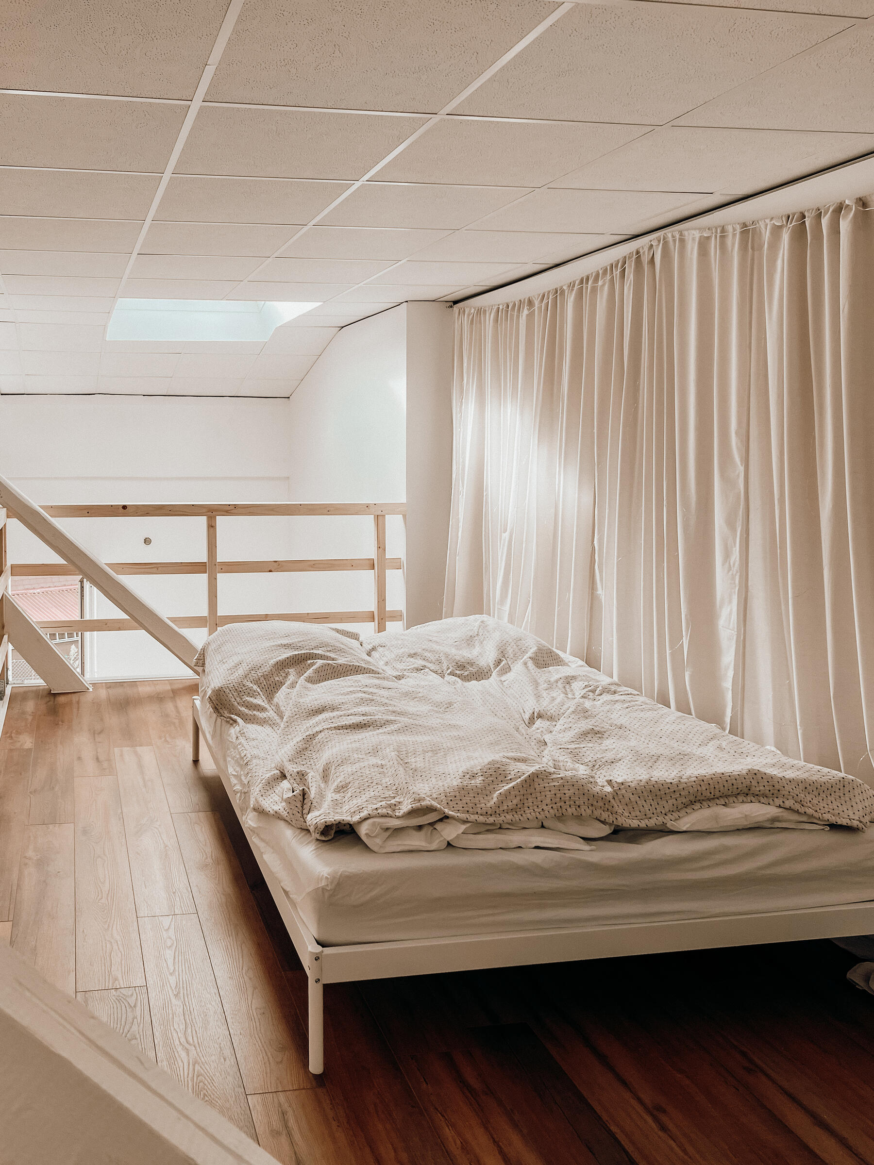Das Tageslichtstudio befindet sich im ruhigen Dachgeschoss eines Wohnhauses und bietet eine große Studiofläche und eine Empore. Unser Studio ist minimalistisch mit einem Sofa, Sesseln und einem Bett, das sich auf der Empore befindet, möbliert. Die Küche ist ebenfalls sehr einfach und funktional eingerichtet. Der Boden des Studios ist mit braunem Vinyl-Boden ausgelegt. Das Fotohintergrundsystem und die großen Vorhänge können bei Bedarf abgenommen werden. Die Fenster sind nicht verdunkelbar. Parkplätze gibt es direkt vor dem Haus und auf dem Hinterhof, der nur mit Fahrzeugen bis max. 3,5 t befahren werden kann.