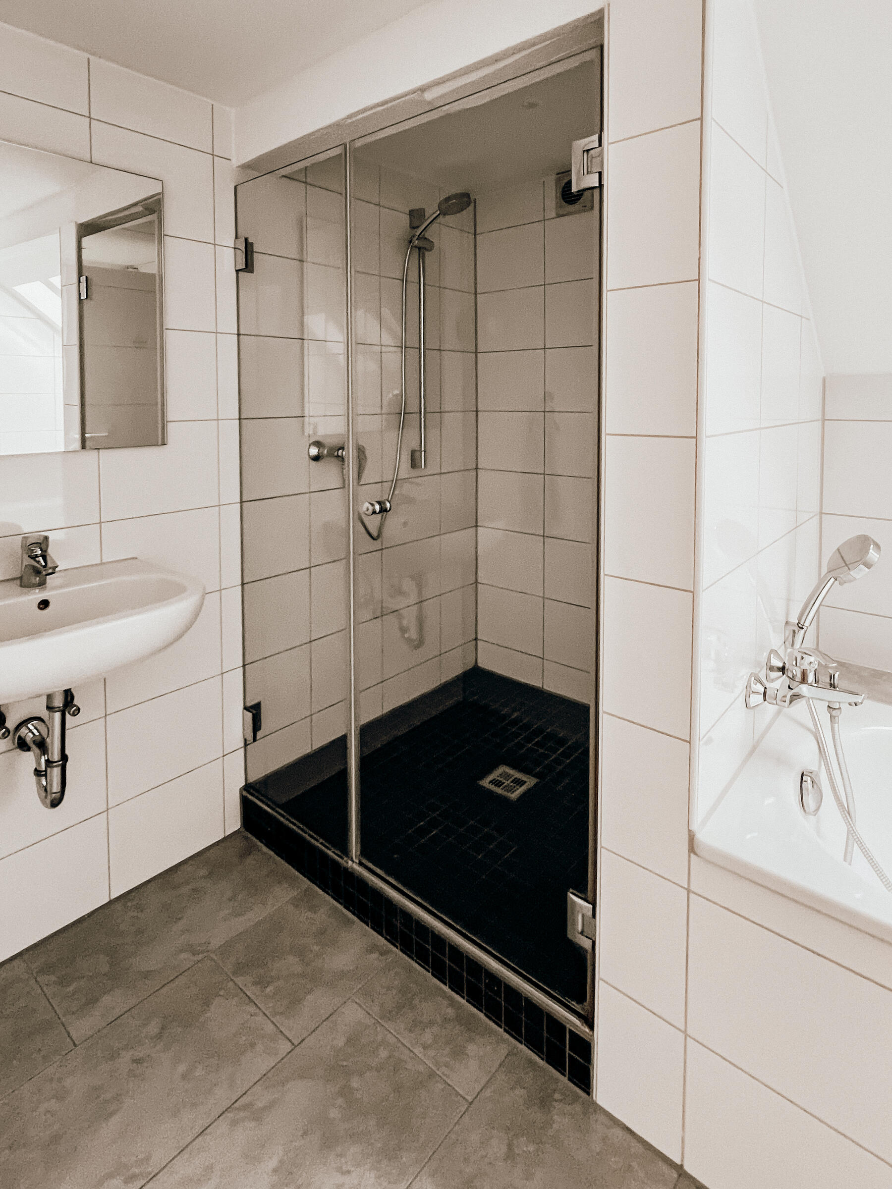 - Badezimmer (1. OG)Fläche: 6 m²Länge: 3 mBreite: 2 mHöhe: 2,5 mmöbliert: ja