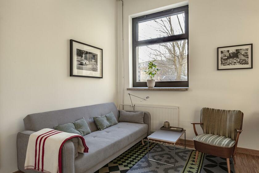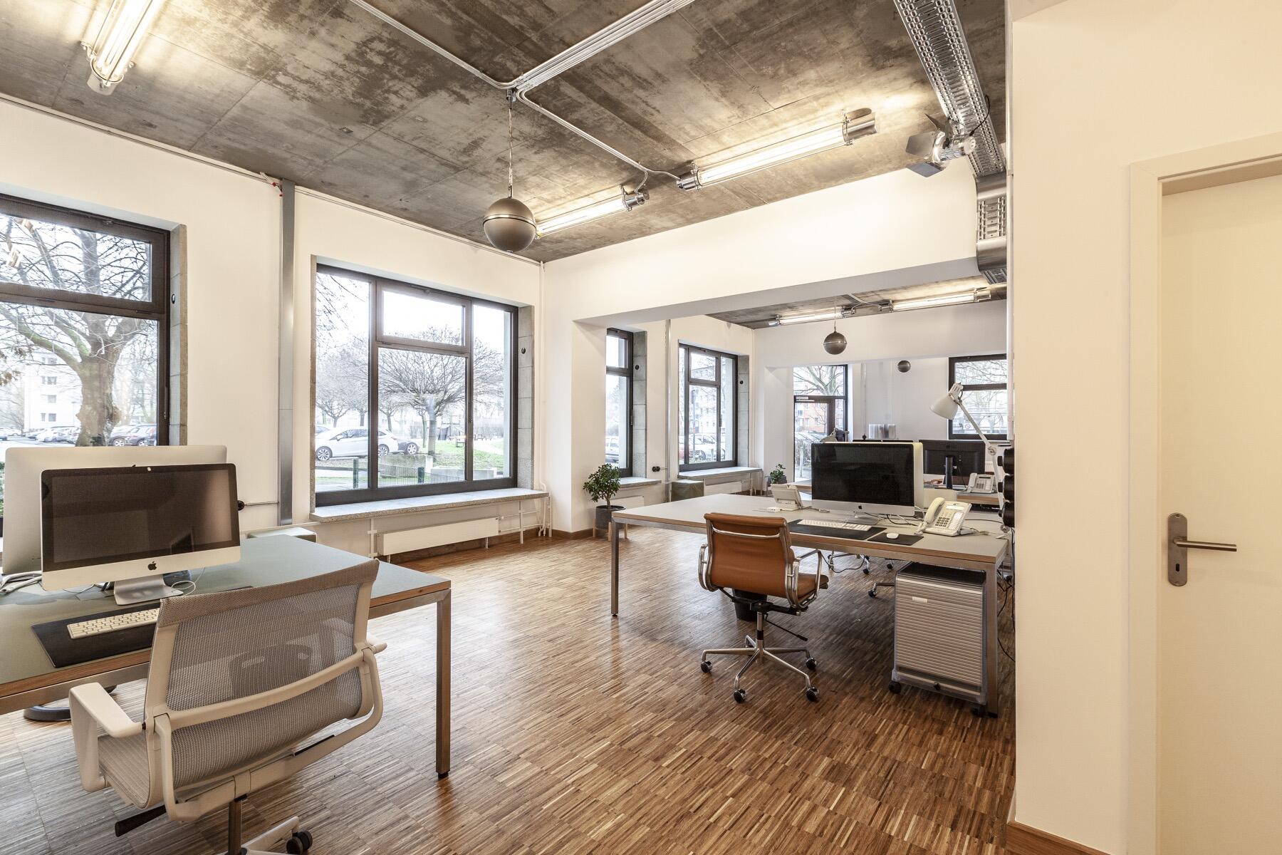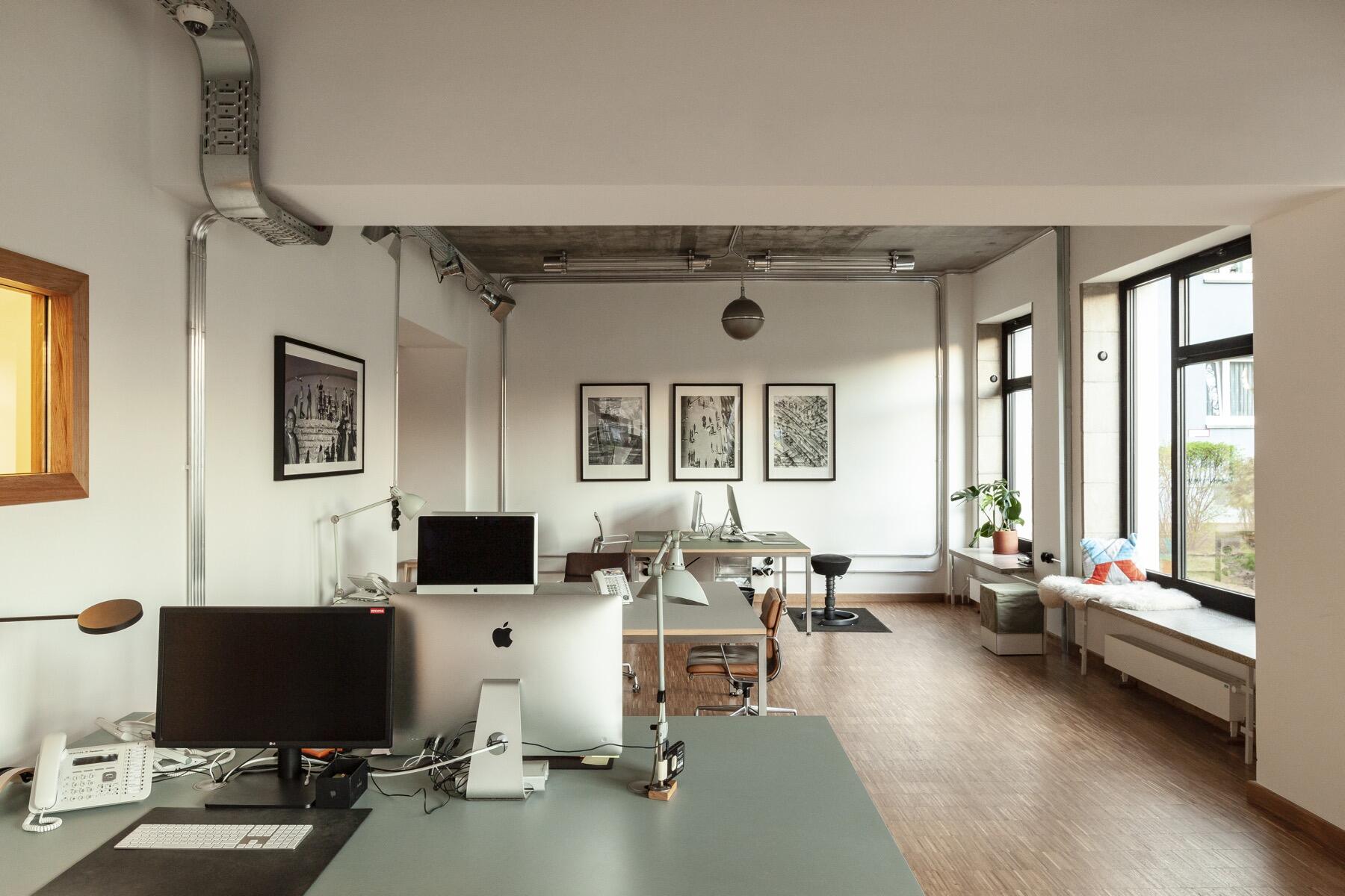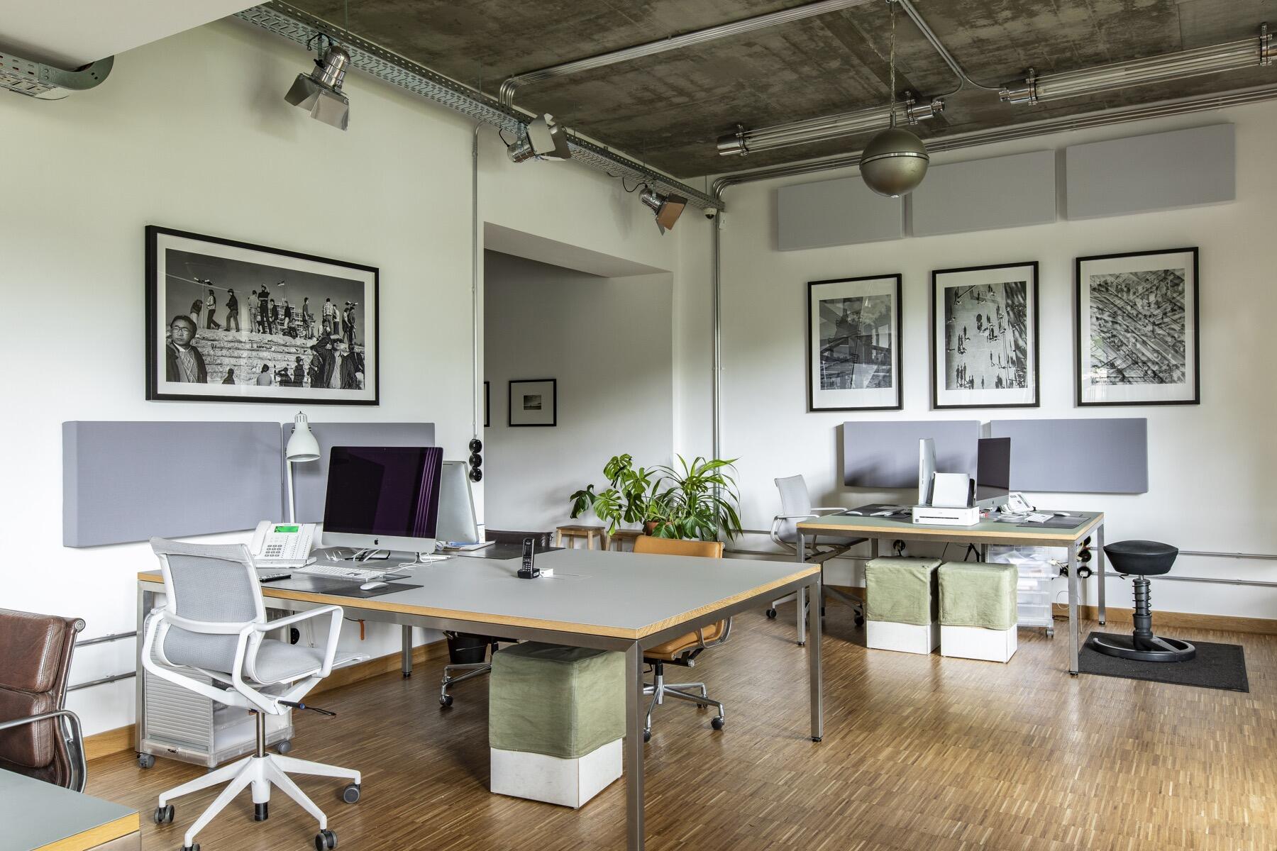 Unser neues 150 m² großes Büro befindet sich in Berlin-Mitte und bietet einen großen und zwei kleine Räume. Die großen Fensterfronten lassen nicht nur viel Tageslicht in die Räume, sondern bieten auch ausreichend Platz für Beleuchtung und Aufnahmetechnik. Die Inneneinrichtung besticht durch handgefertigte, großzügige Arbeitstische und Möbel im Bauhaus- und Industriestil. Die durchdachte Infrastruktur sorgt für eine nahtlose Arbeitsumgebung. Schnelles DSL mit 400 Mbit/s ist vorhanden. Zahlreiche Schukoanschlüsse stehen für Ihre elektronischen Geräte bereit. Darstellbar sind diverse Co-Working- und andere Arbeitssituationen, Verkaufsraum und Gastronomie.
