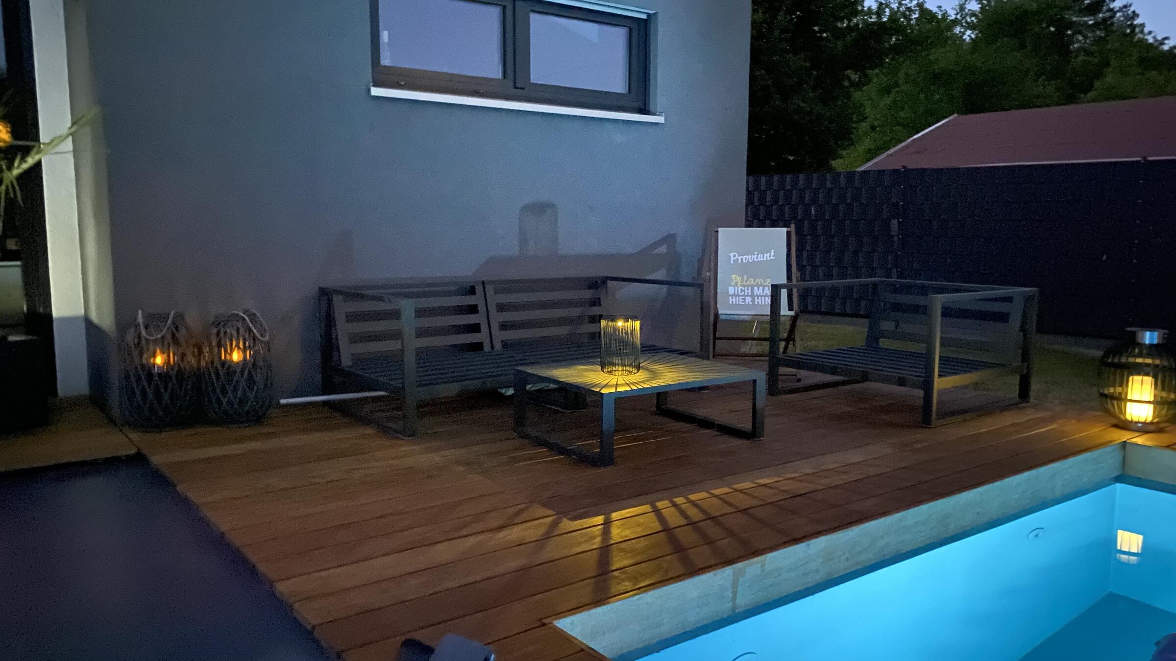 Wir vermieten unser Einfamilienhaus im schönen Berlin-Grünau für Filmproduktionen und Fotoshootings mit moderner Architektur, gehobener grau-weißer Innenausstattung inklusive Mobiliar. Im EG ist in allen Räumen durchgängig Sichtestrich als Bodenbelag gelegt. Der sonnendurchflutete (Südseite) Wohn-Ess- und Kochbereich ist variabel nutzbar. Eine moderne große Einbauküche sowie ein Kamin sind natürlich ebenfalls vorhanden. Der Eingangsbereich hat eine Deckenhöhe von ca. 7 m und wird durch eine mehrflammige Lampe gut in Szene gesetzt. Im Obergeschoss dominiert das große Billardzimmer mit Wandlampen, Billardtisch und Holzfußboden. Vom Schlafzimmer gelangt man über den begehbaren Kleiderschrank ins fugenlose Master-Bad.