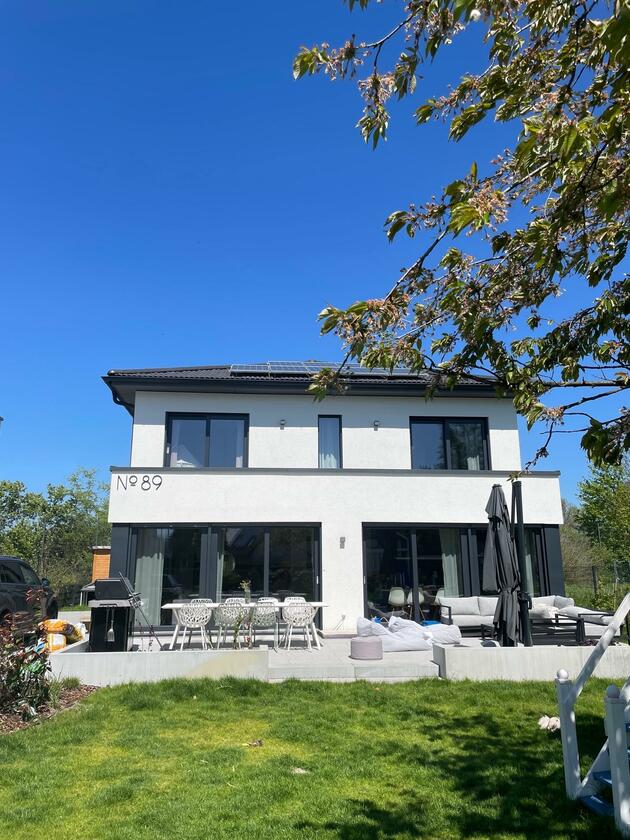 Unser sehr stilvolles, charakterstarkes und modernes Einfamilienhaus befindet sich im Osten Berlins und zeichnet sich durch einen sehr gehobenen und einzigartigen Bau- und Einrichtungsstil aus. Alle Räume sind sehr aufwendig und individuell gestaltet, sodass sich sehr viele interessante und vielseitige Motive ergeben. Die Räume sind großzügig geschnitten, sodass es überall ausreichend Platz für Team, Maske und Garderobe gibt. Auf der langen, hauseigenen Auffahrt können bis zu 8 Pkw geparkt werden. Weitere öffentliche Parkplätze befinden sich direkt vor dem Haus. Größere Fahrzeuge können dort sehr gut geparkt werden. Im Außenbereich bietet unser Haus eine große Terrasse und einen Garten. Zudem findet sich im Garten ein großes Spielhaus mit Spielplatz, ein Saunafass, Trampolin, Tischtennisplatte und ein Holzschuppen. Ca. 200 m vom Haus entfernt befindet sich ein kleiner See mit zwei Badestellen und traumhafter Kulisse.