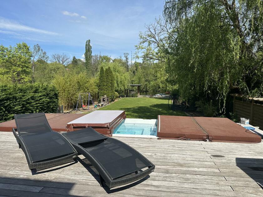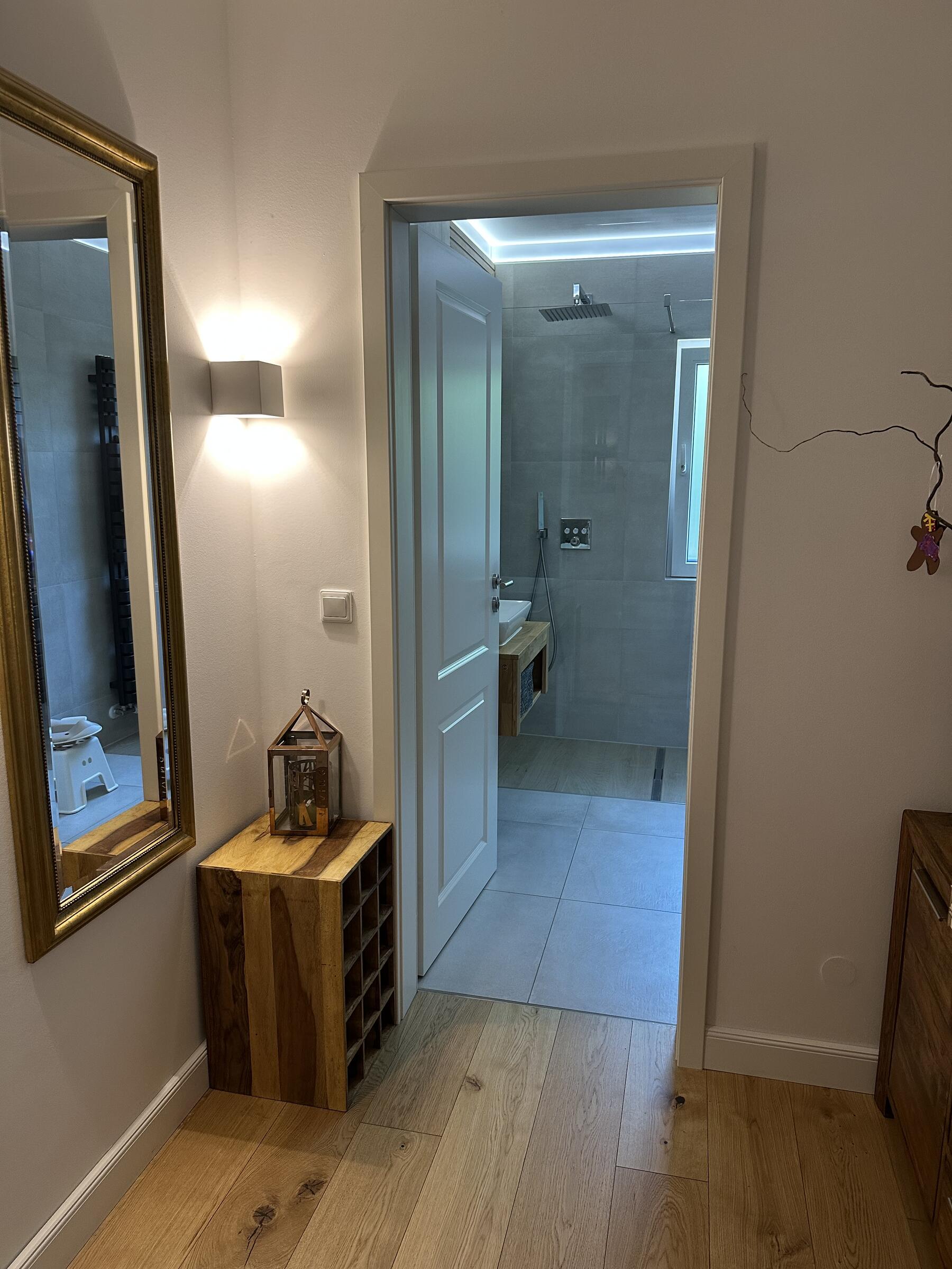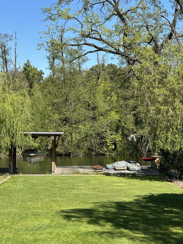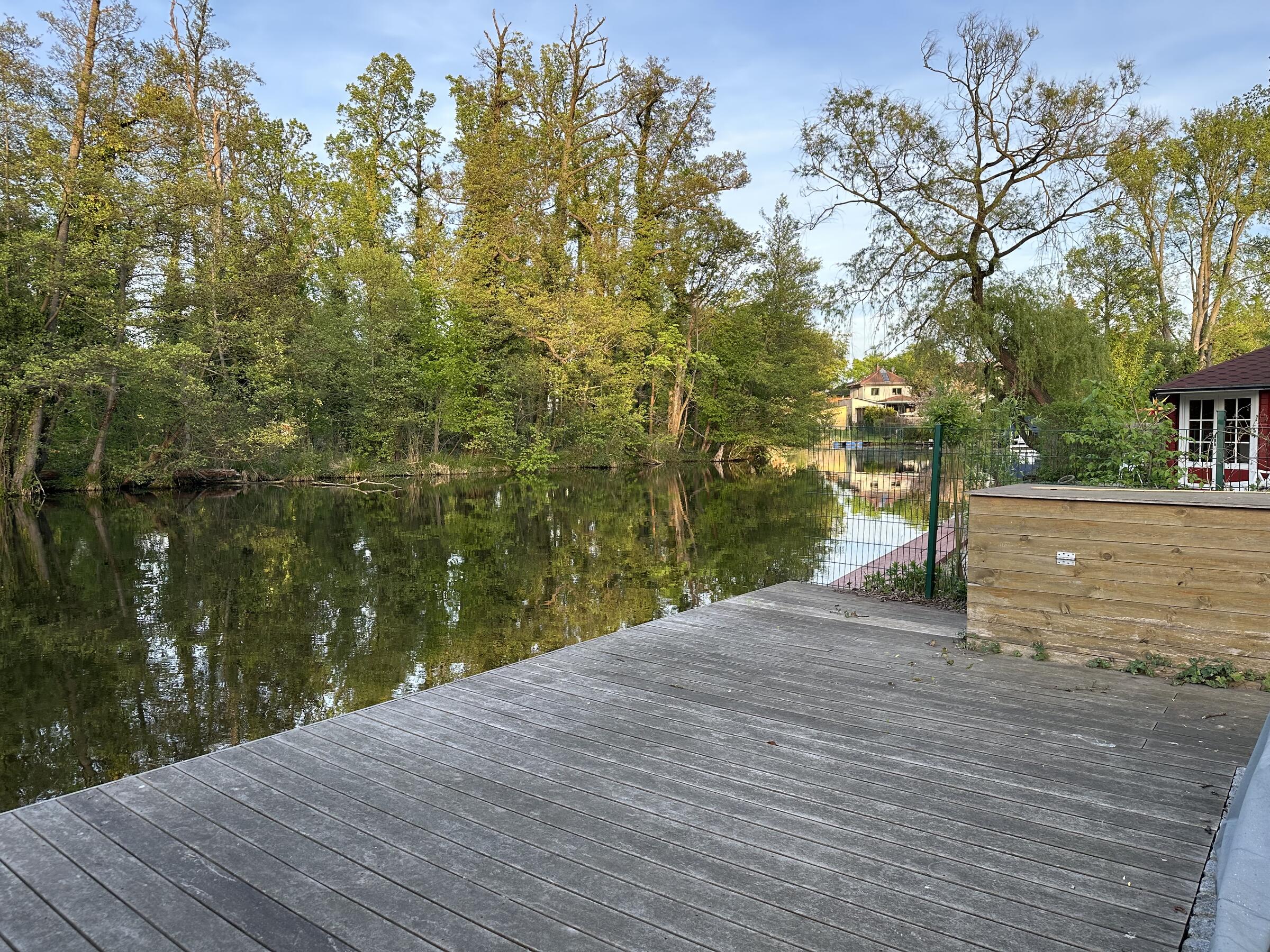 Unser Einfamilienhaus befindet sich in einer ruhigen Wohngegend in Berlin-Rahnsdorf und bietet direkten Zugang zum Hubertussee. Der große Wohn- und Essbereich im Erdgeschoss ist offen gestaltet und schließt an die Küche an. Auf den Böden der Wohnräume und Flure ist Holzparkett verlegt. Die Badezimmer sind gefliest. Die teilweise bodentiefen Fenster können mit Vorhängen verdunkelt werden. Im Außenbereich stehen die Terrasse mit Whirlpool und Außenpool zur Verfügung. Ebenfalls kann unser Bootshaus für Produktion genutzt werden. Parkplätze sind vor unserem Grundstück vorhanden.