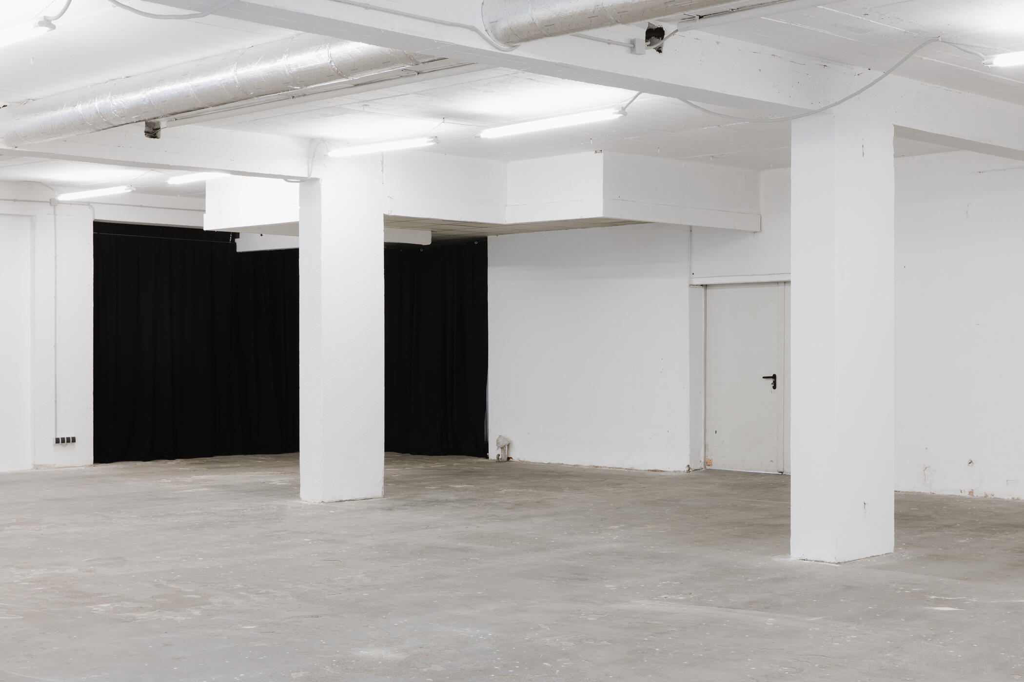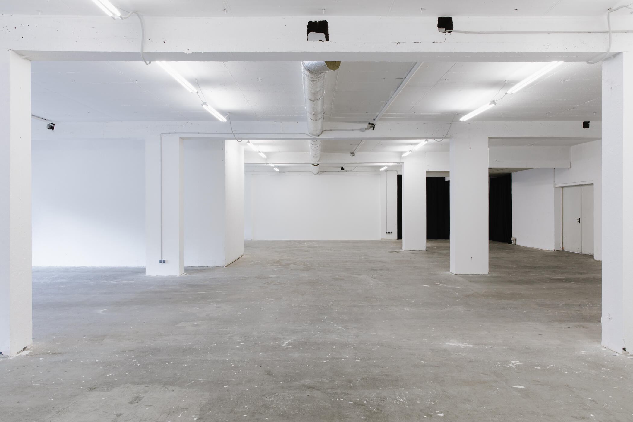 Die leerstehende Gewerbefläche besticht durch ihre offene und helle Auslegung. Mit insgesamt über 300 m² bietet sie genügend Platz und Flexibilität für jegliche Art von Produktion. Der Raum erlaubt den Aufbau von Hintergründen oder Requisiten. Der Boden ist in einem rohen und unbehandelten Zustand, was der Location ihren besonderen Charme verleiht. Alle Wände und Decken sind weiß gestrichen. Auffallend sind die großen Fensterfronten, die viel natürliches Licht durchlassen und zu einer Nebenstraße ausgerichtet sind. Eine Toilette ist ebenfalls zur Mitbenutzung vorhanden sowie ein kleiner Lagerraum.