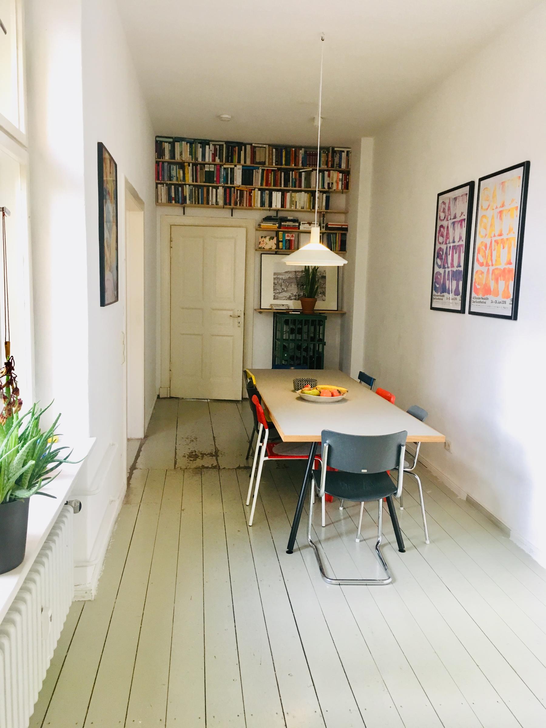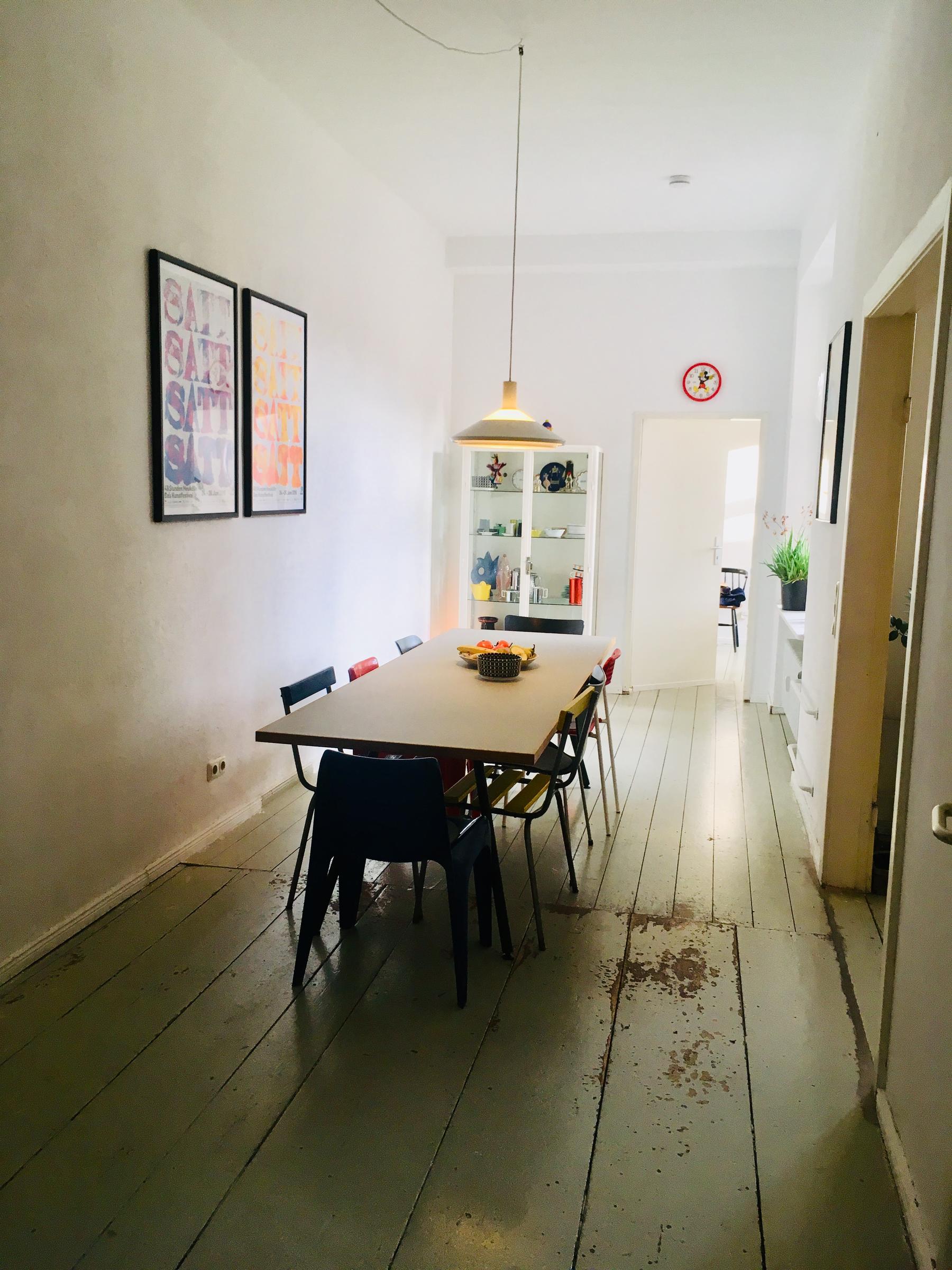 Sehr schöne, lichtdurchflutete, großzügige Altbauwohnung in Berlin, Neukölln. Die 130 m² große Wohnung befindet sich im 2. OG des Vorderhauses und besticht durch ihre interessante Raumaufteilung und typischen Altbauelemente wie Stuck und hohe Decken. Die Wohnung verfügt über geräumiges Wohnzimmer, eine offene Küche mit angrenzendem, großem Esszimmer, ein Arbeitszimmer, ein Fernsehzimmer und ein helles, freundliches Schlafzimmer mit Blick auf die 13 m² Dachterrasse. Insgesamt bieten die Räume genug Platz für mehre Mitarbeiter eines Film- oder Fototeams. Die Wohnung ist voll möbliert, jedoch lassen sich viele der Möbel flexibel umräumen, sodass genug Platz für Foto- und Filmarbeiten gegeben ist. Die Mischung aus Design-Klassikern und wunderschönen Flohmarkt-Funden macht diese Wohnung gemütlich und einzigartig. Öffentliche Parkplätze stehen in der näheren Umgebung zur Verfügung.