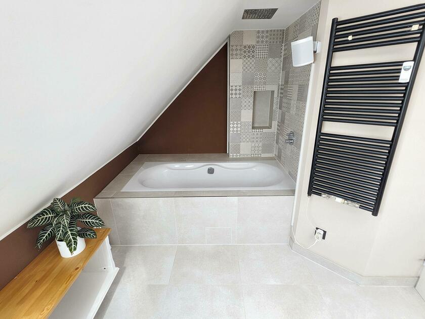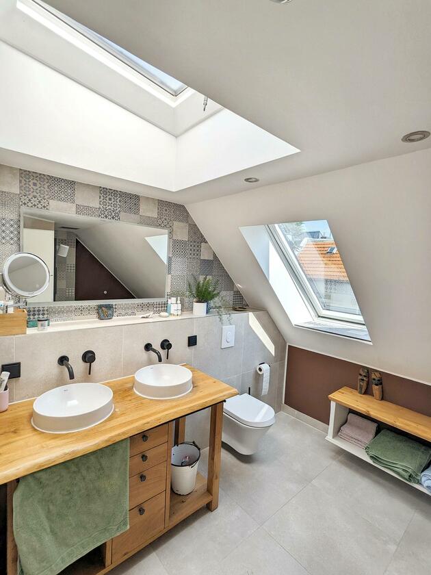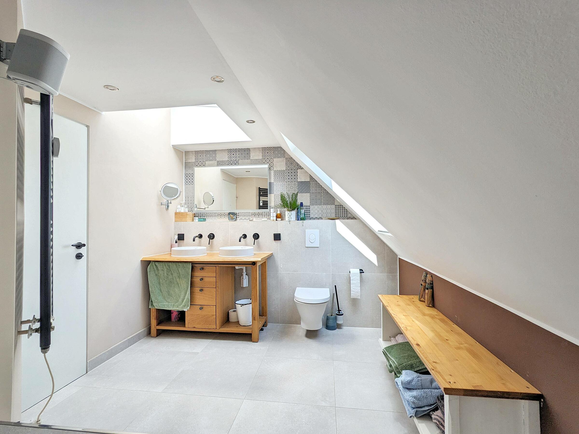 - Badezimmer (5. OG)Fläche: 9 m²Länge: 3 mBreite: 3 mHöhe: 2,3 mmöbliert: ja