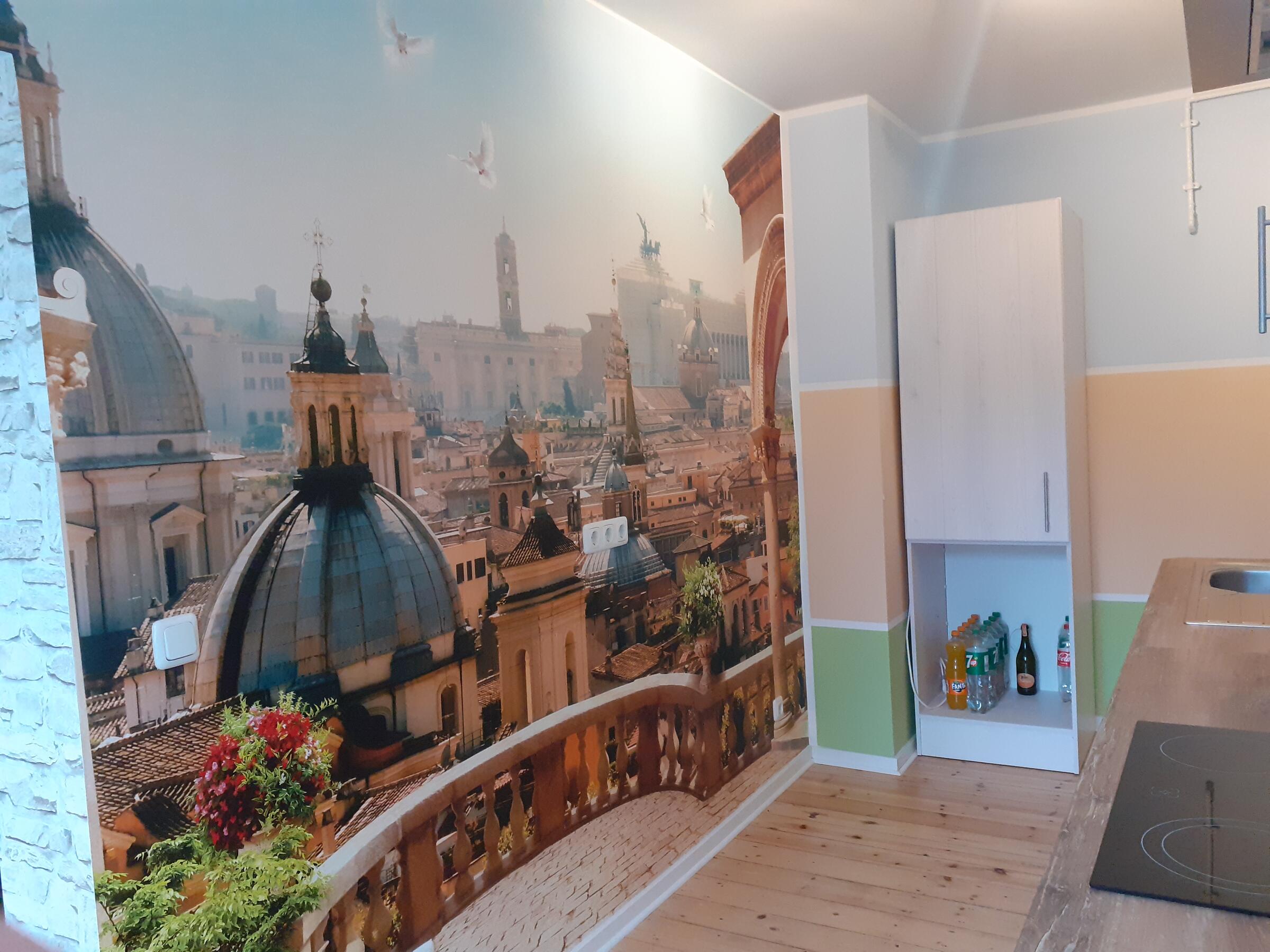 Dieses vielfältig nutzbare Studio auf 1,5 Etagen im Norden Berlins, das mit viel Liebe zum Detail im edlen italienischen Stil designt ist, bietet eine Fläche von insgesamt rund 80 m², welche variabel nutzbar ist. Alle Möbel sind mobil und können bei Bedarf auch umgestellt bzw. abgebaut werden. Die Gesamtfläche verteilt sich auf insgesamt drei Räume, welche alle unterschiedlich gestaltet sind. Dadurch können drei optisch völlig verschiedene Sets platziert werden. Jeder der Räume verfügt über ein edles Deckendecor, u.a. wird die "Erschaffung Davids" aus der Sixtinischen Kapelle gezeigt. Ein Bad und eine Küche sind ebenfalls vorhanden. Die zwei Haupträume liegen in Richtung Osten, sodass sie bis in die Mittagsstunden viel natürliches Licht bieten. Die Räume sind abdunkelbar. Kurzzeitiges Ent- und Beladen von Equipment ist möglich. Parkmöglichkeiten sind insbesondere am Vormittag gut gegeben. Die Störgeräusche durch die vorbeiführende Straße sind moderat.