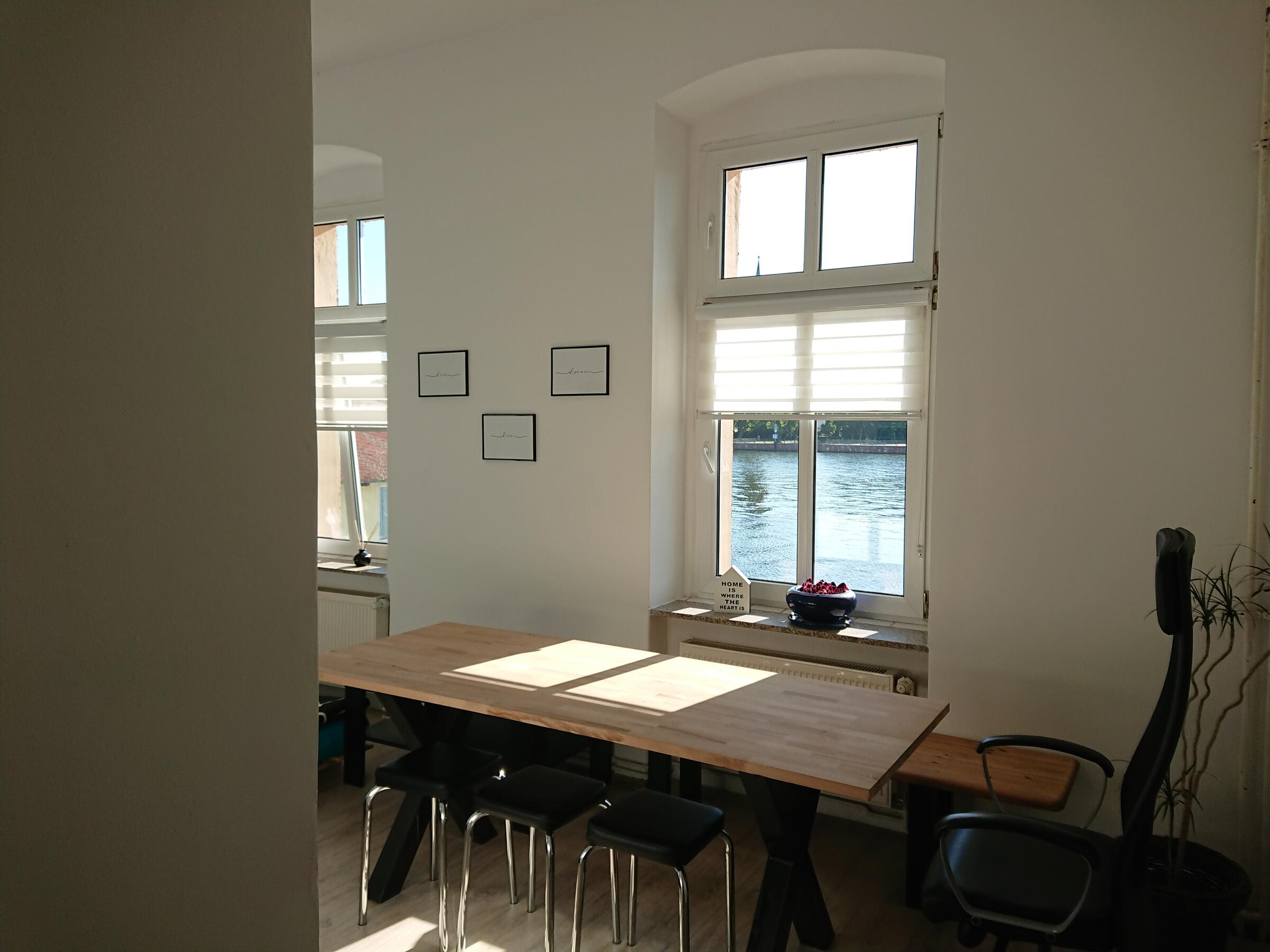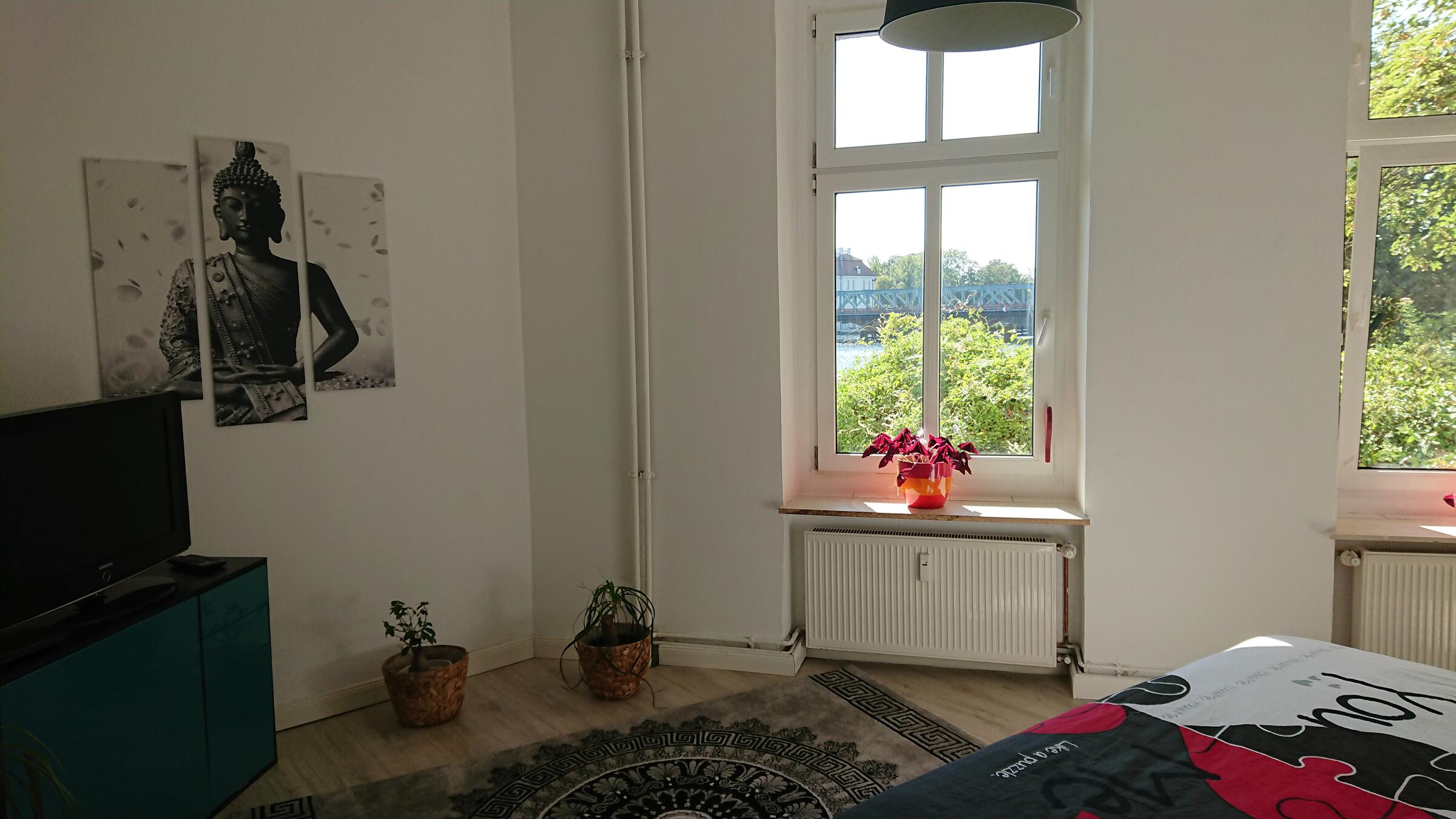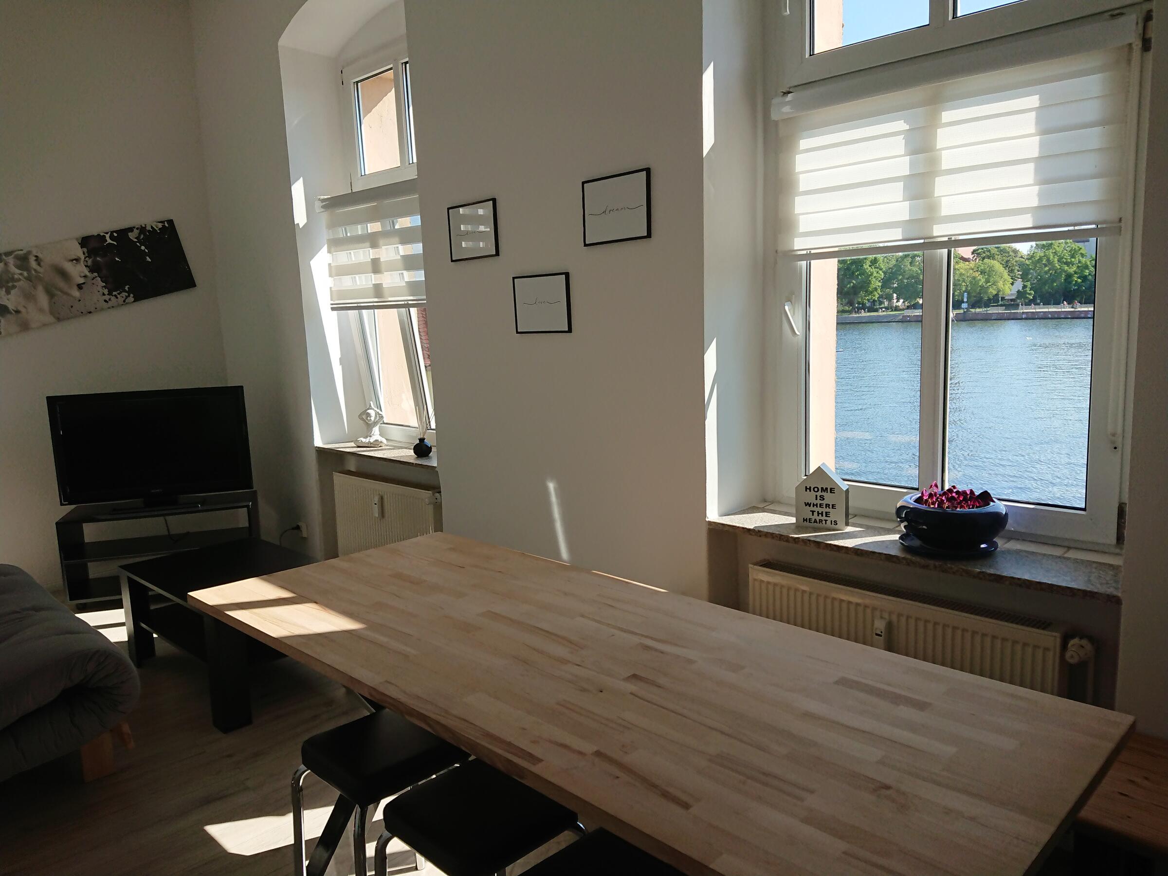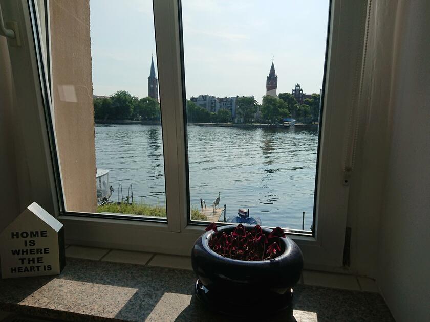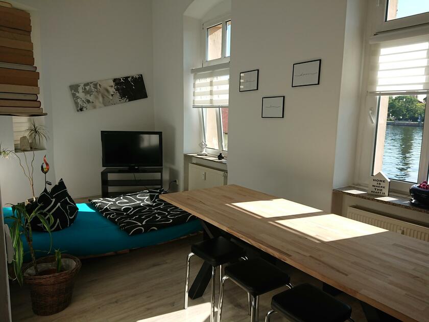 Die modern eingerichtete Wohnung liegt in Berlin, im Bezirk Treptow-Köpenick mit Blick auf Schloss und Altstadt. Die Wohnung mit Gartenzugang befindet sich direkt am Ufer der Dahme. Das Wasser ist über eine Leiter am Steg sehr gut zu erreichen. Die Wohnung verfügt über eine Massagedusche, ein LED-beleuchtetes Doppelbett mit durchgängiger Matratze, eine Küche die keine Wünsche offen lässt, ein Esszimmer mit Blick auf die Altstadt Köpenick und ein Wohnzimmer mit angrenzender Loggia. Im Wohnzimmer befinden sich sieben Sitzplätze. In der Loggia ist eine Hängematte mit schönem Naturblick zum Park. Der Garten bietet einen Grillplatz mit zahlreichen Sitz- und Liegemöglichkeiten. Für Schatten sorgt das großzügige Sonnensegel.