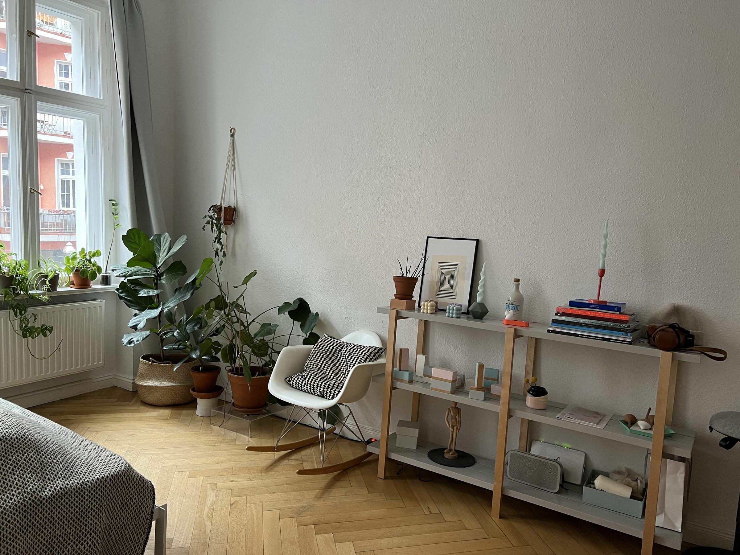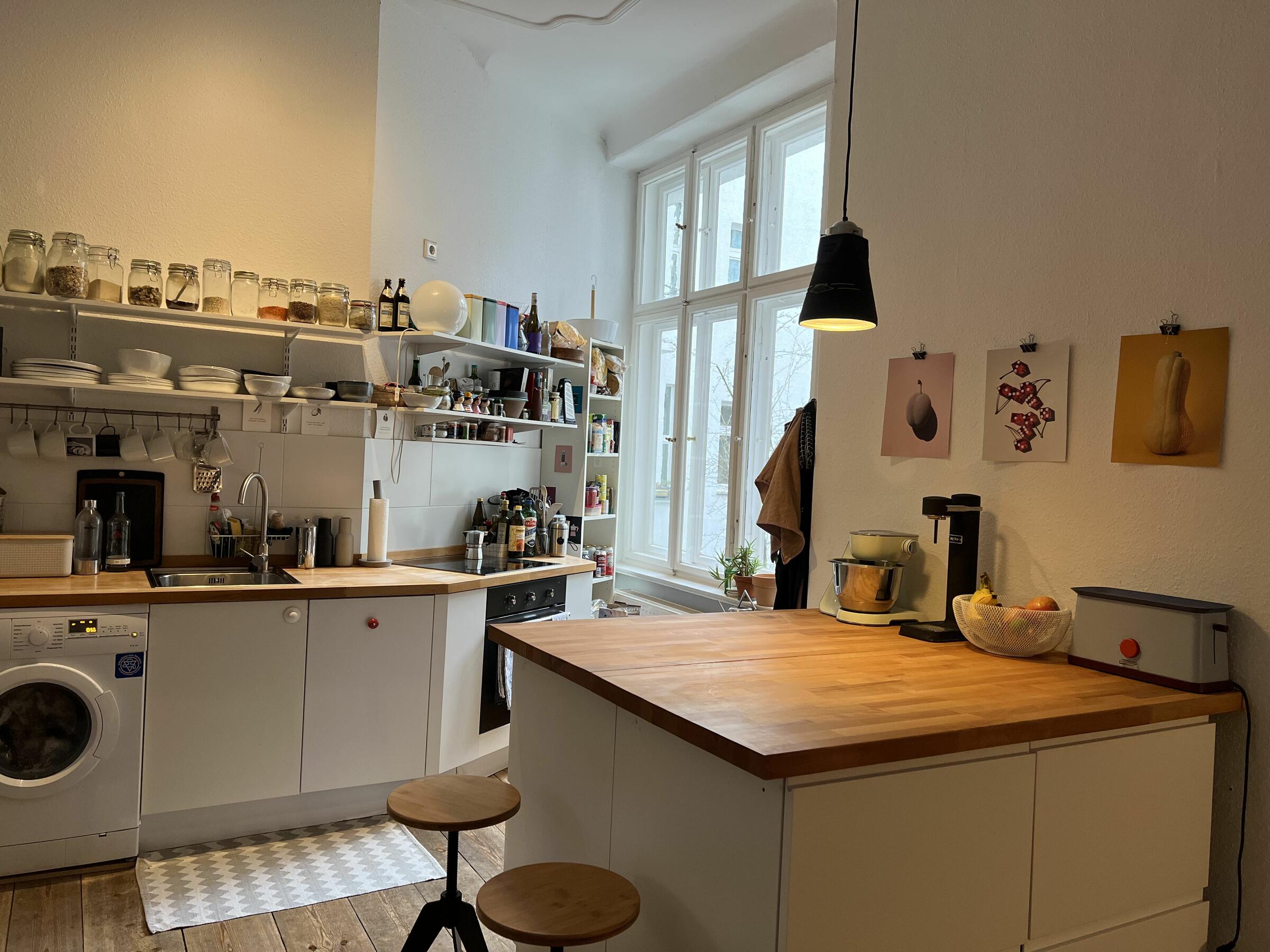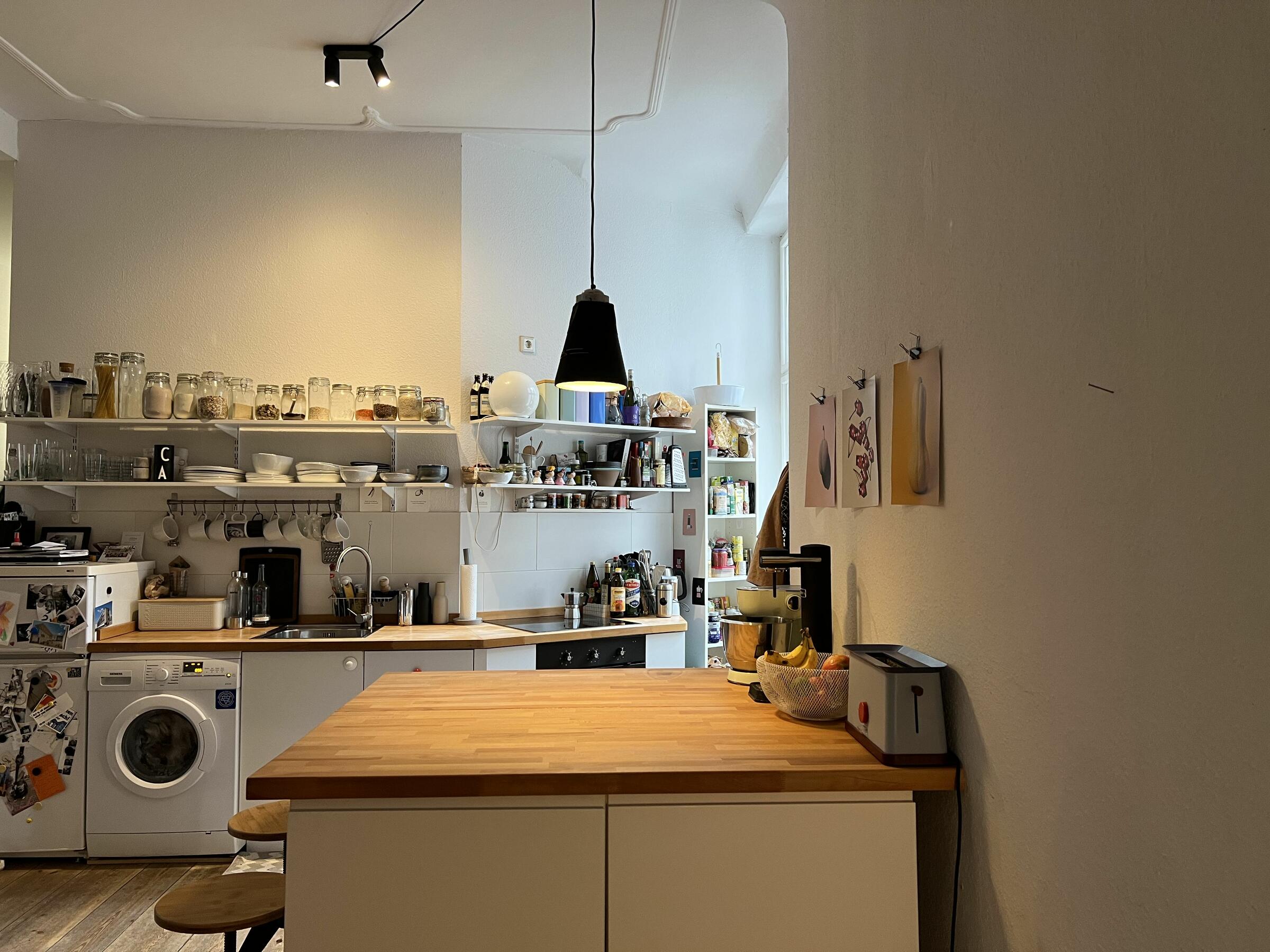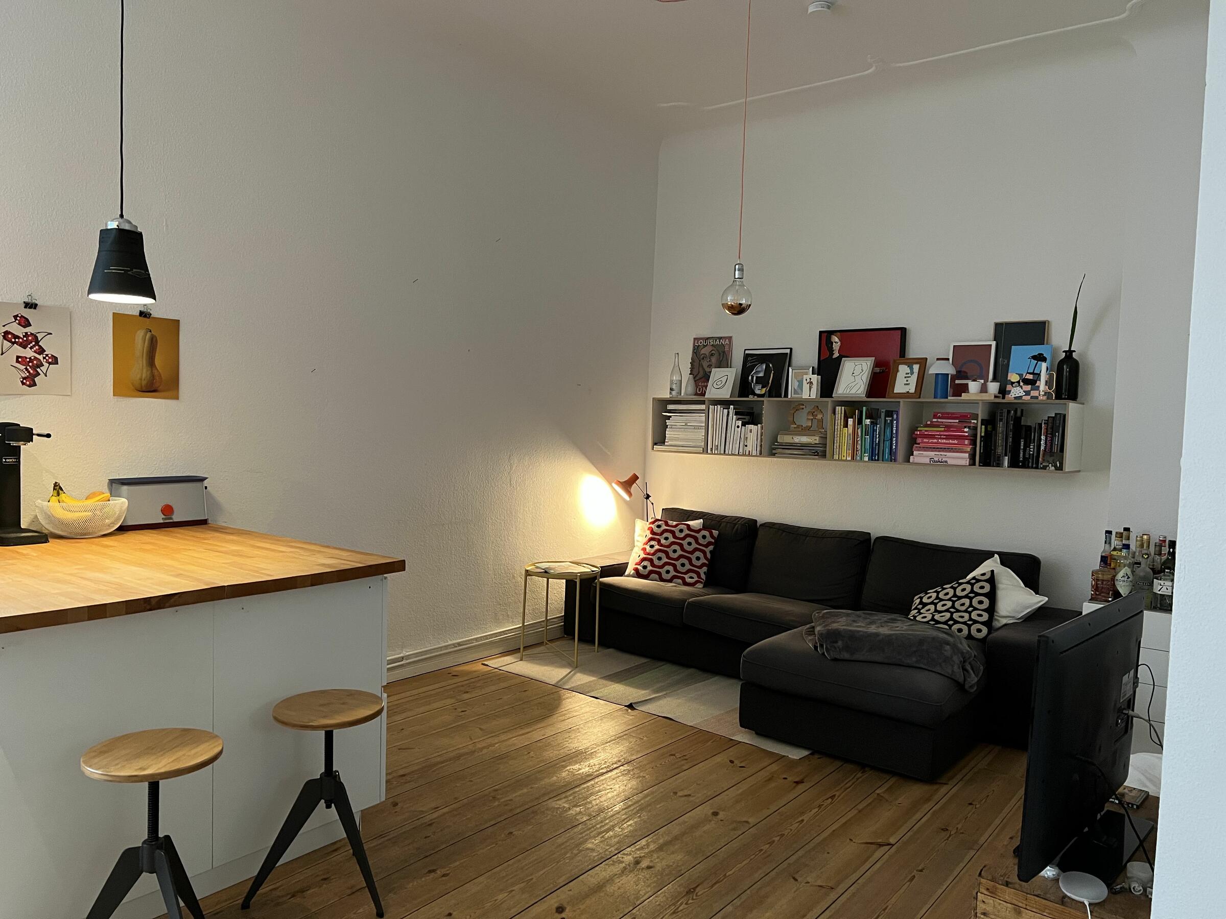 Ich biete meine wunderschöne Altbauwohnung im Herzen Neuköllns. Die Wohnung besticht durch hohe Decken, wunderbar erhaltenem Boden und einem offen gestalteten Wohnkonzept aus Küche, Lounge, Esszimmer, Wohnzimmer, separatem Schlafzimmer und Badezimmer. Die 90 m² große Wohnung befindet sich im ersten Stock und die großen Zimmer sind sehr hell bei Tageslicht. Die Einrichtung ist skaninavisch-minimalistisch gehalten, einem Mix aus Design-Objekten und alltagsüblichen Gegenständen und Marken. Alles kann umgeräumt und neu platziert werden. Es gibt einen kleinen Balkon zur Straße hinaus.