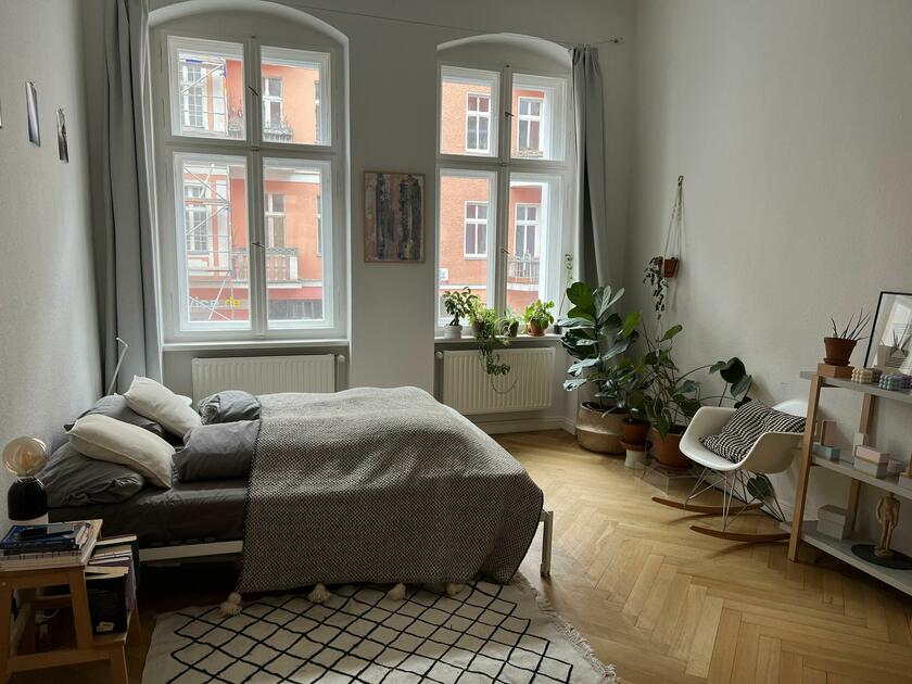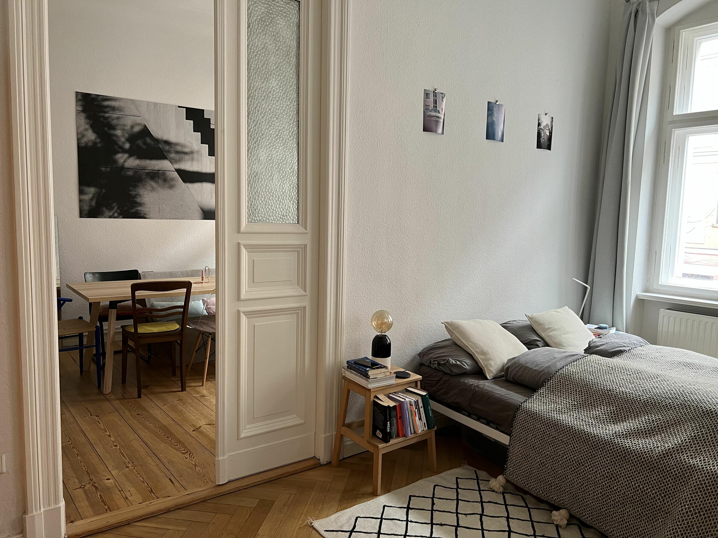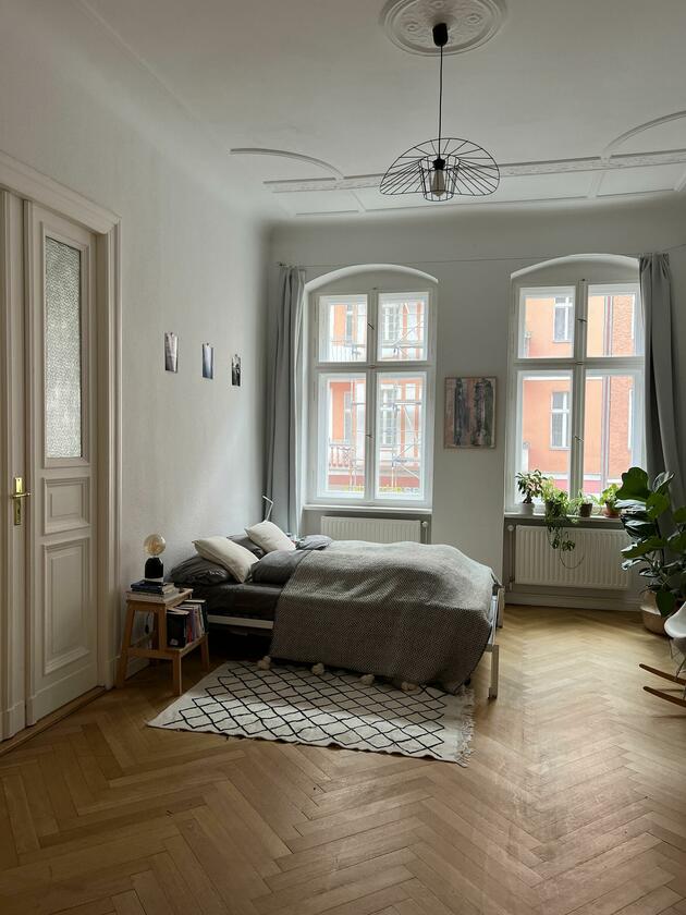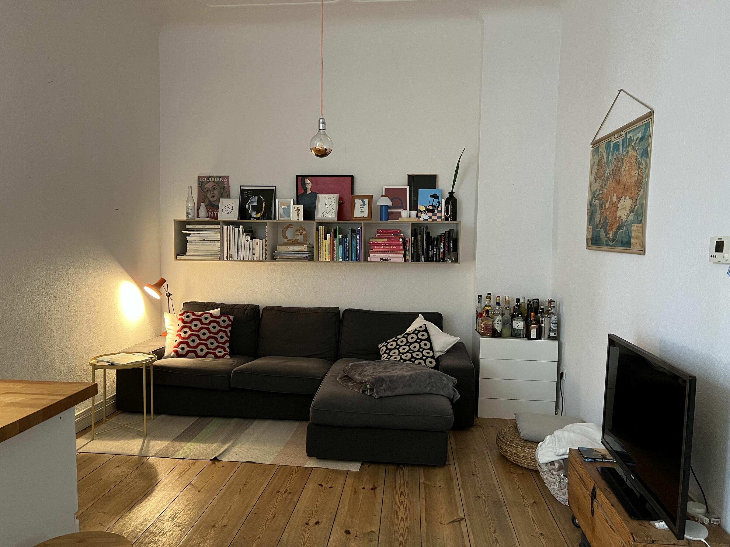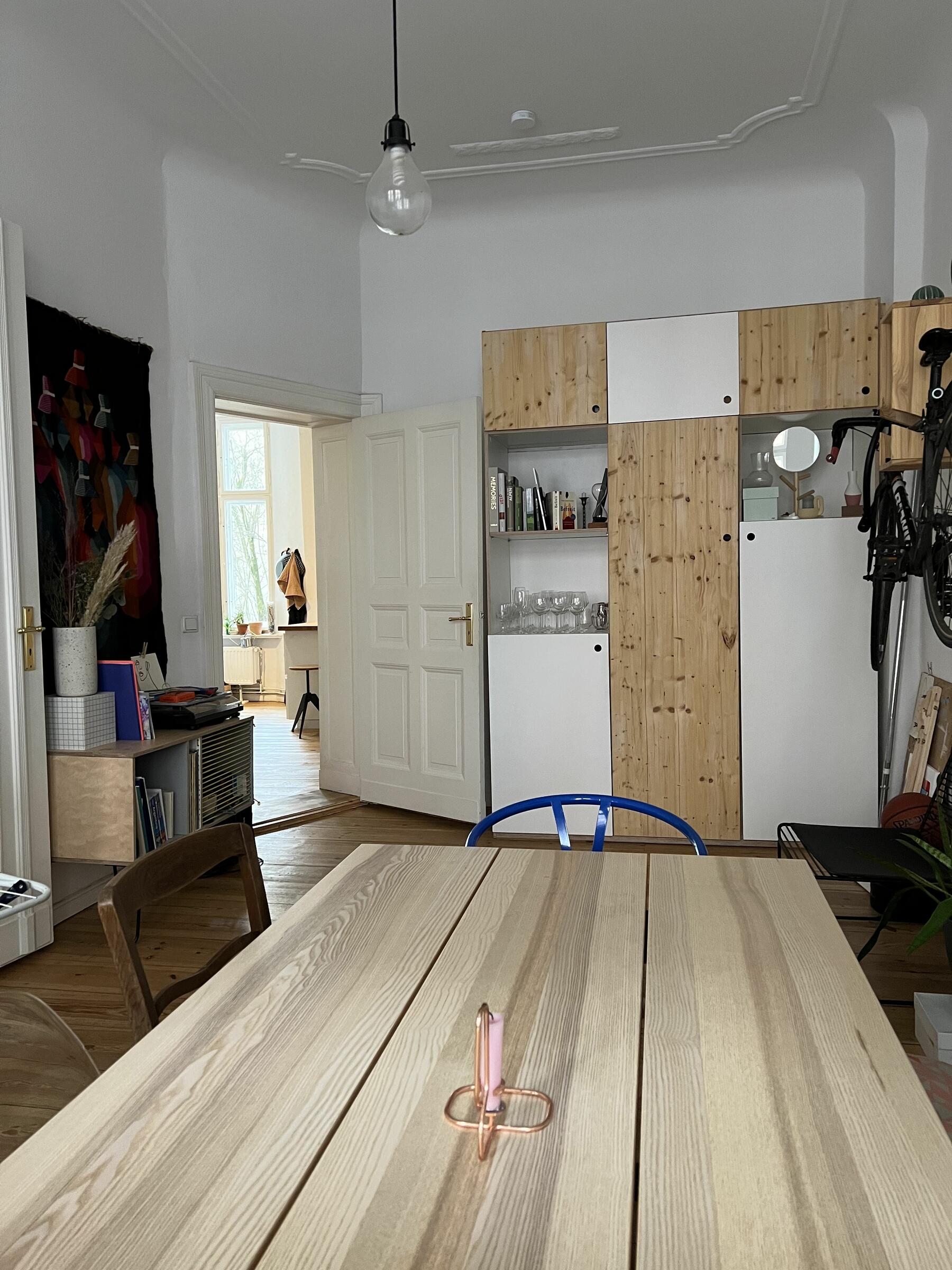 Ich biete meine wunderschöne Altbauwohnung im Herzen Neuköllns. Die Wohnung besticht durch hohe Decken, wunderbar erhaltenem Boden und einem offen gestalteten Wohnkonzept aus Küche, Lounge, Esszimmer, Wohnzimmer, separatem Schlafzimmer und Badezimmer. Die 90 m² große Wohnung befindet sich im ersten Stock und die großen Zimmer sind sehr hell bei Tageslicht. Die Einrichtung ist skaninavisch-minimalistisch gehalten, einem Mix aus Design-Objekten und alltagsüblichen Gegenständen und Marken. Alles kann umgeräumt und neu platziert werden. Es gibt einen kleinen Balkon zur Straße hinaus.
