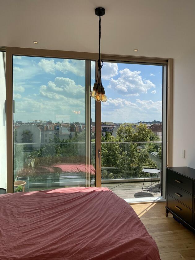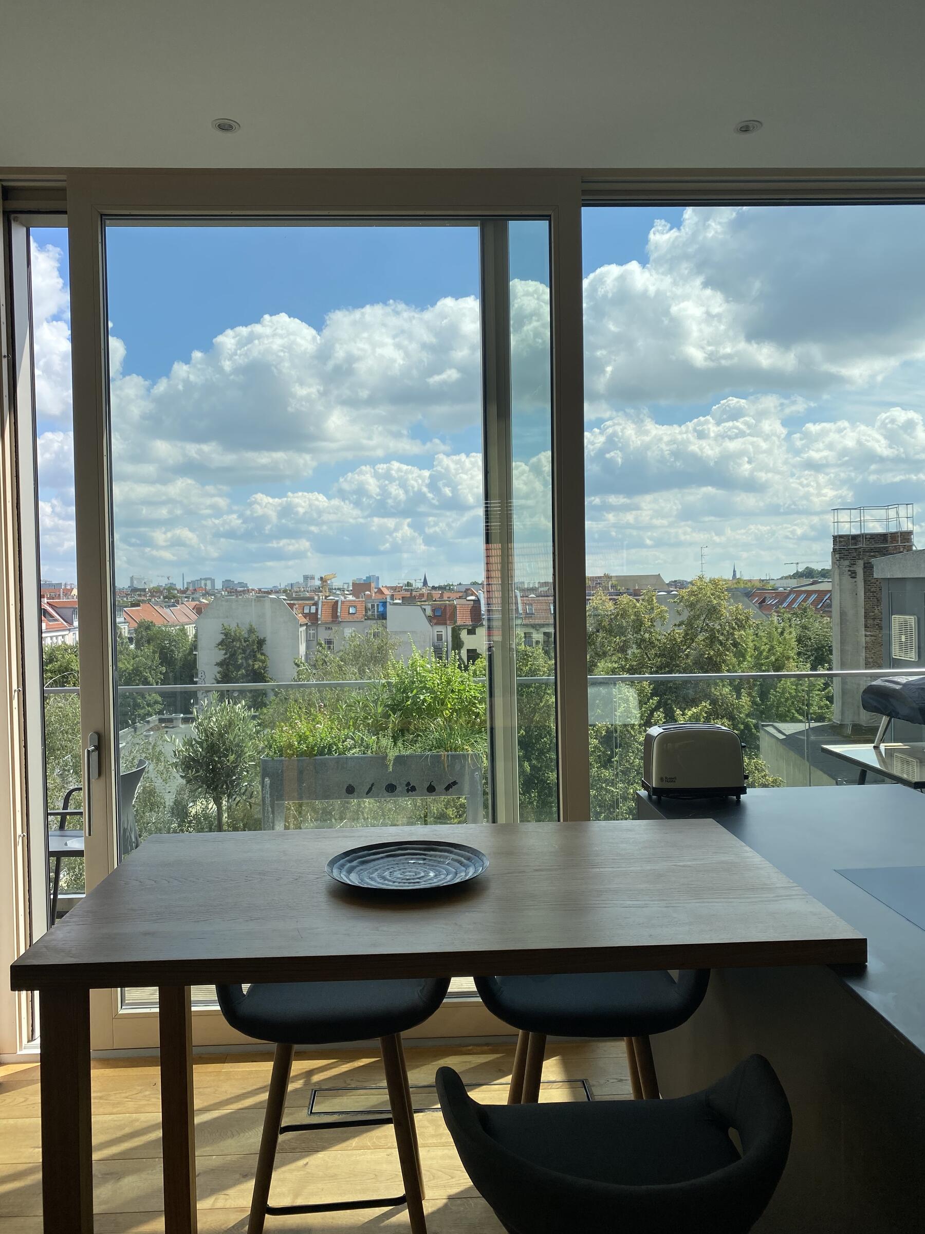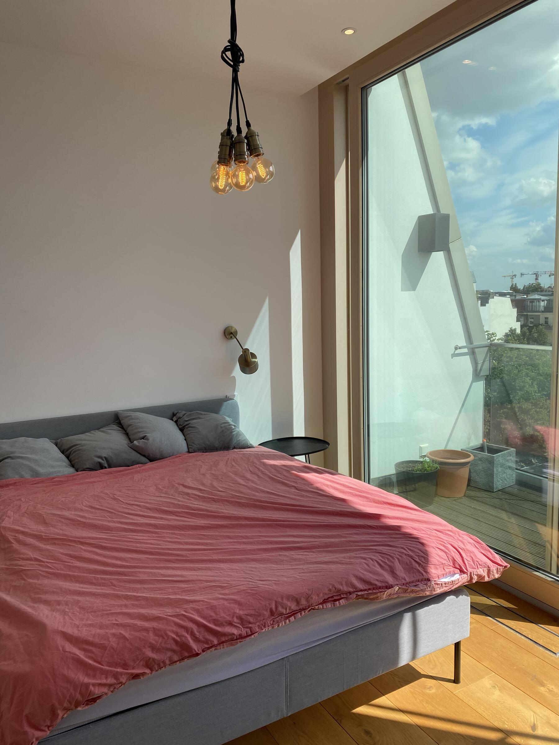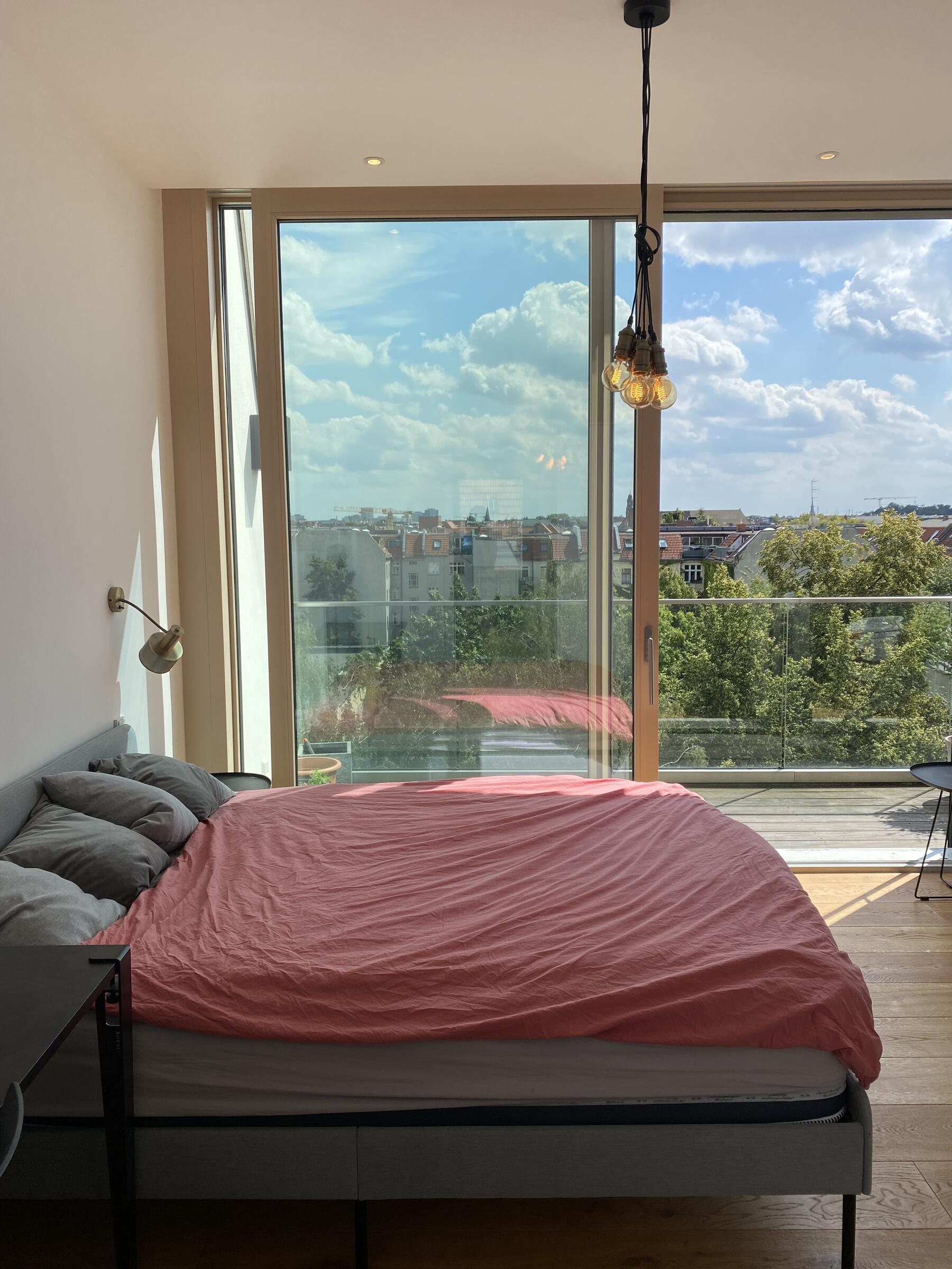 Dies ist eine wunderschöne helle Penthouse-Wohnung mit Floor to Ceiling Glasfenstern, zwei Balkonen, elektrischen Jalousien und einer großen Dachterasse. Mit einem Personenaufzug ausgestattet, ist dies die perfekte, moderne Wohnung für diverse Film und Werbeproduktionen. Die Wohnung hat eine moderne Designerküche eingebaut mit einem festverankerten Esstisch. Die Wohnung ist teilmöbliert, wodurch sich zusätzliche Möglichkiten für Setbauten ergeben. Es gibt zwei Schlafzimmer, ein Badezimmer (unterteilbar in zwei Räume), ein Gäste-WC, eine Küche und einen Wohnbereich. Die Fensterfronten sind in Richtung Osten und Westen ausgerichtet. Bitte melden Sie sich jederzeit bei Fragen und Interesse.