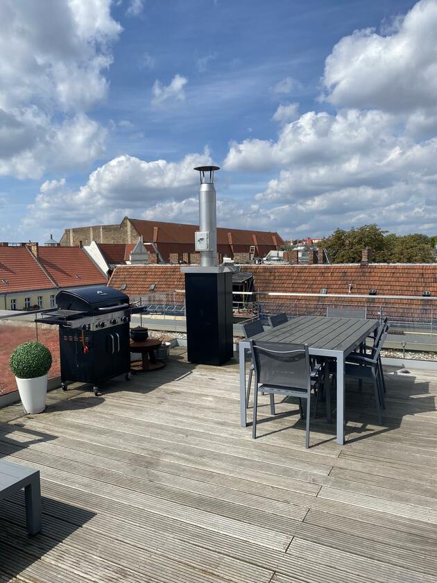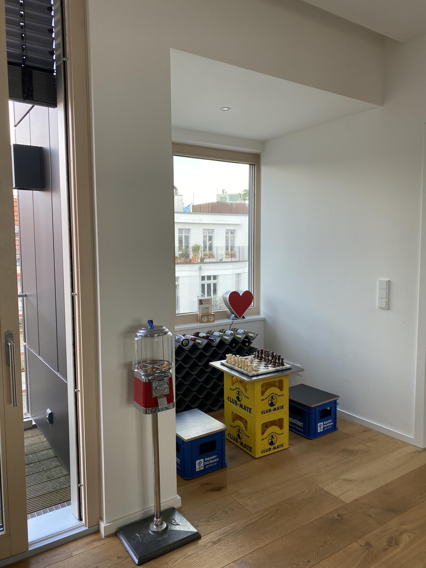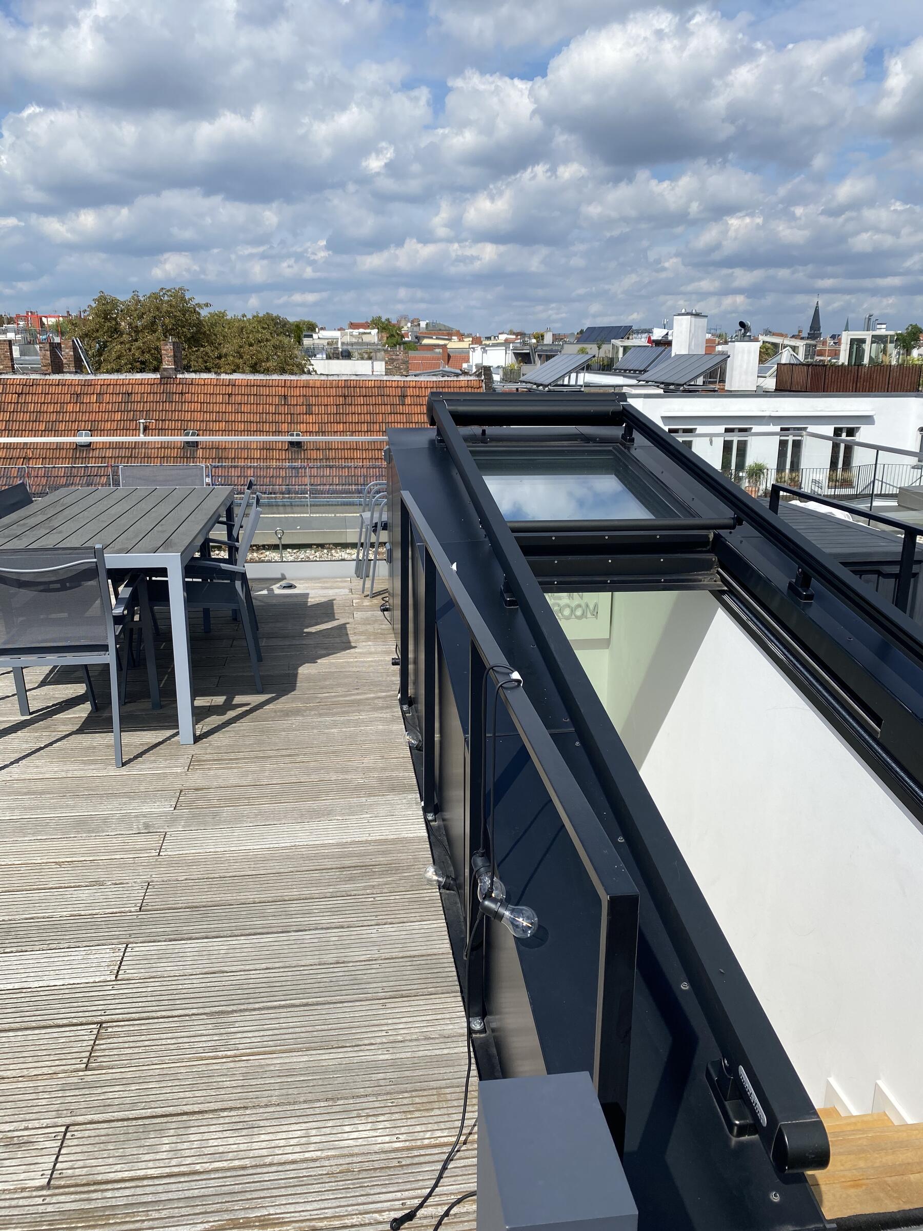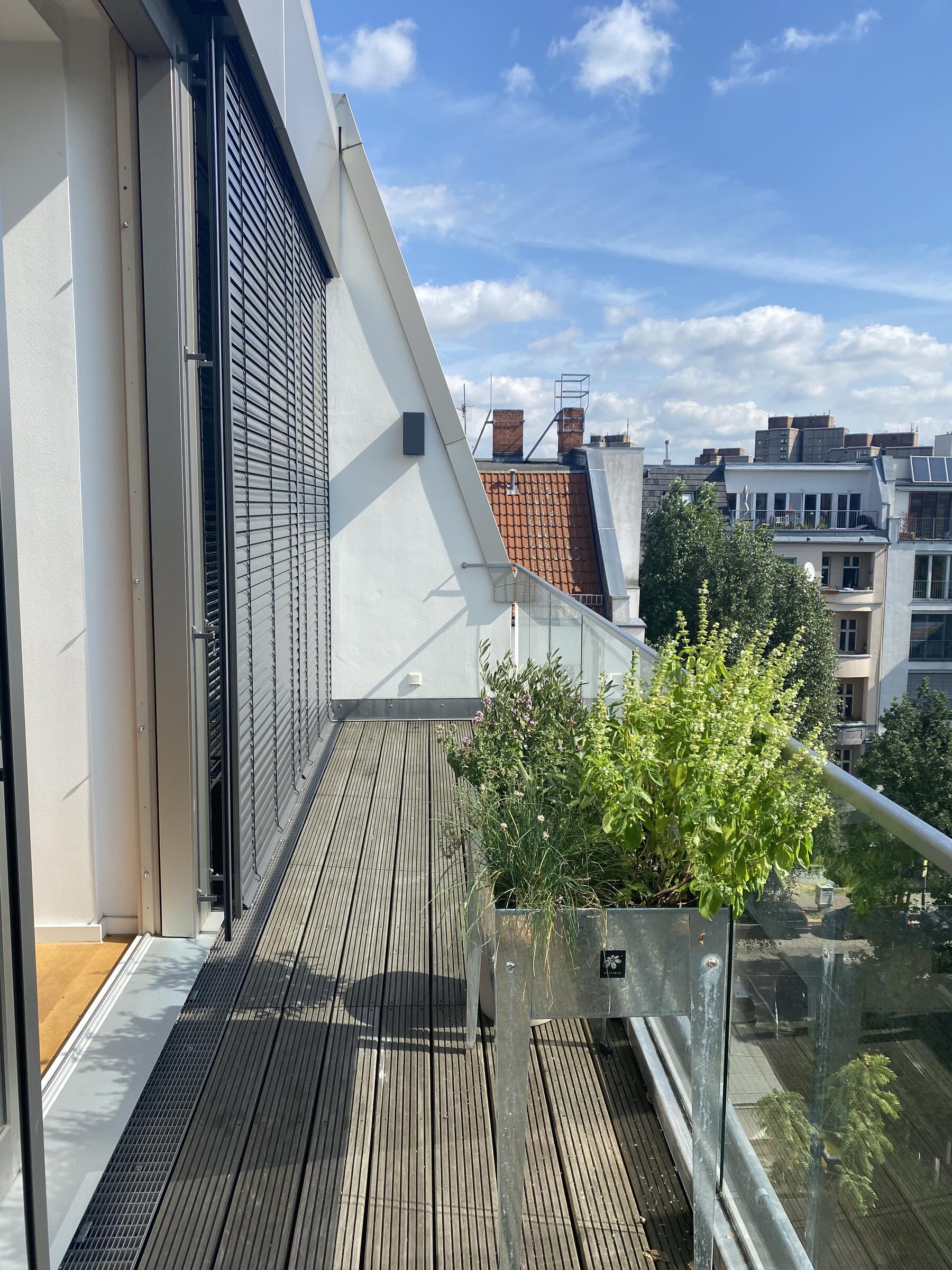 Dies ist eine wunderschöne helle Penthouse-Wohnung mit Floor to Ceiling Glasfenstern, zwei Balkonen, elektrischen Jalousien und einer großen Dachterasse. Mit einem Personenaufzug ausgestattet, ist dies die perfekte, moderne Wohnung für diverse Film und Werbeproduktionen. Die Wohnung hat eine moderne Designerküche eingebaut mit einem festverankerten Esstisch. Die Wohnung ist teilmöbliert, wodurch sich zusätzliche Möglichkiten für Setbauten ergeben. Es gibt zwei Schlafzimmer, ein Badezimmer (unterteilbar in zwei Räume), ein Gäste-WC, eine Küche und einen Wohnbereich. Die Fensterfronten sind in Richtung Osten und Westen ausgerichtet. Bitte melden Sie sich jederzeit bei Fragen und Interesse.