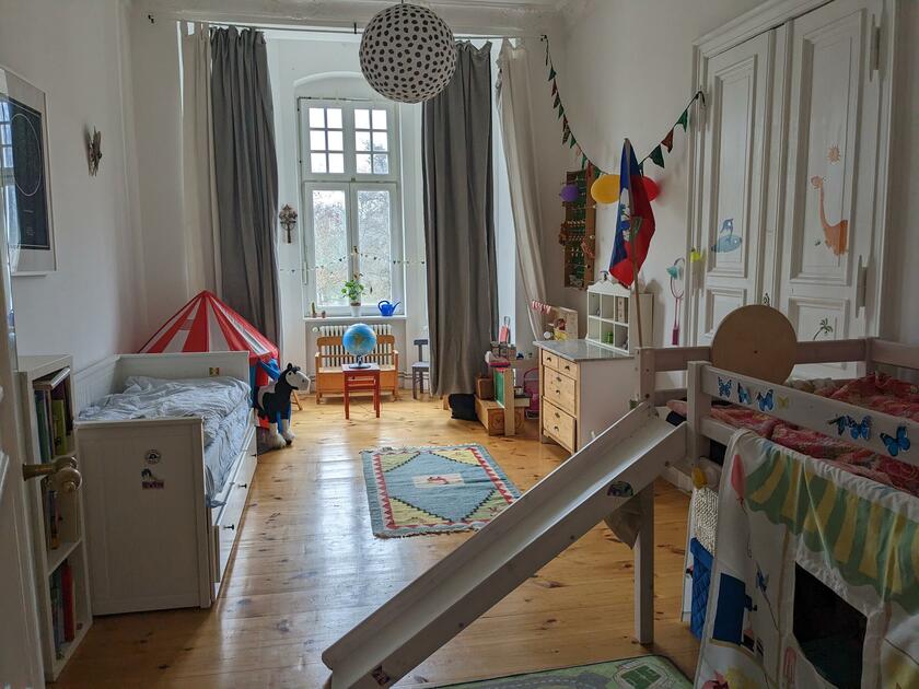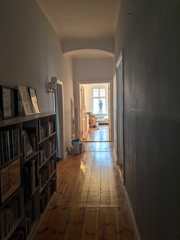 Unsere helle Wohnung befindet sich in einem um die Jahrhundertwende erbauten Wohnhaus, direkt gegenüber dem Bürgerpark Berlin mit Blick ins Grüne. Die hohen Decken mit Stuck, die alten Berliner Dielen und der noch funktionstüchtige alte Grundofen machen unsere Wohnung zu einem besonderen Unikat. Durch die großen Fenster fällt viel Sonnenlicht in die lichtdurchfluteten Wohnräume. Im näheren Umkreis sowie direkt vor dem Wohnhaus gibt es zahlreiche Parkmöglichkeiten. Wir haben bereits einige Erfahrung mit Dreharbeiten in unserer Wohnung und freuen uns darauf, bald auch Ihre Produktion bei uns begrüßen zu dürfen.