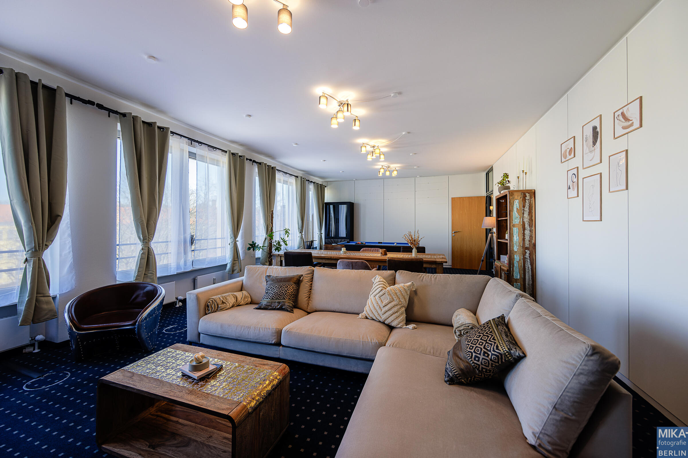 Unsere stilvolle Wohnung befindet sich im 4. Obergeschoss, ein Aufzug ist vorhanden, eines Hinterhauses in Berlin-Prenzlauer Berg. Die Wohnung besteht aus 2 Schlafzimmern, einem großzügigen Wohn- und Essbereich, einem langen Flur, einem Badezimmer und einer gut ausgestatteten Küche. Zur Einrichtung der Wohnung gehören auch ein Tischkicker und ein Billardtisch, die genutzt werden können. Die großen Fenster im Wohnbereich sind mit Vorhängen abdunkelbar. Die Wohnung ist mit öffentlichen Verkehrsmitteln ideal zu erreichen. Ein kostenloser Parkplatz gehört ebenfalls zur Wohnung und kann genutzt werden.