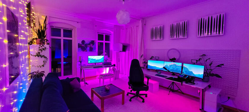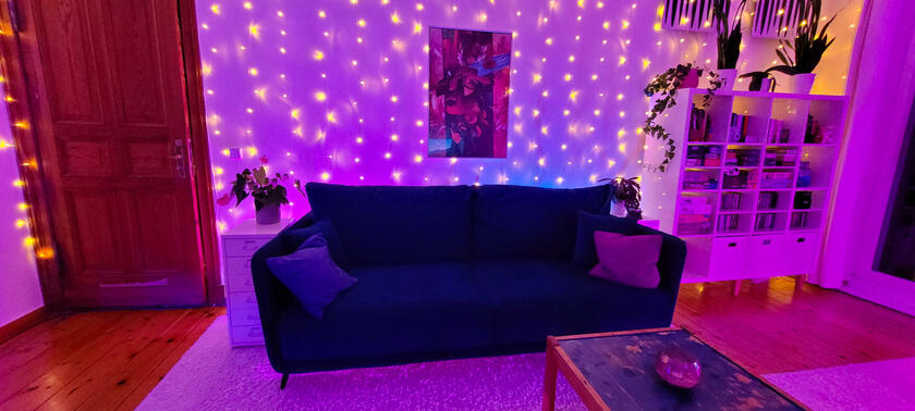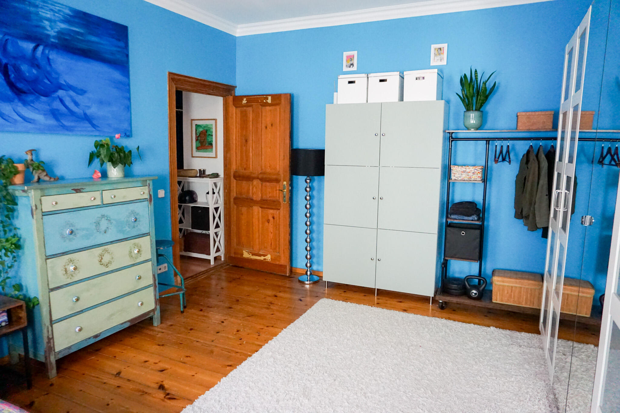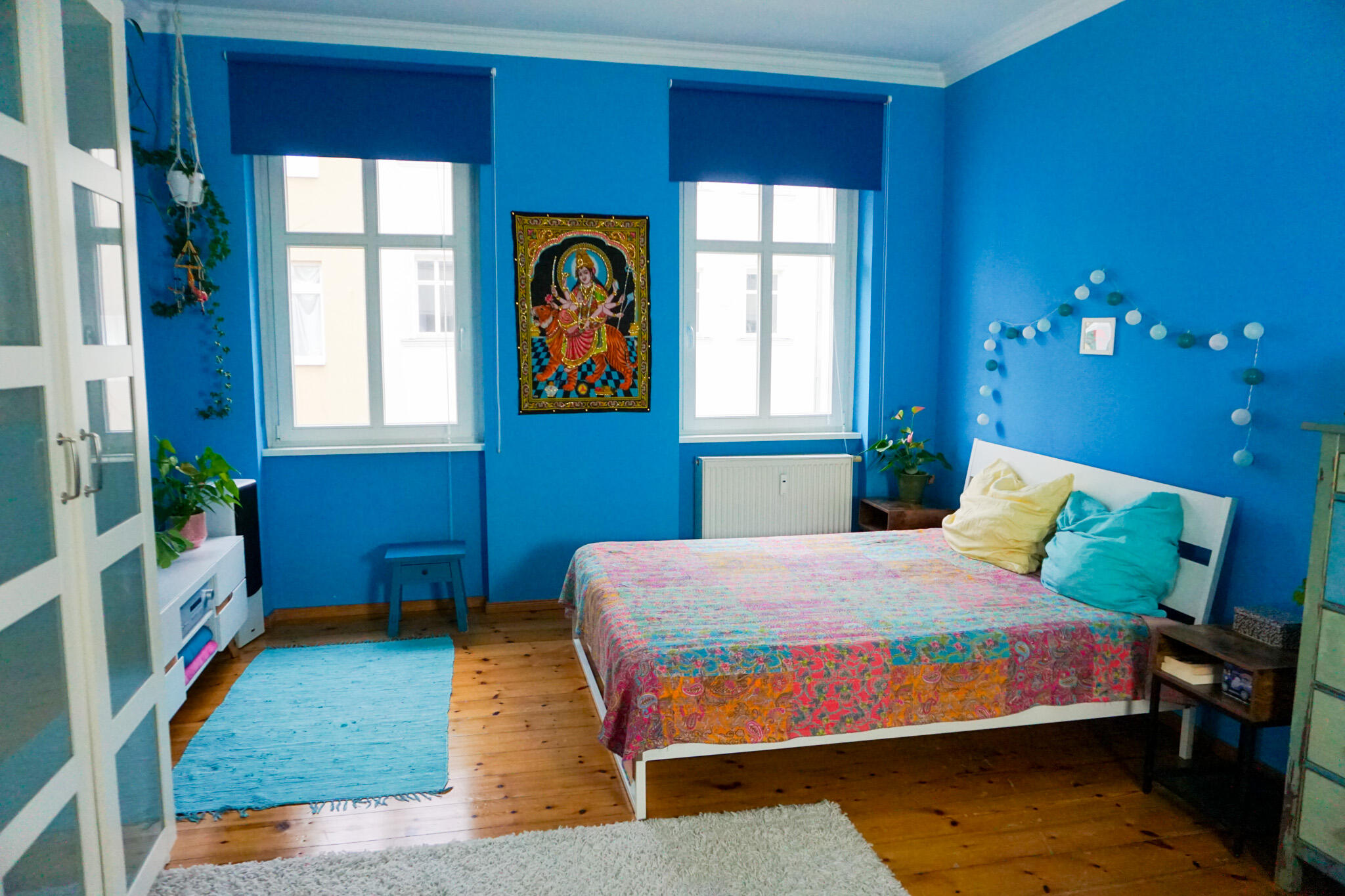 Meine charmante und moderne Altbauwohnung befindet sich im 3. Obergeschoss eines Wohnhauses im Prenzlauer Berg. Im hellen Wohnzimmer wurde Dielenboden und weißer Hochflorteppich verlegt. Da das Wohnzimmer auch als Homestudio für Musikproduktionen und YouTube Content genutzt wird, befinden sich an den Wänden teilweise Akustik-Absorber. Die Wände in meinem außergewöhnlichen Schlafzimmer sind blau gestrichen und die Möbel teilweise handbemalt. Im Schlafzimmer ist ebenfalls Dielenboden verlegt. Die Einbauküche ist in hochglänzendem Weiß und Holz gehalten. In der Küche ist orangefarbenes Linoleum verlegt. Das Badezimmer ist gefliest und bietet auch einen beleuchteten Schminkspiegel. Während Ihrer Produktion in meiner Wohnung ist es zwingend erforderlich Schuhüberzieher, die Sie von mir erhalten, zu verwenden. Außerhalb der Wochenenden kann es im Hof etwas lauter werden.