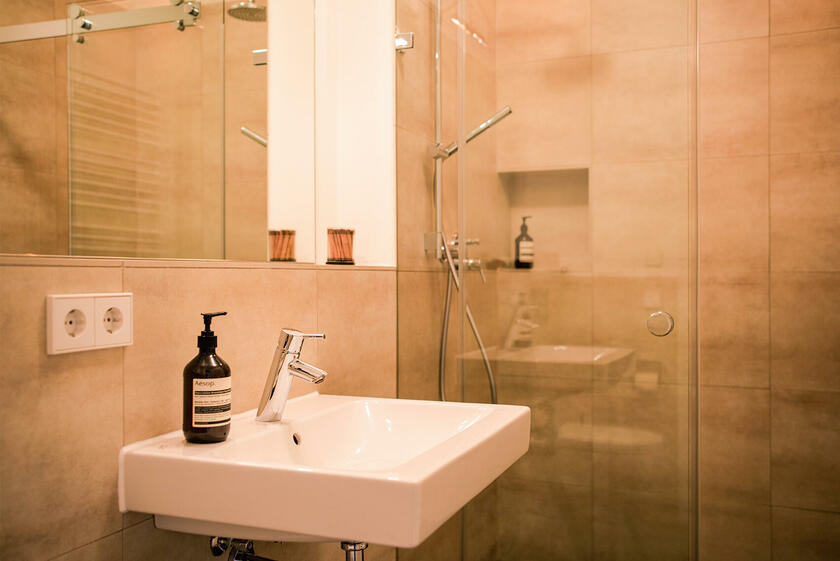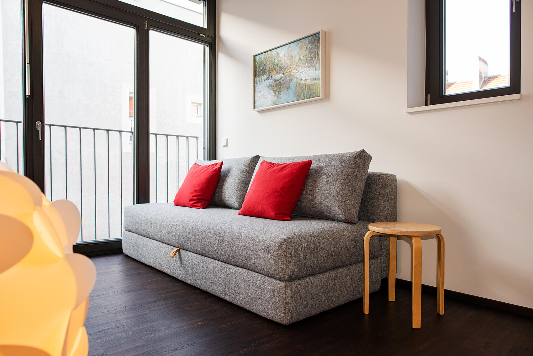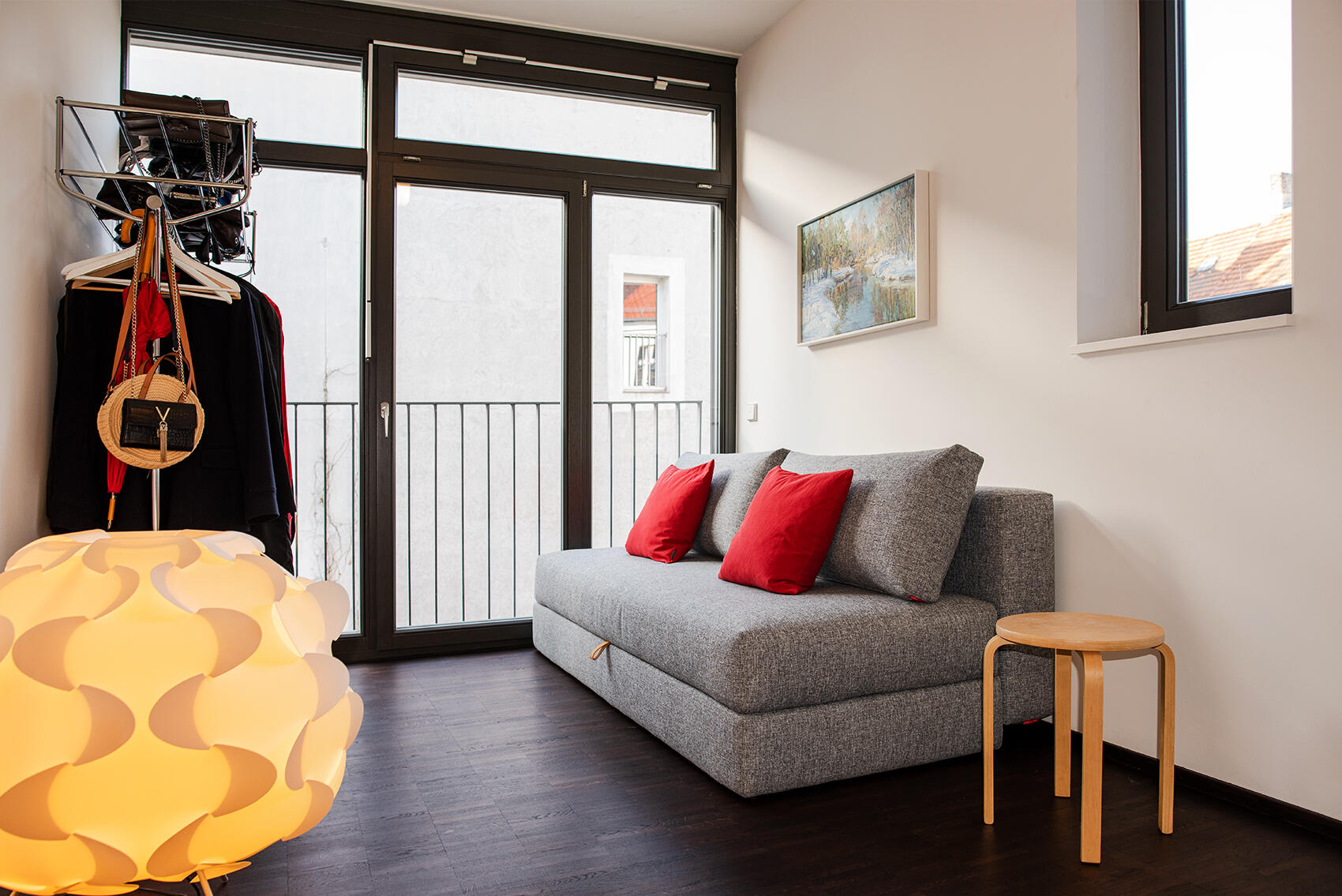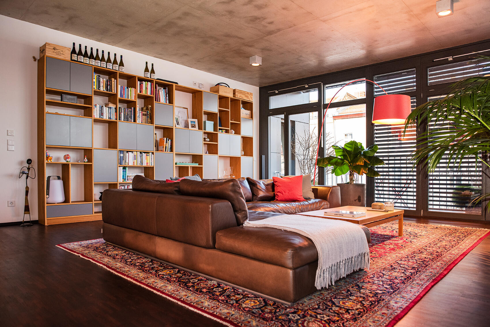 Unsere 170 m² große Wohnung befindet sich im 4. Obergeschoss eines Design-Neubaus in Berlin Schöneberg. Die großzügigen und lichtdurchfluteten Räume der Wohnung sind modern, elegant und designorientiert eingerichtet. Die hochwertigen Designmöbel wurden teilweise maßgefertigt. Die Küche bietet einen freistehenden Küchenblock. Die Böden der Wohnräume sind mit hochwertigen Echtholzparkett ausgelegt. Das Badezimmer ist gefliest. Die bodentiefen Fenster der Räume sind mit Jalousien abdunkelbar. Ein um die Wohnung zur Hälfte umlaufender Balkon steht ebenfalls für Produktionen zur Verfügung.