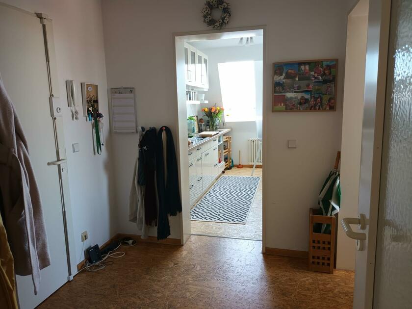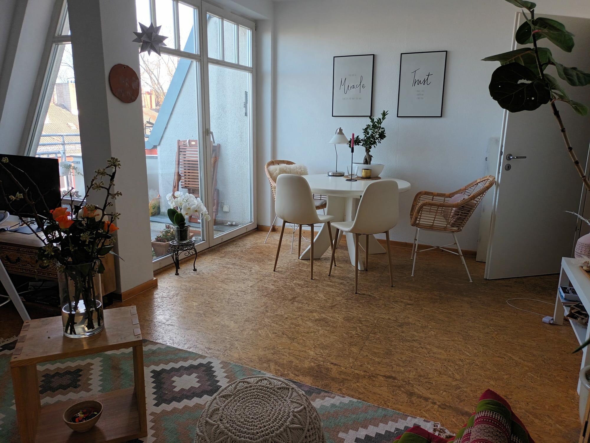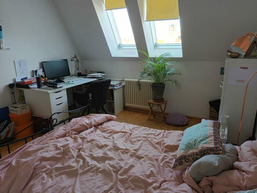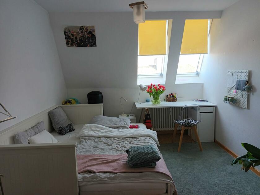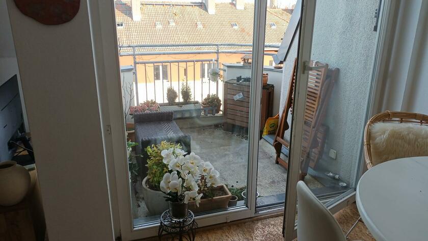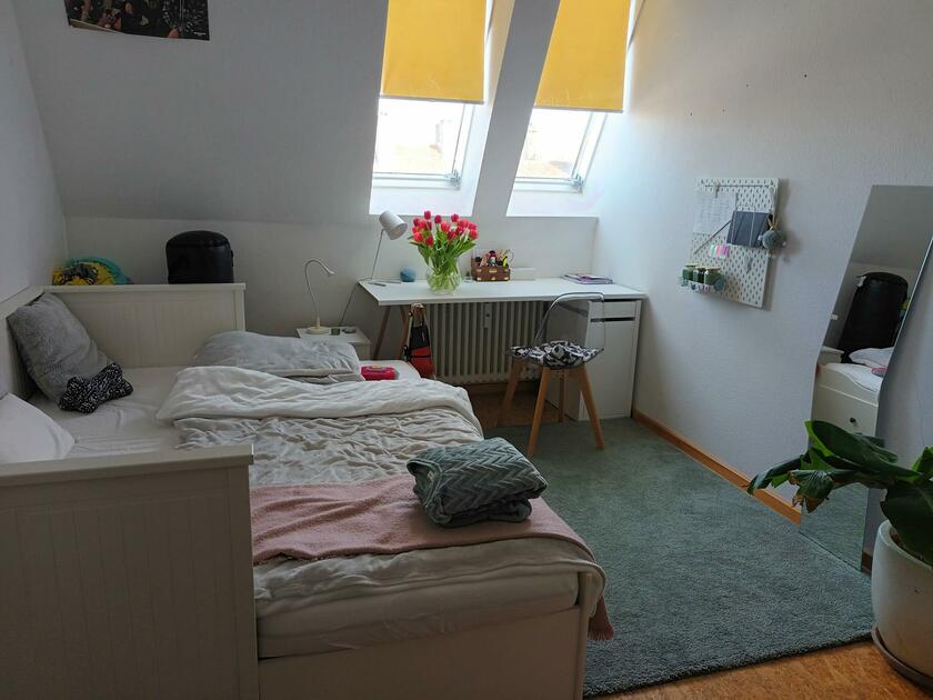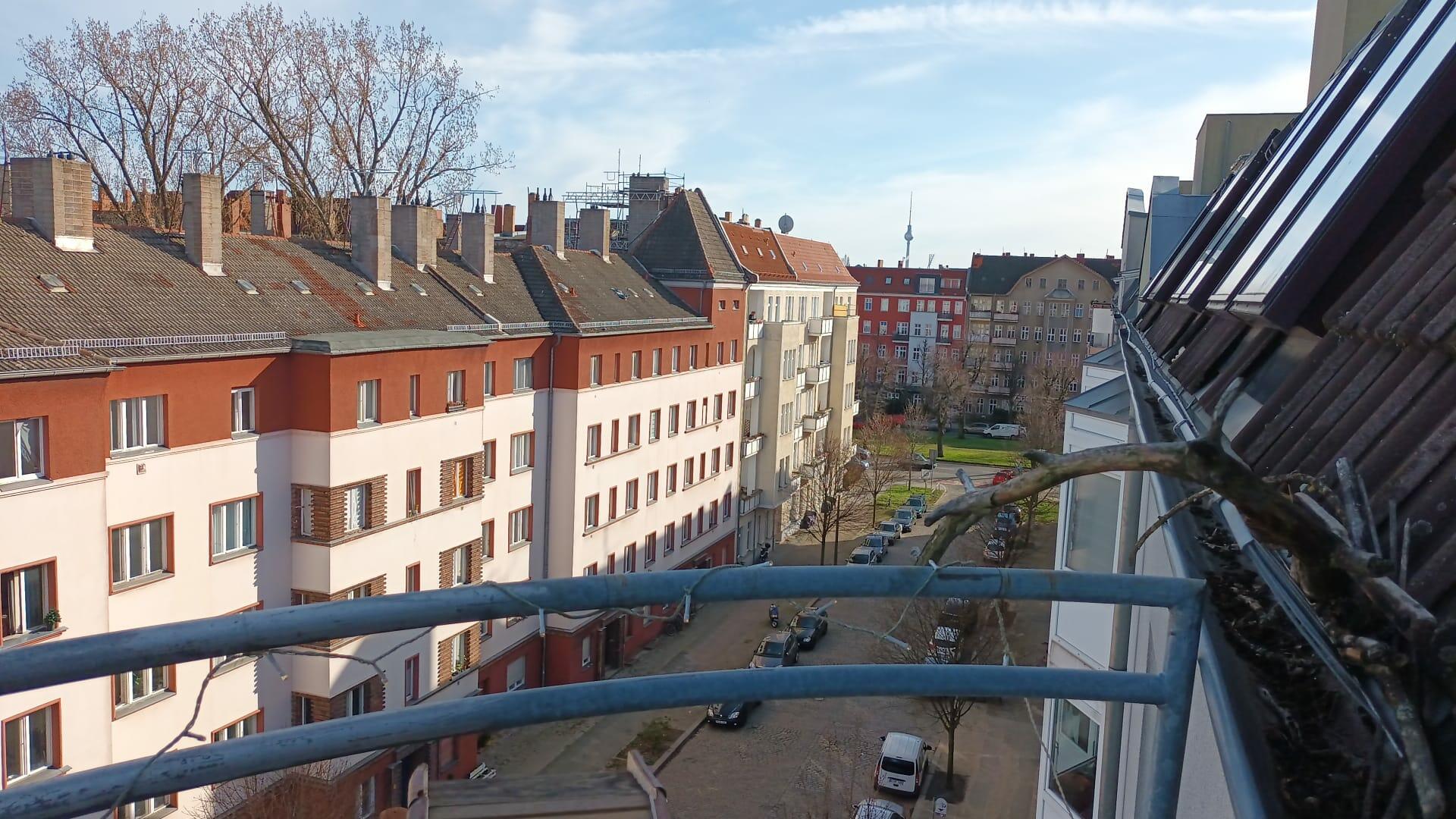 Meine 94 m² große Dachgeschosswohnung befindet sich in einem Neubau im Prenzlauer Berg. Durch die schrägen Dachfenster fällt viel Licht in die Räume meiner hellen Wohnung. An den Fenstern im Wohnzimmer sind keine Vorhänge oder Jalousien zur Abdunklung vorhanden. Die übrigen Fenster können nur partiell abgedunkelt werden.