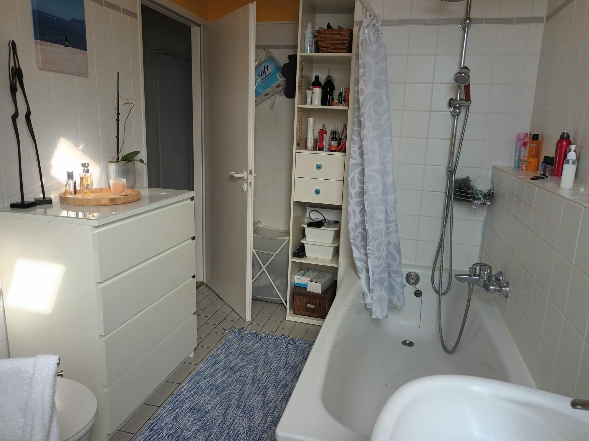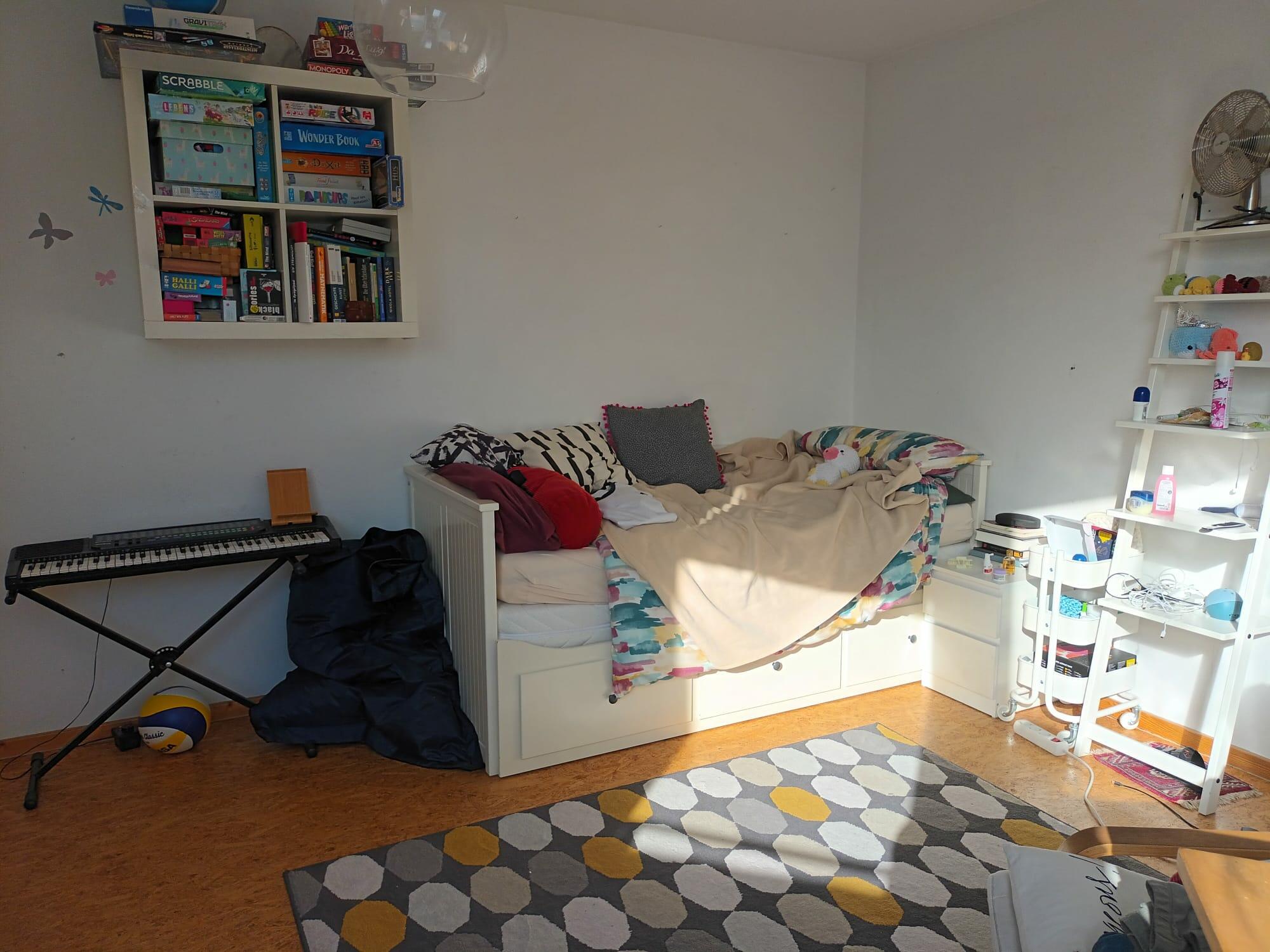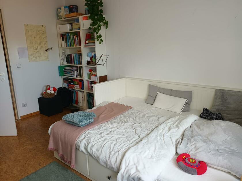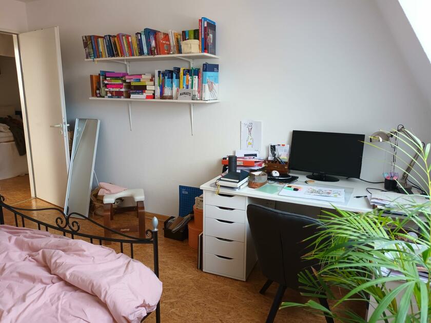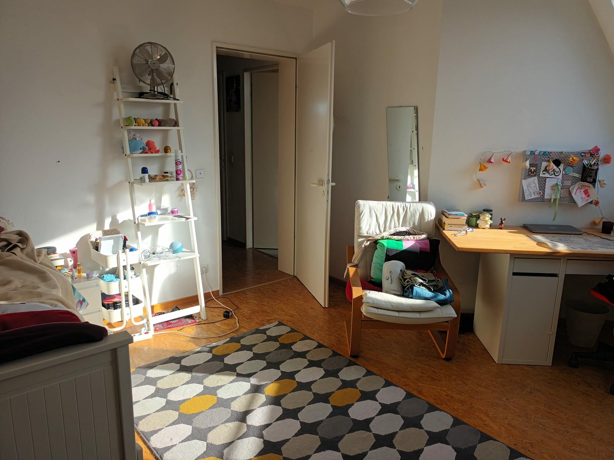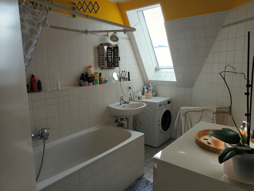 Meine 94 m² große Dachgeschosswohnung befindet sich in einem Neubau im Prenzlauer Berg. Durch die schrägen Dachfenster fällt viel Licht in die Räume meiner hellen Wohnung. An den Fenstern im Wohnzimmer sind keine Vorhänge oder Jalousien zur Abdunklung vorhanden. Die übrigen Fenster können nur partiell abgedunkelt werden.