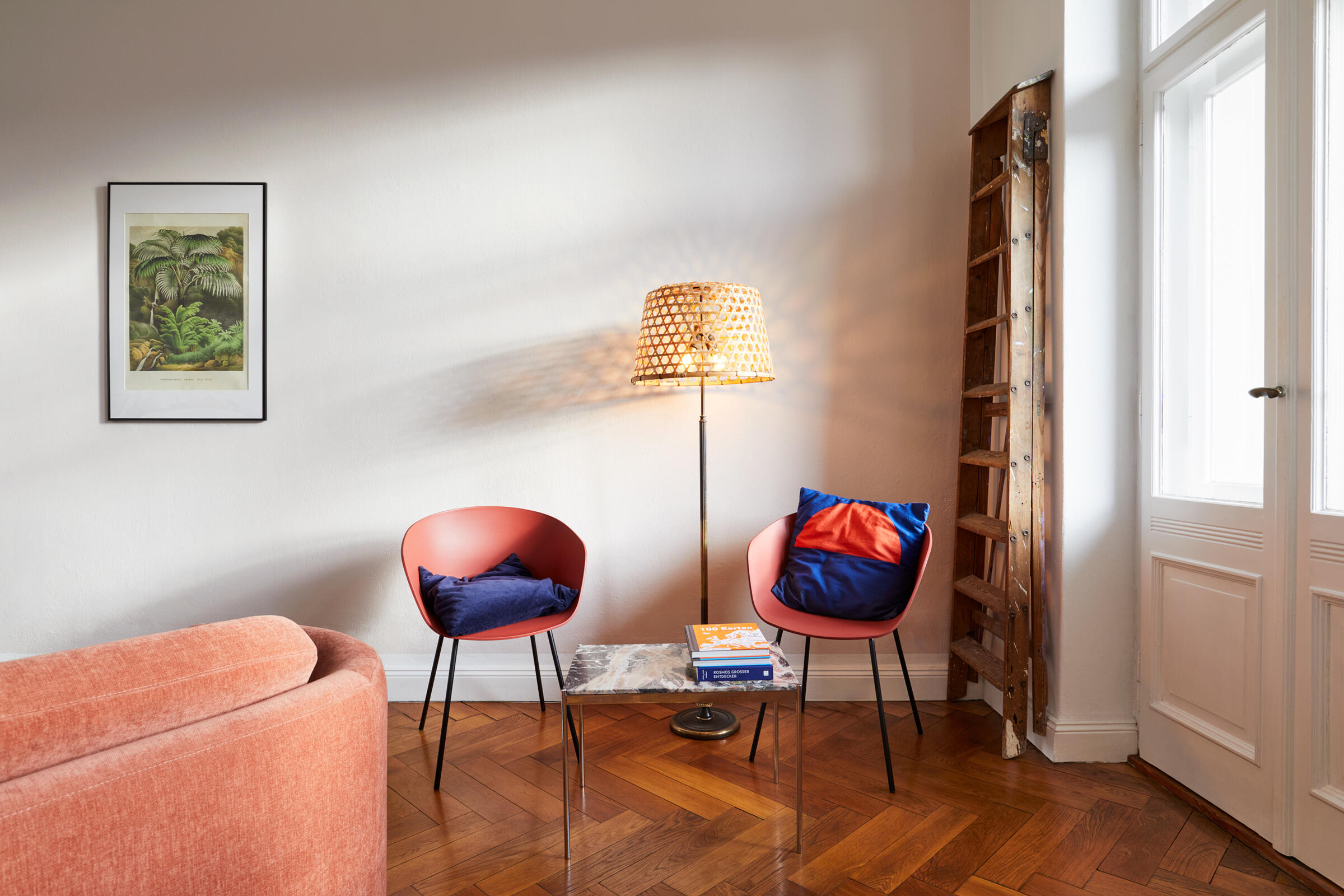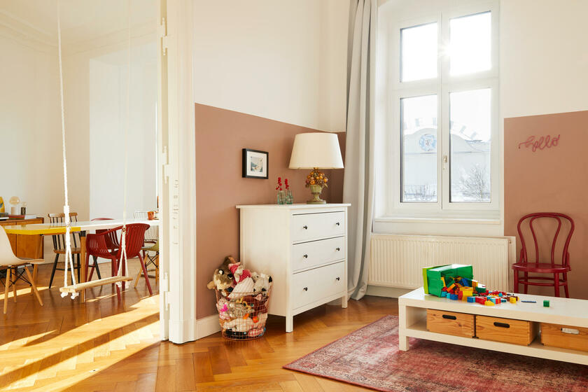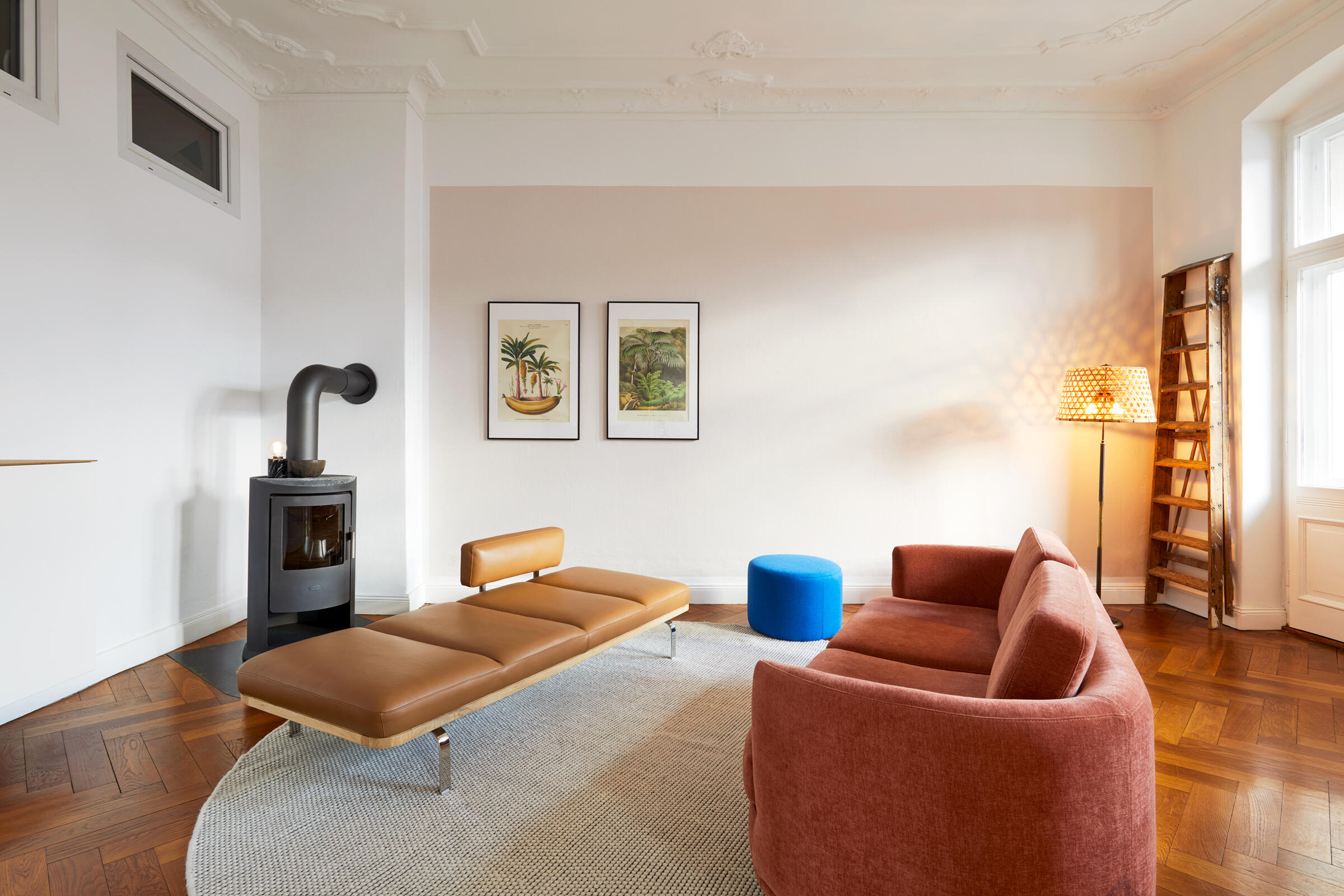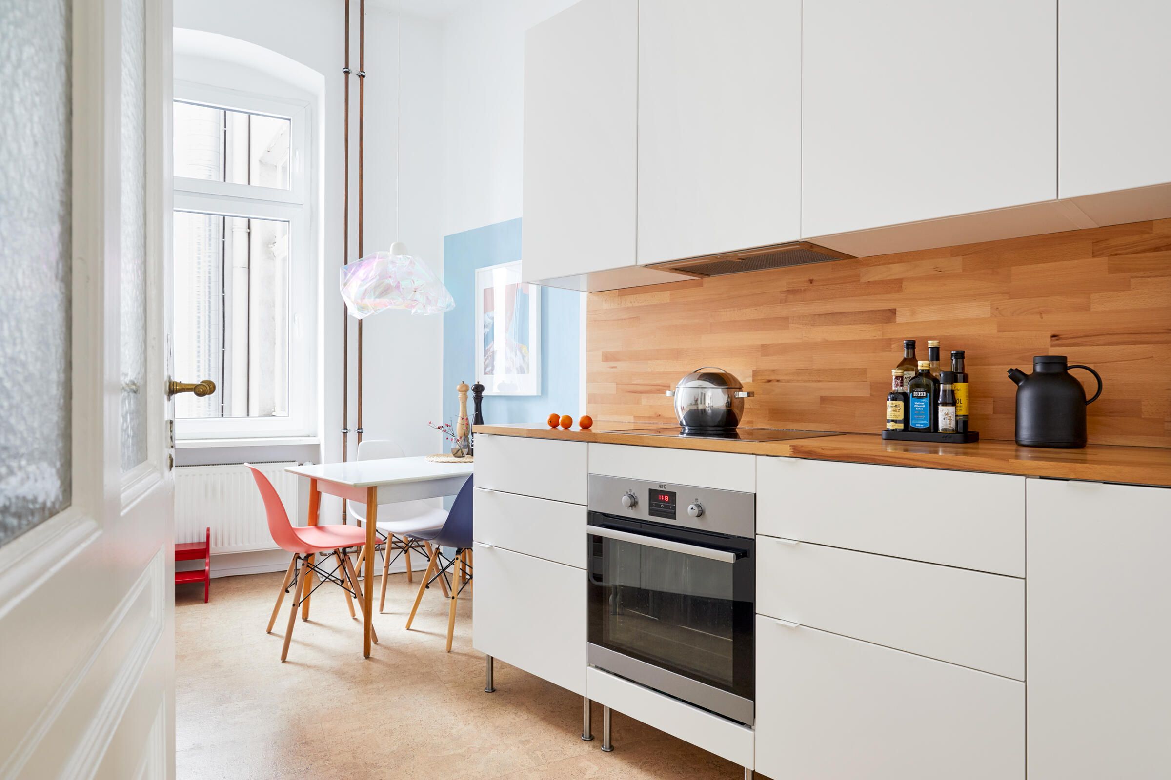 Unsere typische Berliner Altbauwohnung befindet sich in einem Wohn- und Geschäftshaus in Kreuzberg, gegenüber dem Volkspark Hasenheide. Die Wohnung ist gemütlich und geschmackvoll im Vintage-Stil eingerichtet. In die Räume fällt viel Sonnenlicht. Auf den Böden der Wohnräume ist Fischgrätparkett und in der Küche Linoleum verlegt. Das Badezimmer ist gefliest. An den Decken der Wohnräume finden sich teilweise Stuckverzierungen. Drei der Wohnräume befinden sich auf der Straßenseite der Wohnung und das große Schlafzimmer auf der Seite zum Innenhof. Parkplätze gibt es auf der Straße vor dem Haus.