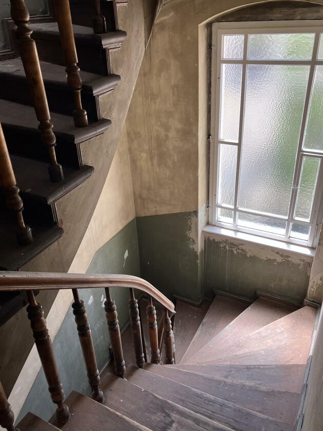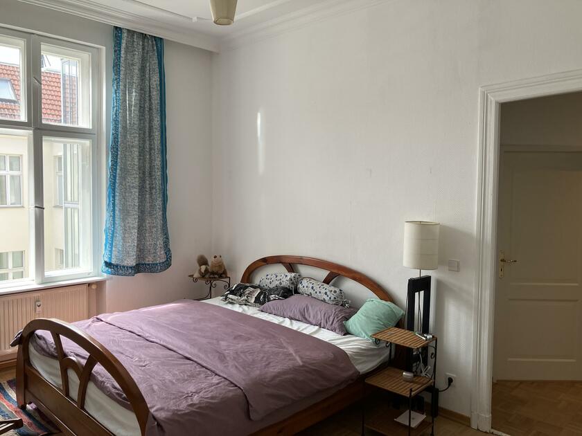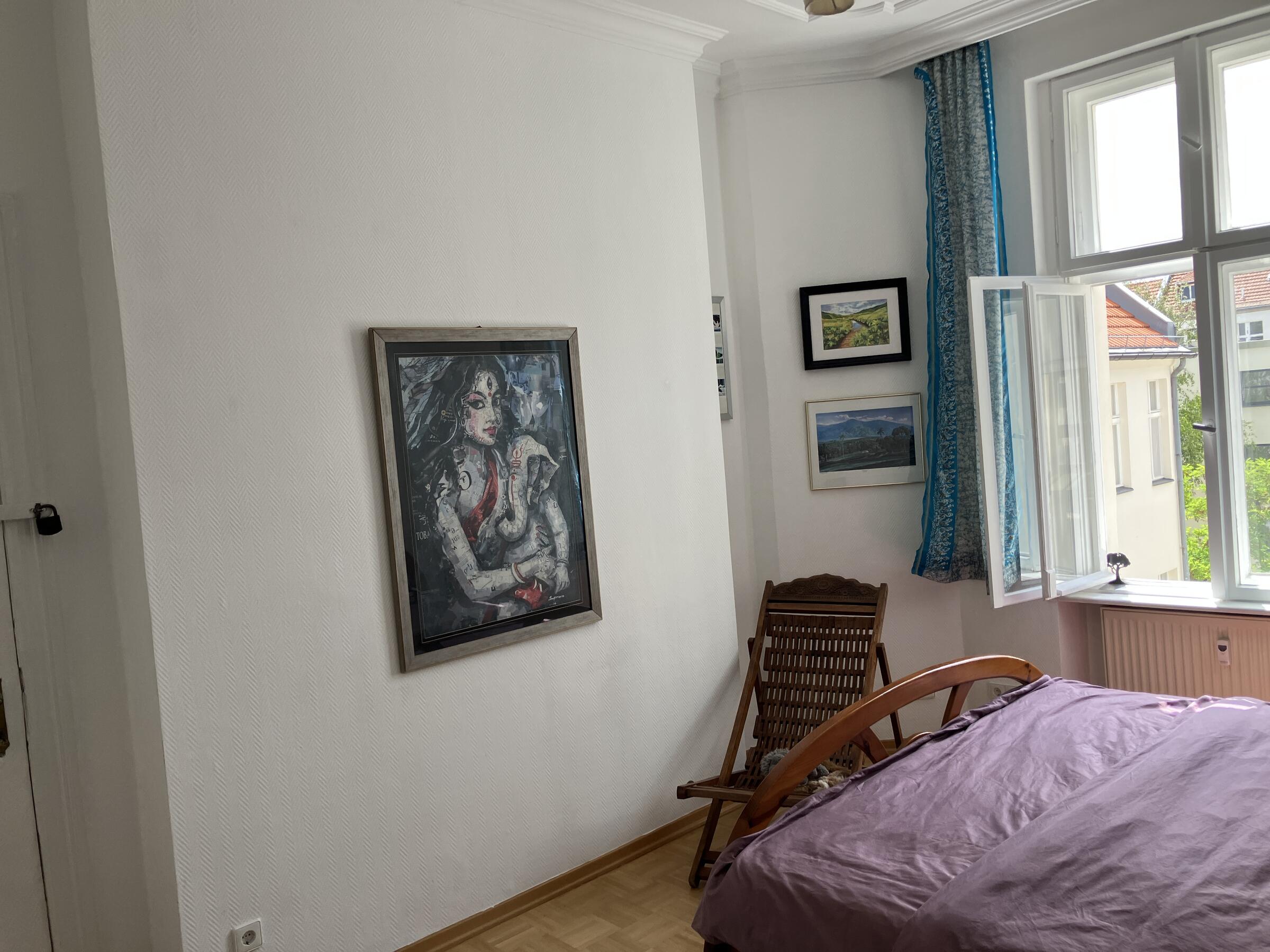 Die Altbauwohnung befindet sich im 4. Obergeschoss eines Wohnhauses, nahe dem Ku'damm. Die Wohnräume und Flure sind mit Parkett bzw. Dielen ausgelegt, die Küche und die Bäder sind gefliest. Das Wohnzimmer, der Salon, das Arbeitszimmer und der Balkon sind nach Westen, die Küche und das Gästezimmer sind nach Osten ausgerichtet. Das Schlafzimmer und die Badezimmer sind nach Süden ausgerichtet. Die Fenster können nicht verdunkelt werden. Es gibt lediglich leichte Vorhänge im Schlaf- und Gästezimmer. Das Arbeitszimmer ist mit einem dekorativen antiken Kachelofen ausgestattet. Der Hauptblickfang im Wohnzimmer ist eine original Ricksha aus Kalkutta, die nach Bedarf umgestellt werden kann. Die Kunst stammt von dienstlichen Aufenthalten in Indien, Haiti, Kanada und Europa. Öffentliche Parkplätze finden sich auf der Straße.