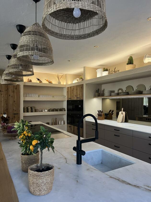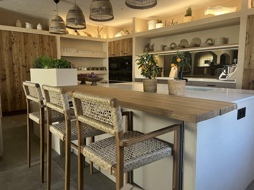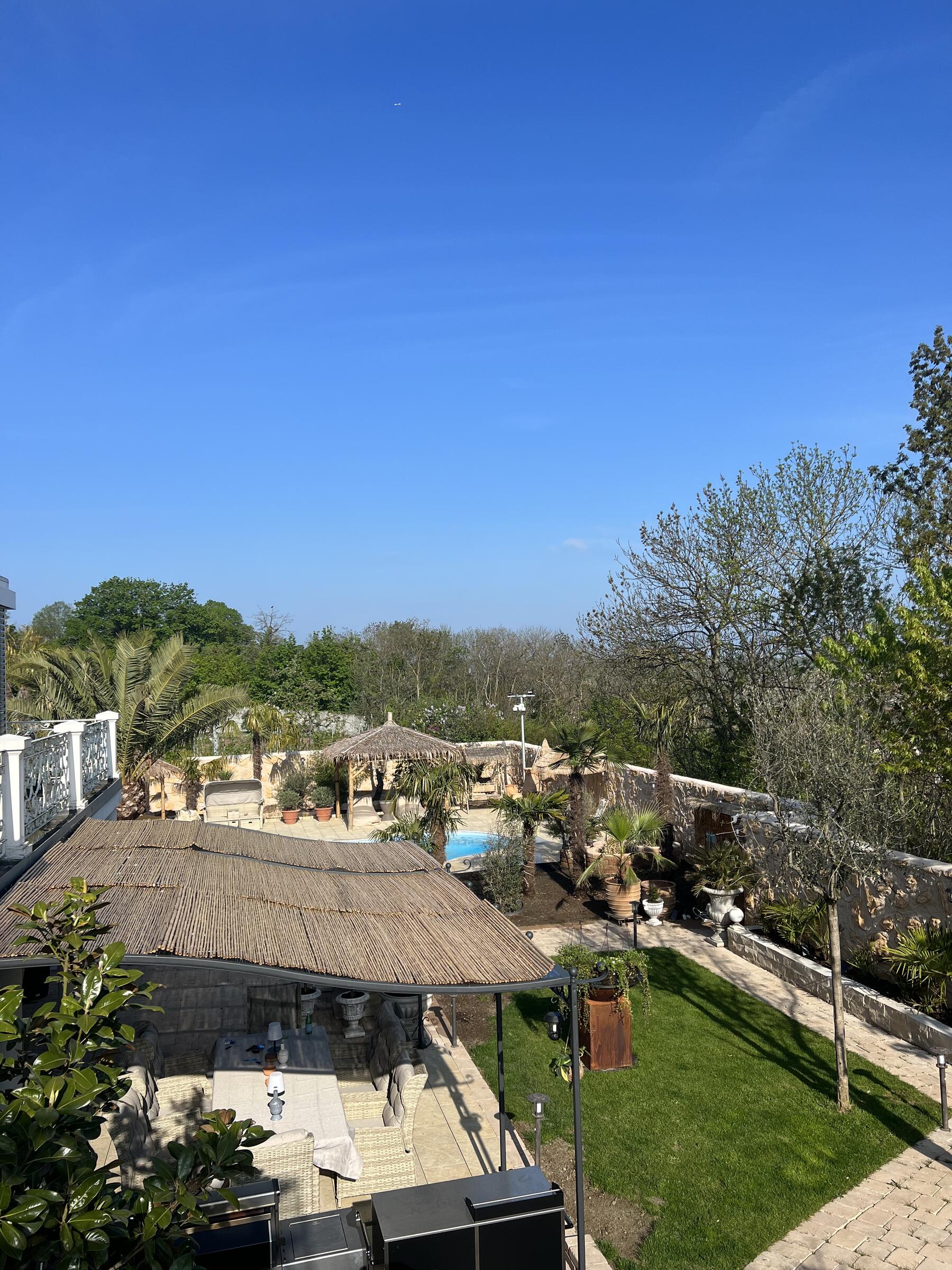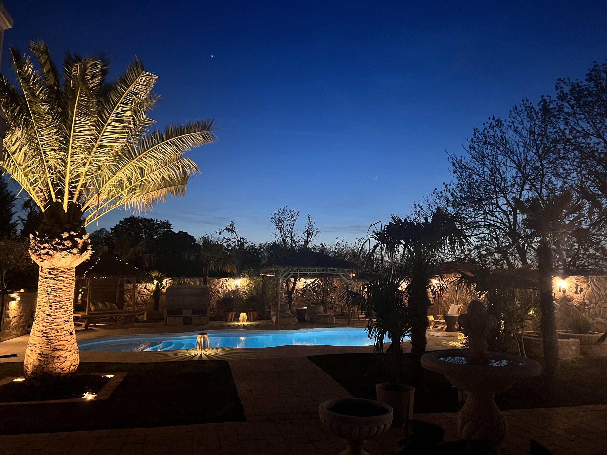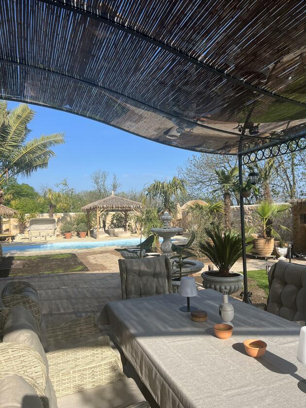 Unser Haus bietet viele große und offene Räume mit mediterranem Einrichtungsstil. Die Räume sind hell und lichtdurchflutet. Die Fenster der Räume sind abdunkelbar. Der großzügige Wohn- und Essbereich mit seiner modernen Küche hat direkten Zugang zum Garten. Der große und mediterran gestaltete Garten bietet einen Pool, Palmen und Olivenbäume. Die Terrasse wird von einer Pergola trocken gehalten. Der Garten ist durch seine Lage nach hinten für niemanden einsehbar und ermöglicht somit ungestörte Produktionen. Parkplätze gibt es im Außenbereich und auf der Straße vor unserem Grundstück.