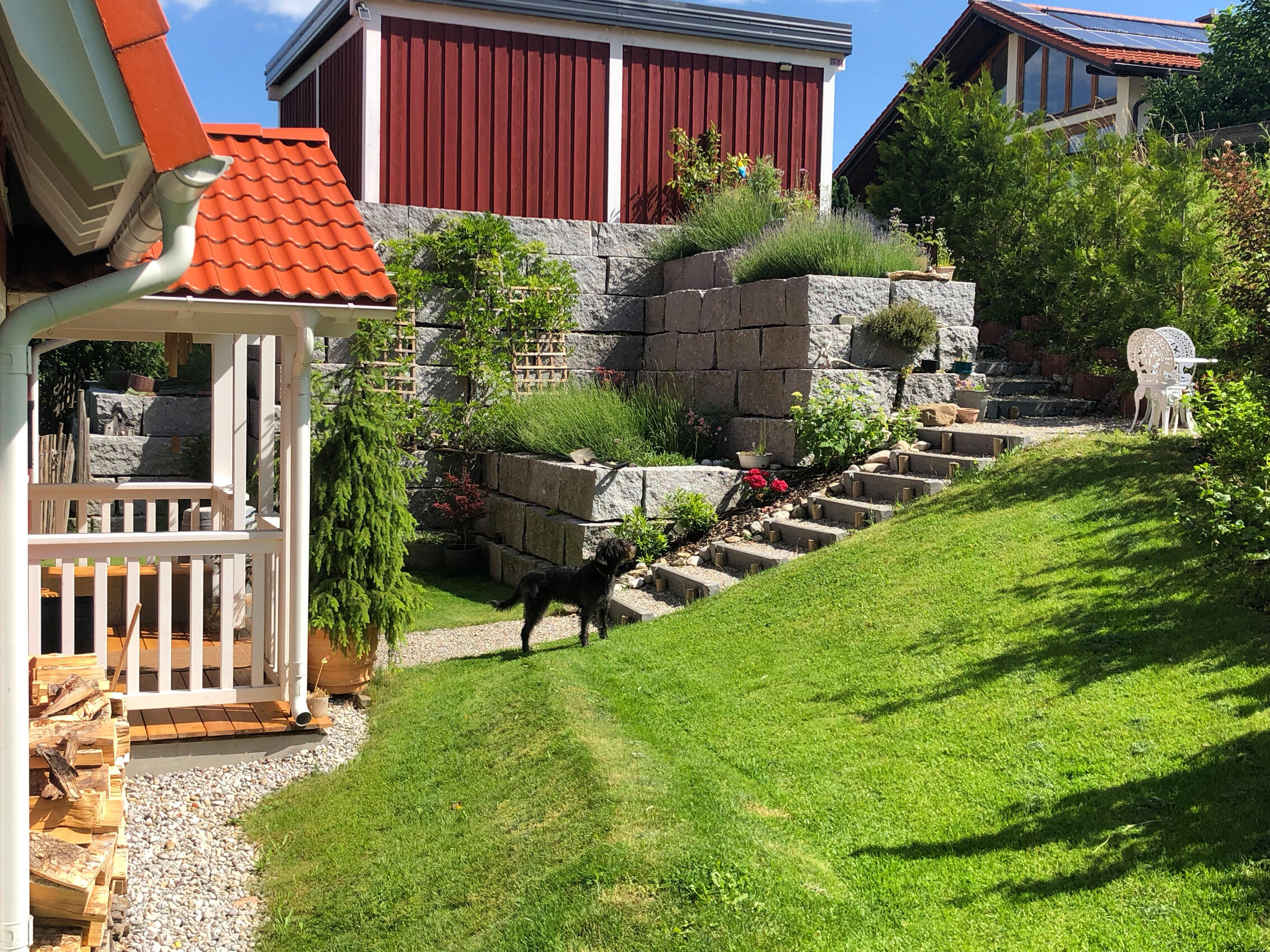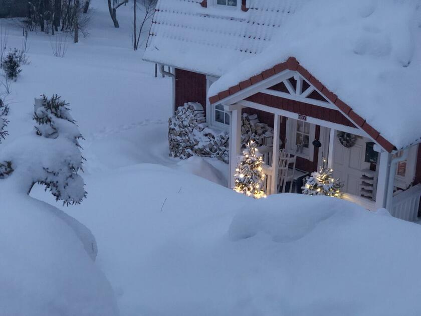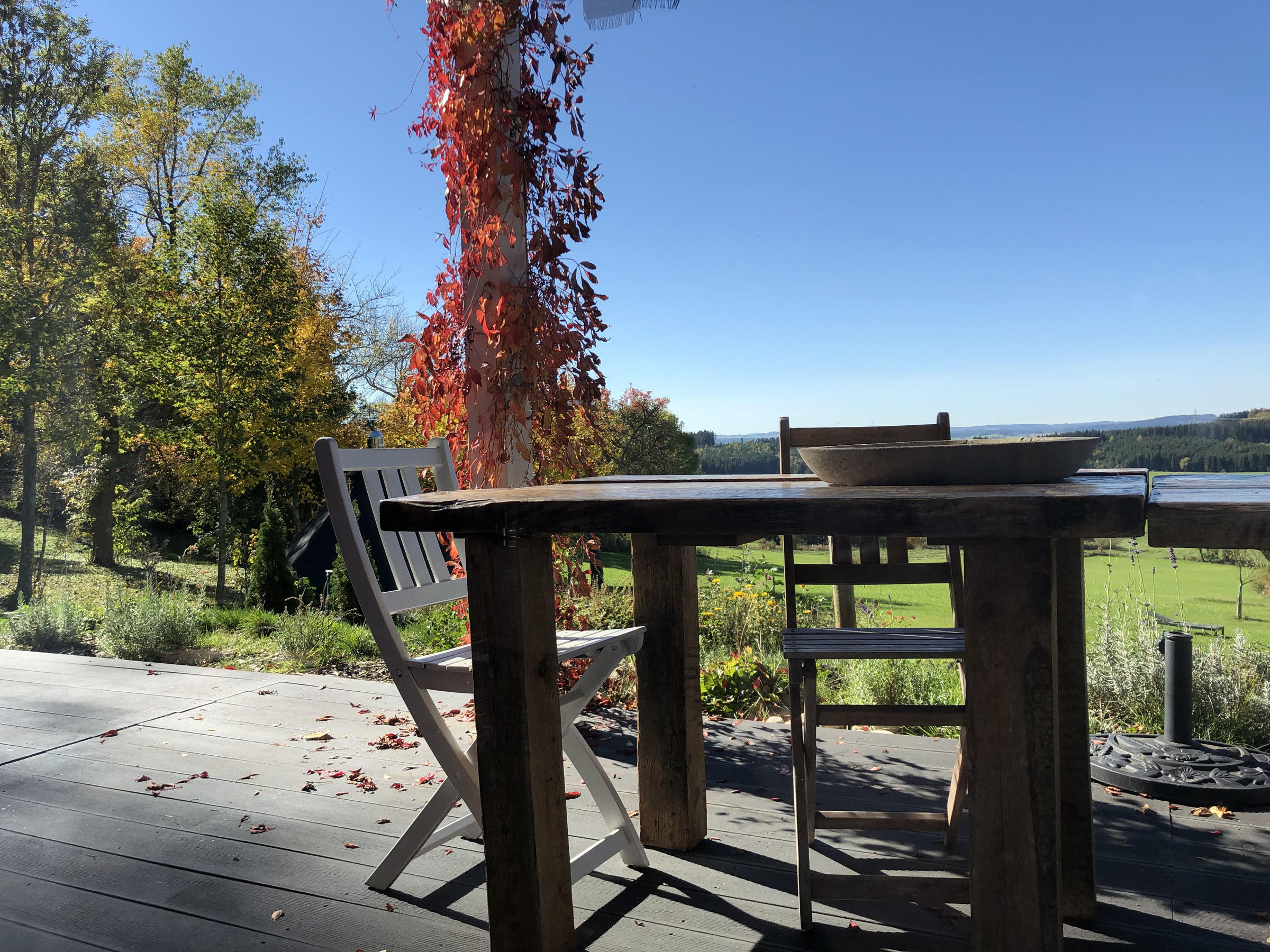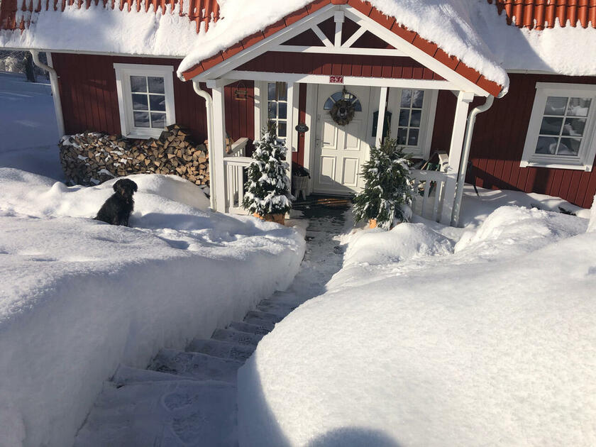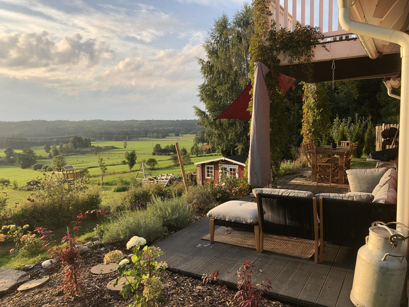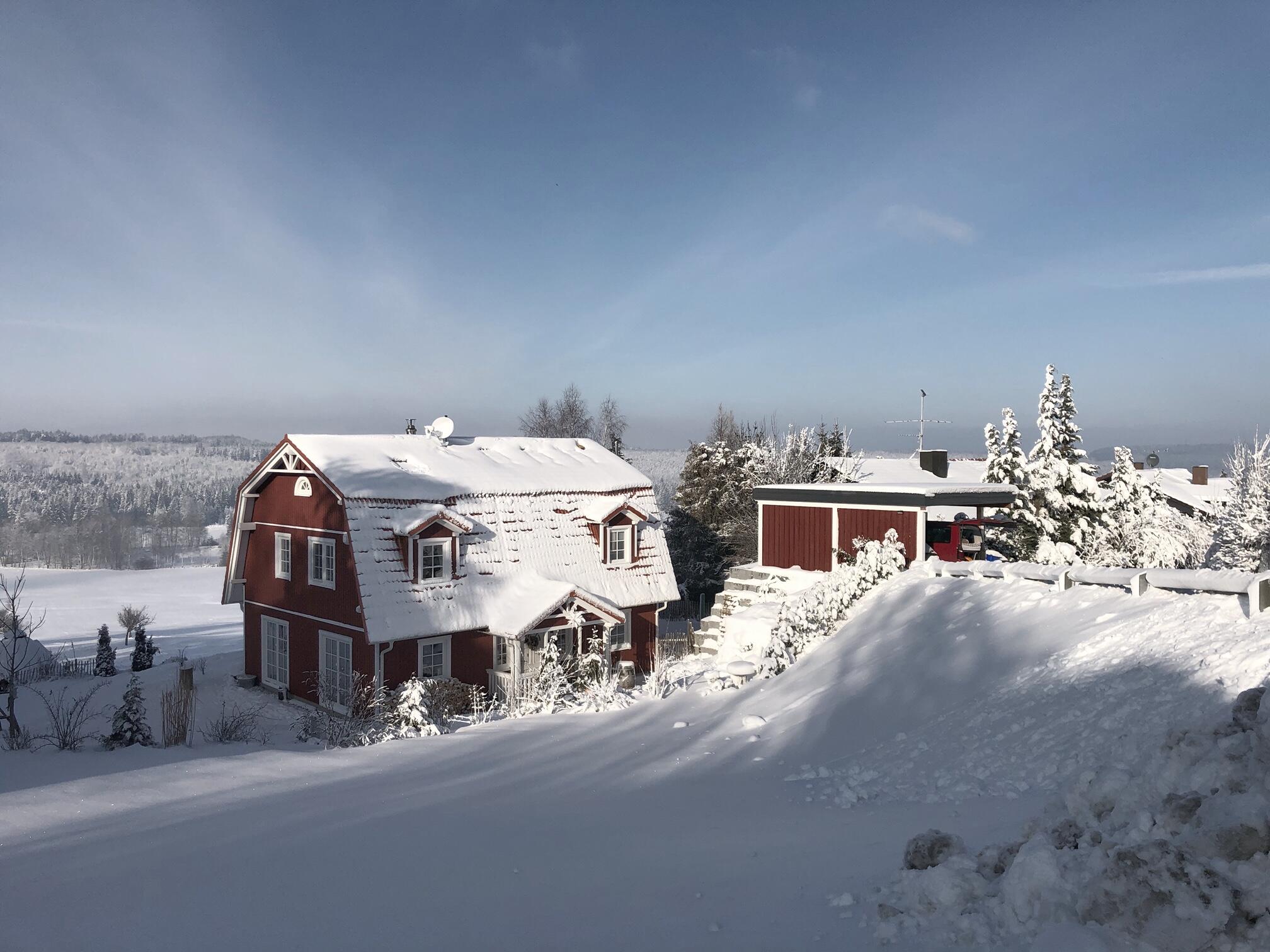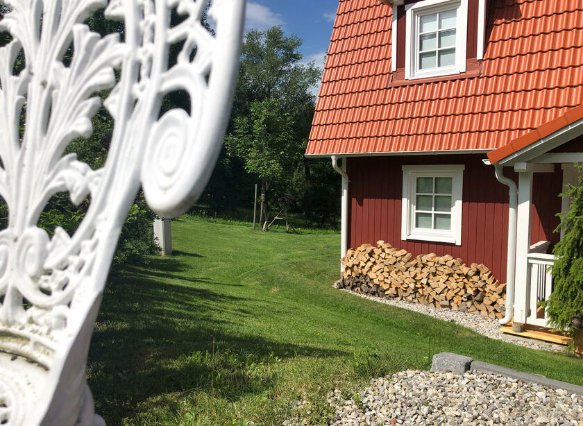 Das Landhaus befindet sich am Ortsrand, allerdings wird die Sicht zum anliegenden Nachbarhaus durch Bäume und Büsche verhindert. Dadurch wird ein Gefühl der Freiheit hervorgerufen und man könnte denken, dass man sich mitten in der schwedischen Natur befindet. Im Winter verwandelt sich das Grundstück zu einem mystischen Ort, der sowohl märchenhaft als auch düster erscheinen kann. Aufgrund der 800 Meter Höhe ist es auch relativ schneesicher. Je nach Jahreszeit und Stimmung bietet die Location alle Lichtsituationen, die man sich nur vorstellen kann.