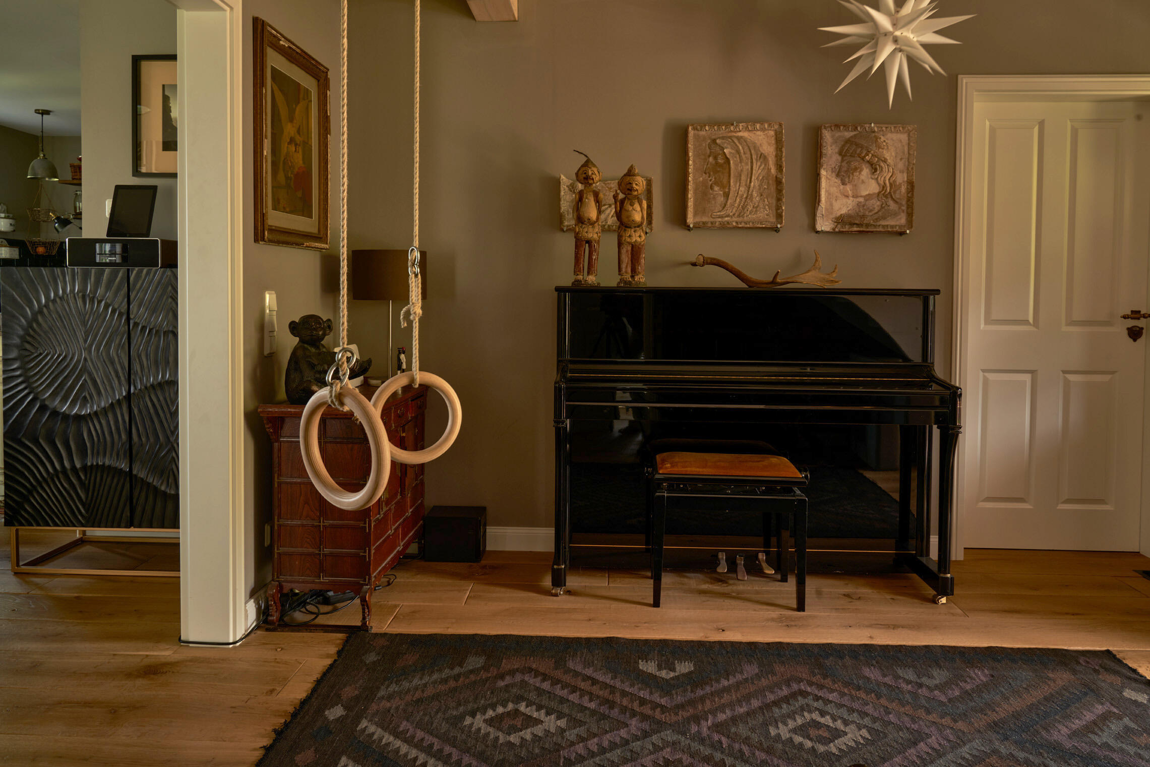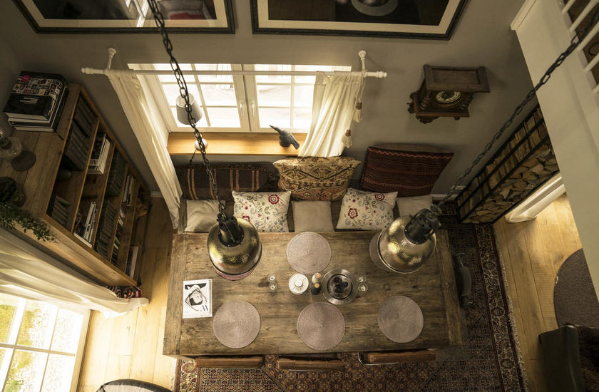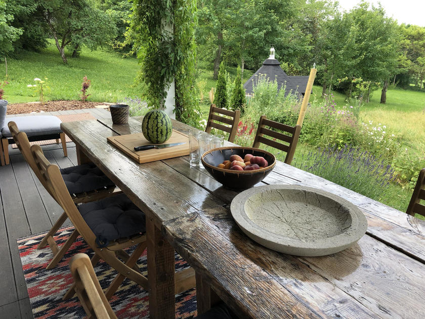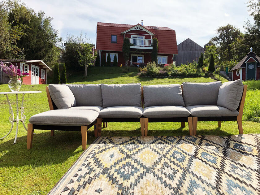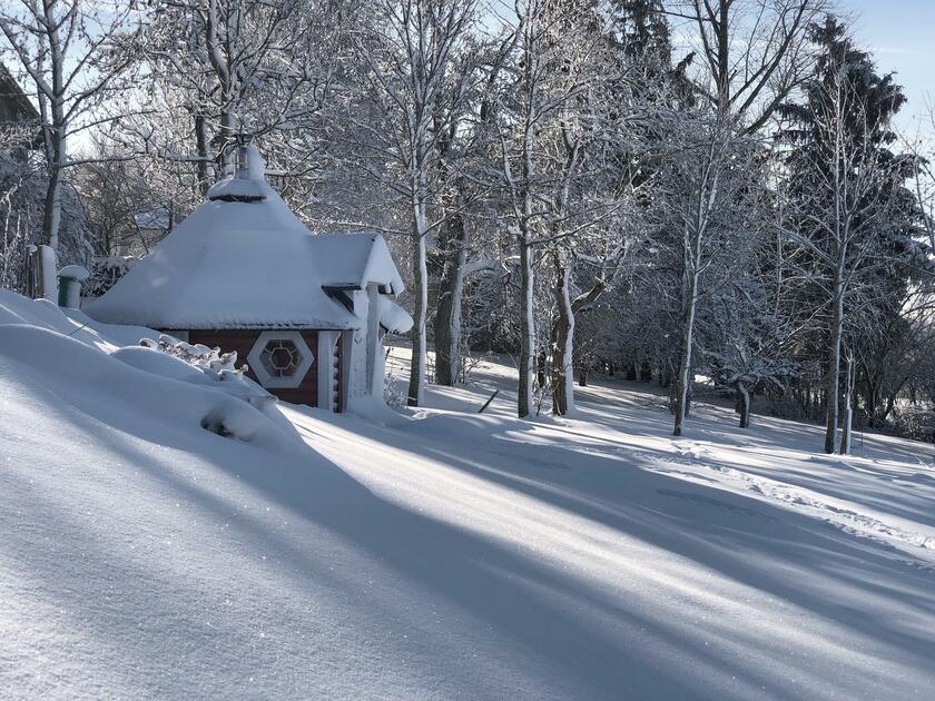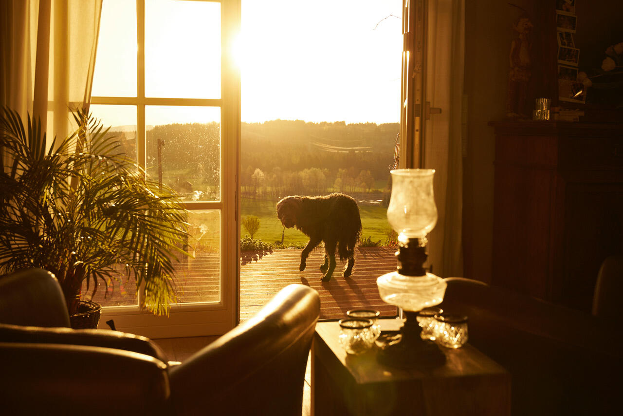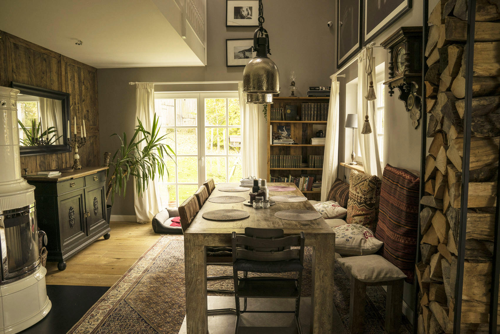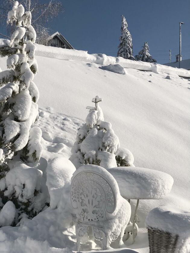 Das Landhaus befindet sich am Ortsrand, allerdings wird die Sicht zum anliegenden Nachbarhaus durch Bäume und Büsche verhindert. Dadurch wird ein Gefühl der Freiheit hervorgerufen und man könnte denken, dass man sich mitten in der schwedischen Natur befindet. Im Winter verwandelt sich das Grundstück zu einem mystischen Ort, der sowohl märchenhaft als auch düster erscheinen kann. Aufgrund der 800 Meter Höhe ist es auch relativ schneesicher. Je nach Jahreszeit und Stimmung bietet die Location alle Lichtsituationen, die man sich nur vorstellen kann.