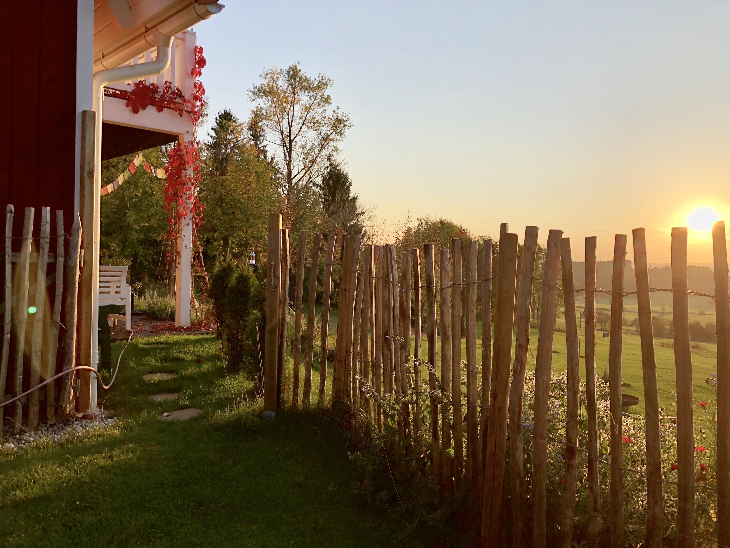 Das Schwedenhaus liegt im Ostallgäu in einmaliger Lage. Besonders die Weite des Gennachtals mit wunderschönen Blick auf Wiesen, Wäldern und Fischweiher geben ein Gefühl der absoluten Alleinlage. Aufgrund der Südwestausrichtung des Hauses bekommt man surreale und atemberaubende Wettererlebnisse, welche Lichtsituationen hervorrufen, die ihresgleichen suchen.