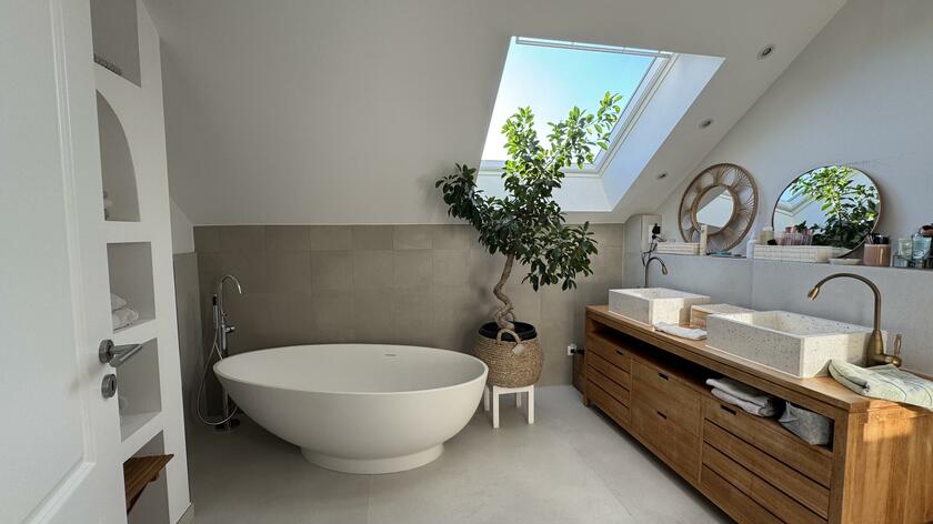 Unser exklusives Zuhause befindet sich in einer ruhigen und ländlichen Wohngegend. Das Haus bietet mediterranes Flair, modernes Interior und vielseitige Möglichkeiten für kreative Produktionen. Die Räume sind modern, hell und offen gestaltet. Der großzügige Wohn- und Essbereich bietet direkten Zugang zur offenen Designküche. Auf den Böden der Räume sind hochwertiges Laminat und Fliesen verlegt. Durch die teilweise bodentiefen Fenster fällt viel Tageslicht in die Wohnräume. Die Fenster können mit Jalousien und Rollos abgedunkelt werden. Die Räume dürfen nach Absprache umgestaltet werden. Parkplätze befinden sich direkt am Haus und in unmittelbarer Nähe.