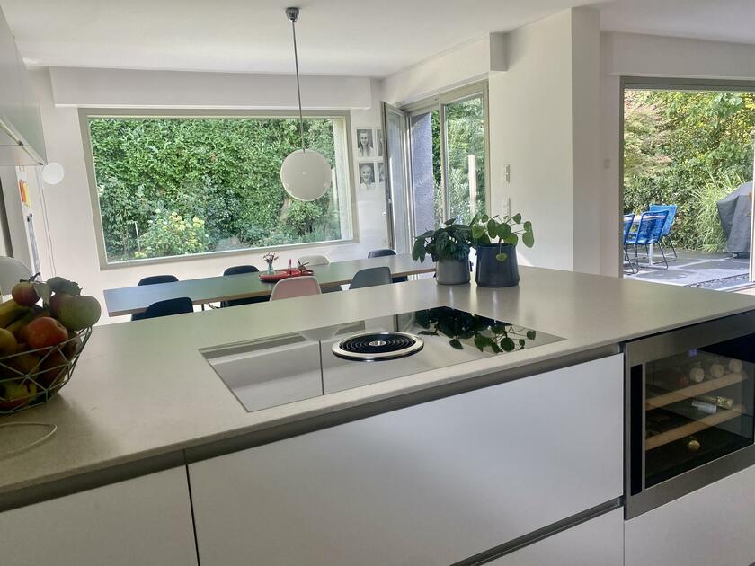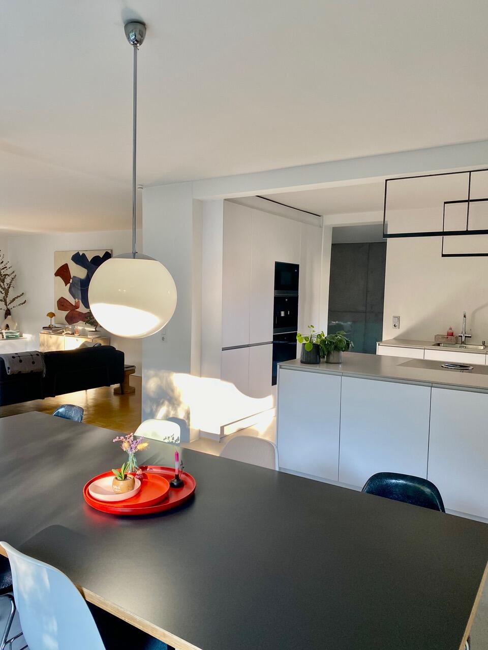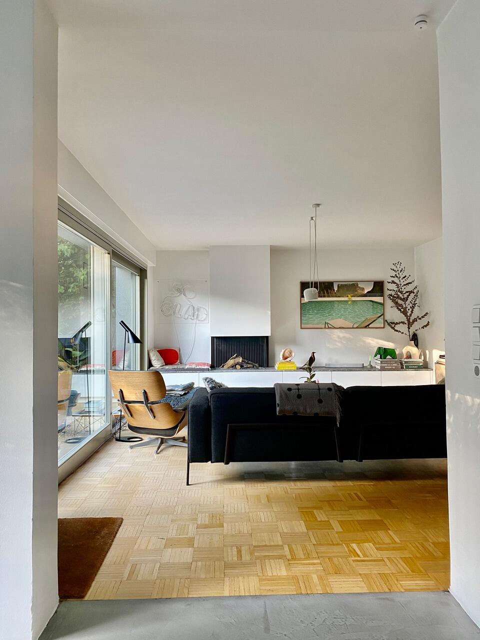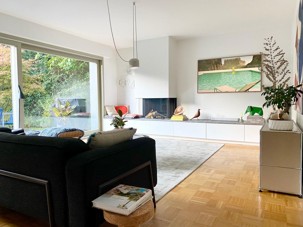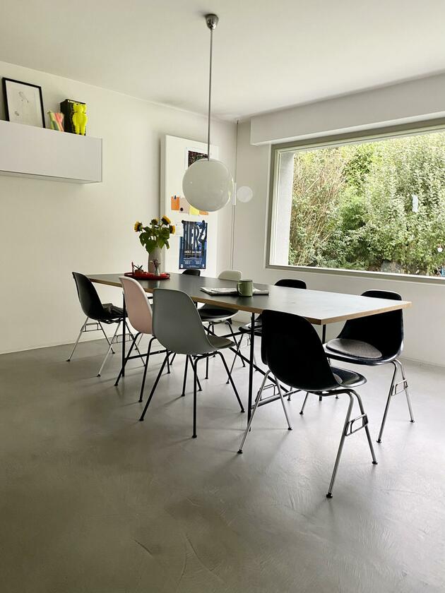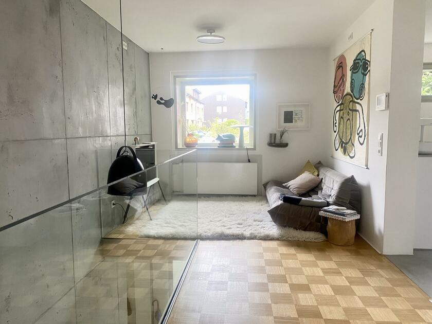 Unser Bungalow, Baujahr 1969, befindet sich in Bochum-Eppendorf und wurde im Laufe der letzten Jahre kernsaniert. Das Haus ist in den Hang gebaut, so dass man zwar zur Hauptebene, zu welcher Wohn- und Essbereich mit Küche, ein zweiter kleiner Loungebereich, zwei Jugendzimmer, ein Arbeitszimmer und ein Badezimmer gehören, eine Treppe hinaufgeht, zum Garten wiederum ist es dann ebenerdig. Auf der Ebene des Eingangs befinden sich noch ein Schlafzimmer mit Ensuite Bad, ein Gästezimmer und ein Gäste WC. Auch Keller und Garage sind von hier aus begehbar. Das Grundstück ist ca. 700 m² groß. Das Objekt liegt im Herzen des Ruhrgebiets in einer kleinen Stichstraße, abgehend von einer verkehrsberuhigten Wohnstraße. Eine Garage ist im Haus. Das Haus ist modern eingerichtet mit einigen zeitgenössischen Kunstwerken. Es gibt eine große Terrasse, die vom Esszimmer und vom Wohnzimmer aus begehbar ist. Der Garten ist so gut wie nicht einsehbar. Derzeit wird das Haus von einer vierköpfigen Familie bewohnt, mit Teenies im Alter 15 und 19 Jahren.