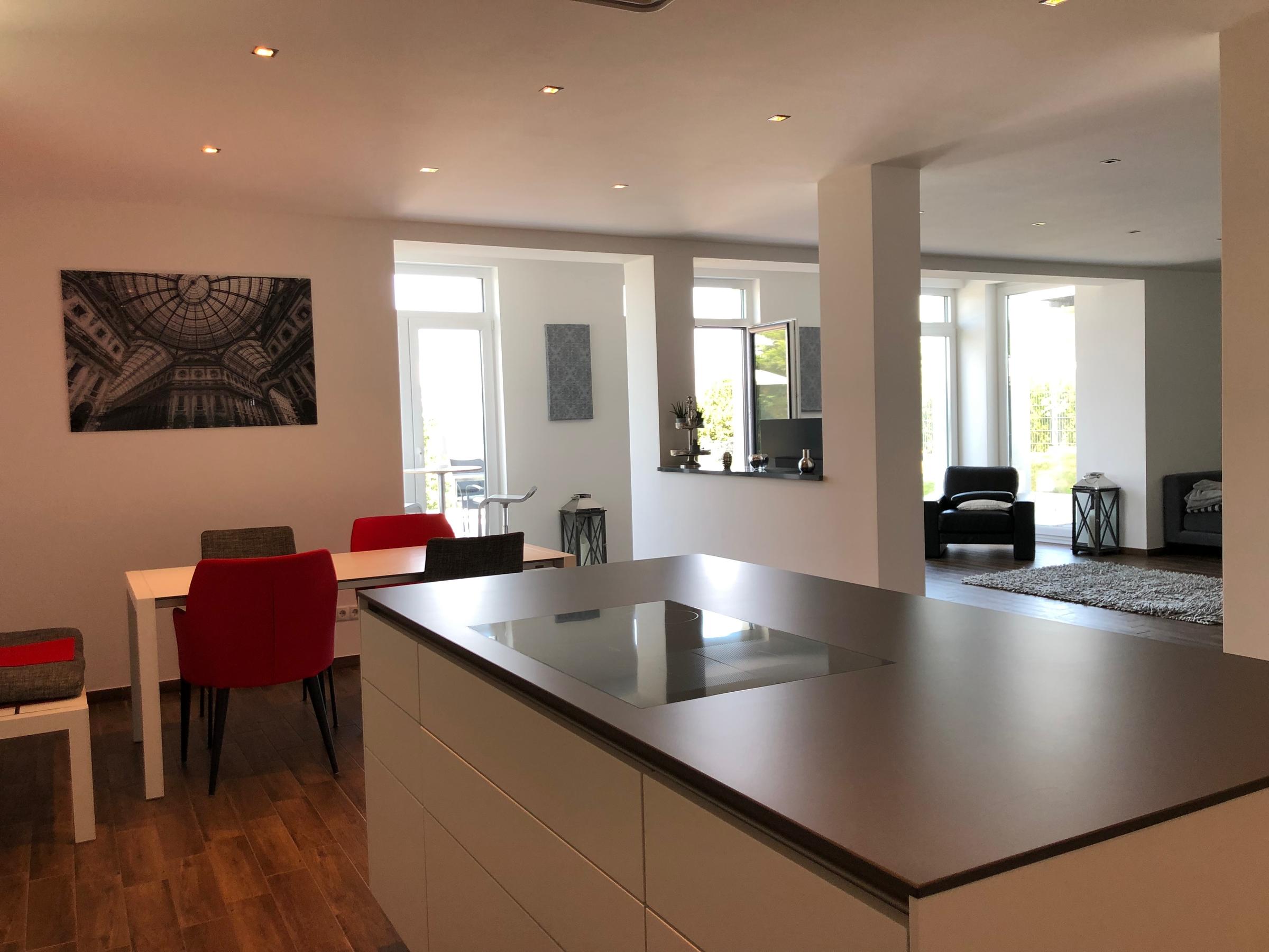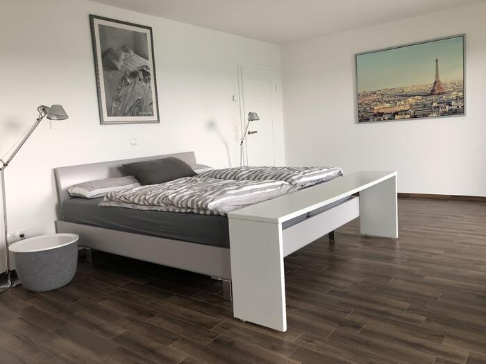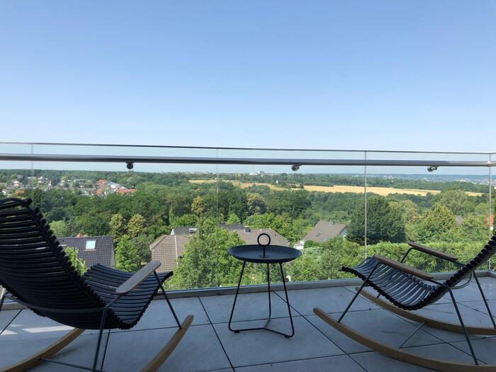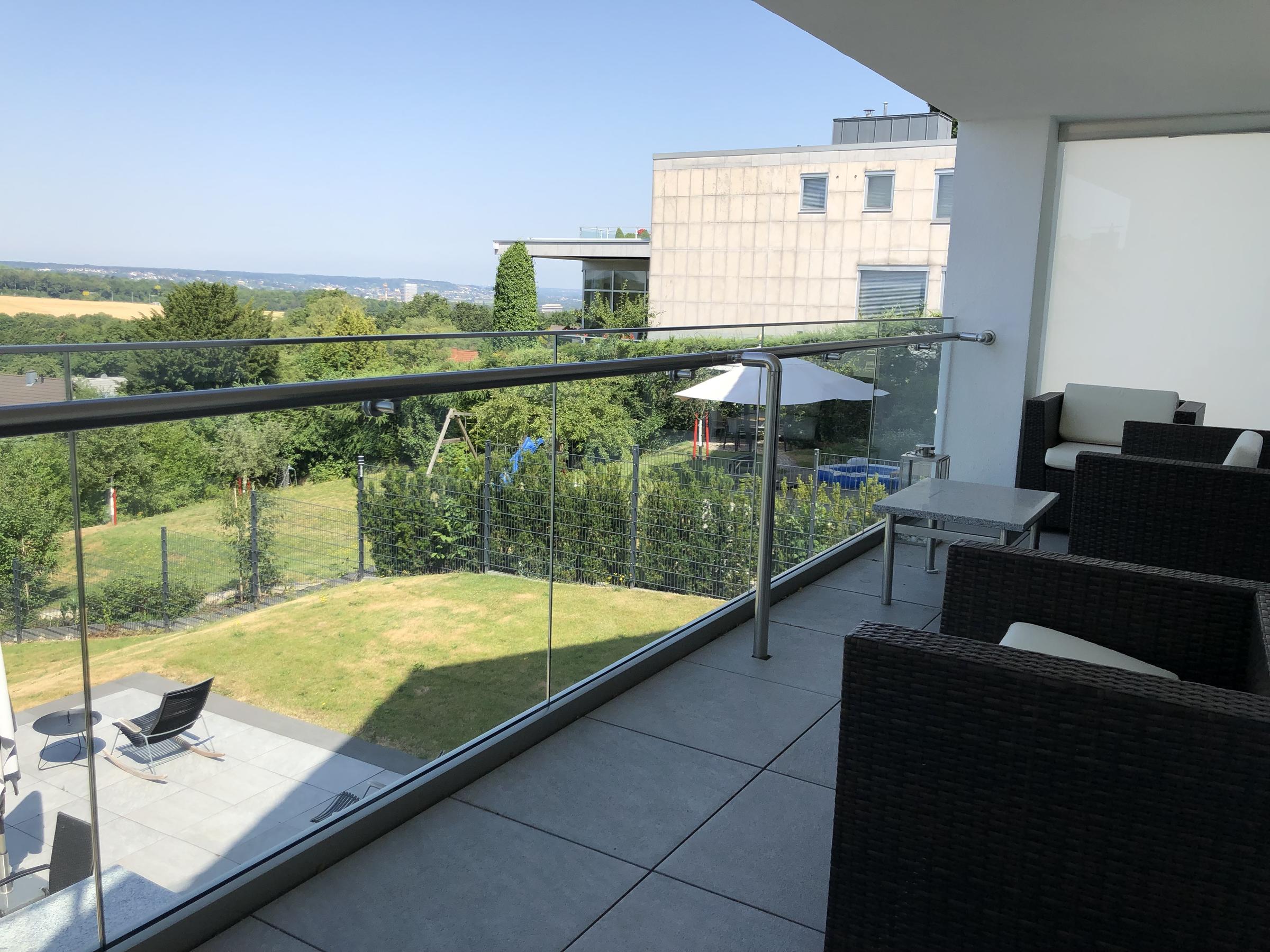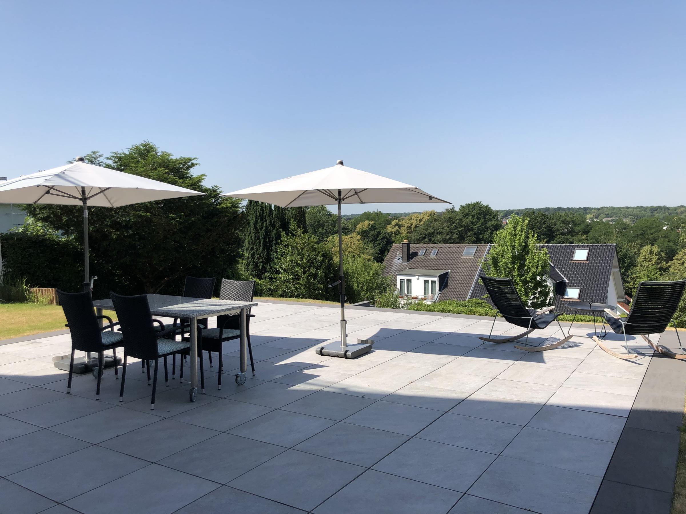 Unser Haus befindet sich auf einem von der Straße abgelegenen Grundstück mit unverbaubarem Blick in Richtung Köln. Das Haus wurde im Jahr 2017 als kompletter Neubau fertiggestellt und verfügt über eine Fläche von ca. 400 m² inklusive Nebenflächen und Keller. Es ist in zwei Wohneinheiten aufgeteilt, die über ein Treppenhaus miteinander verbunden sind. Die reine Wohnfläche beträgt in der unteren Wohnung mit Gartenzugang ca. 200 m² und in der oberen Wohnung ca. 150 m². Das gesamte Haus ist hochwertig möbliert. Parkplätze und Stellflächen befinden sich vor dem Haus, auf der vorbeiführenden Straße.