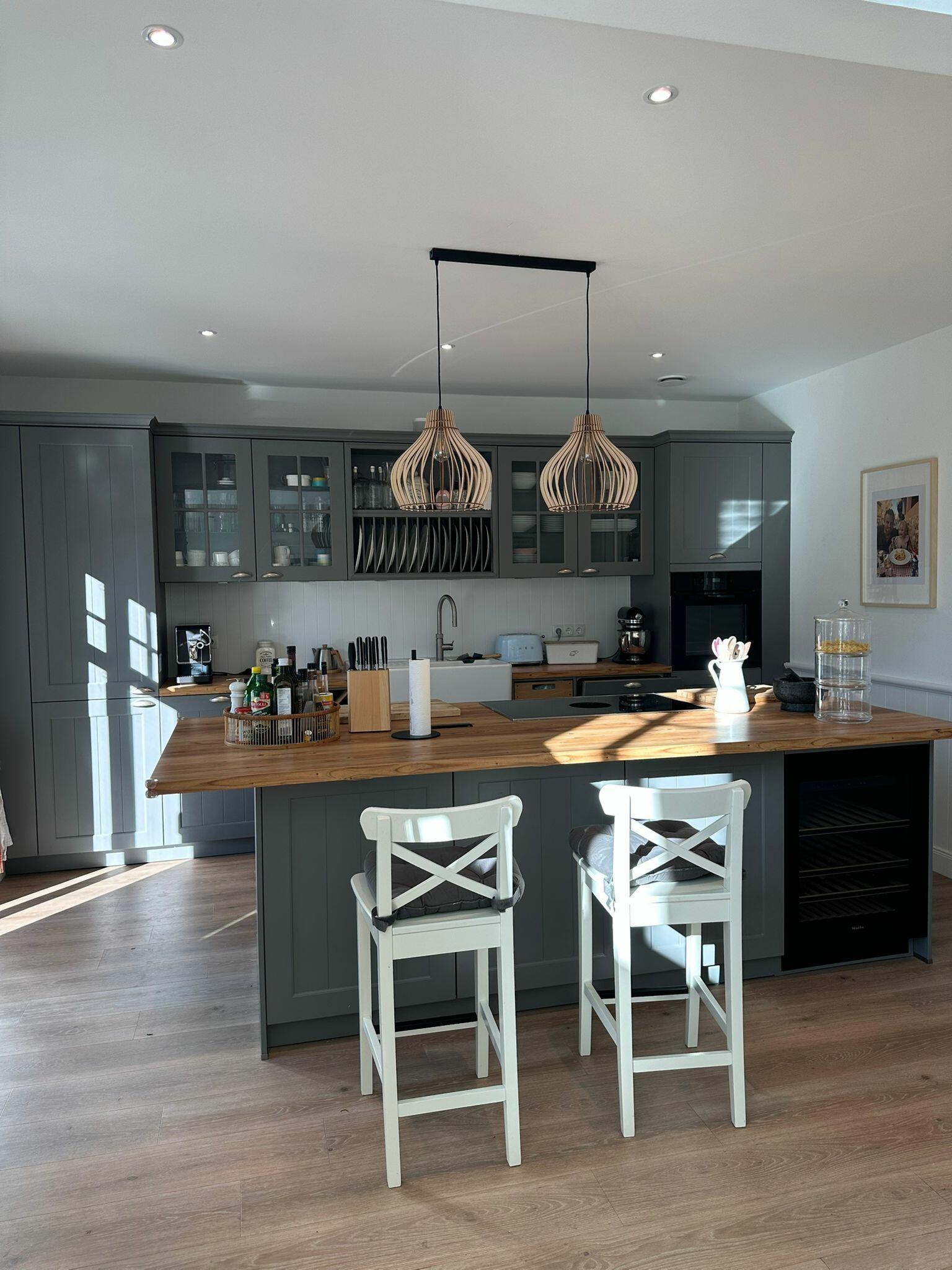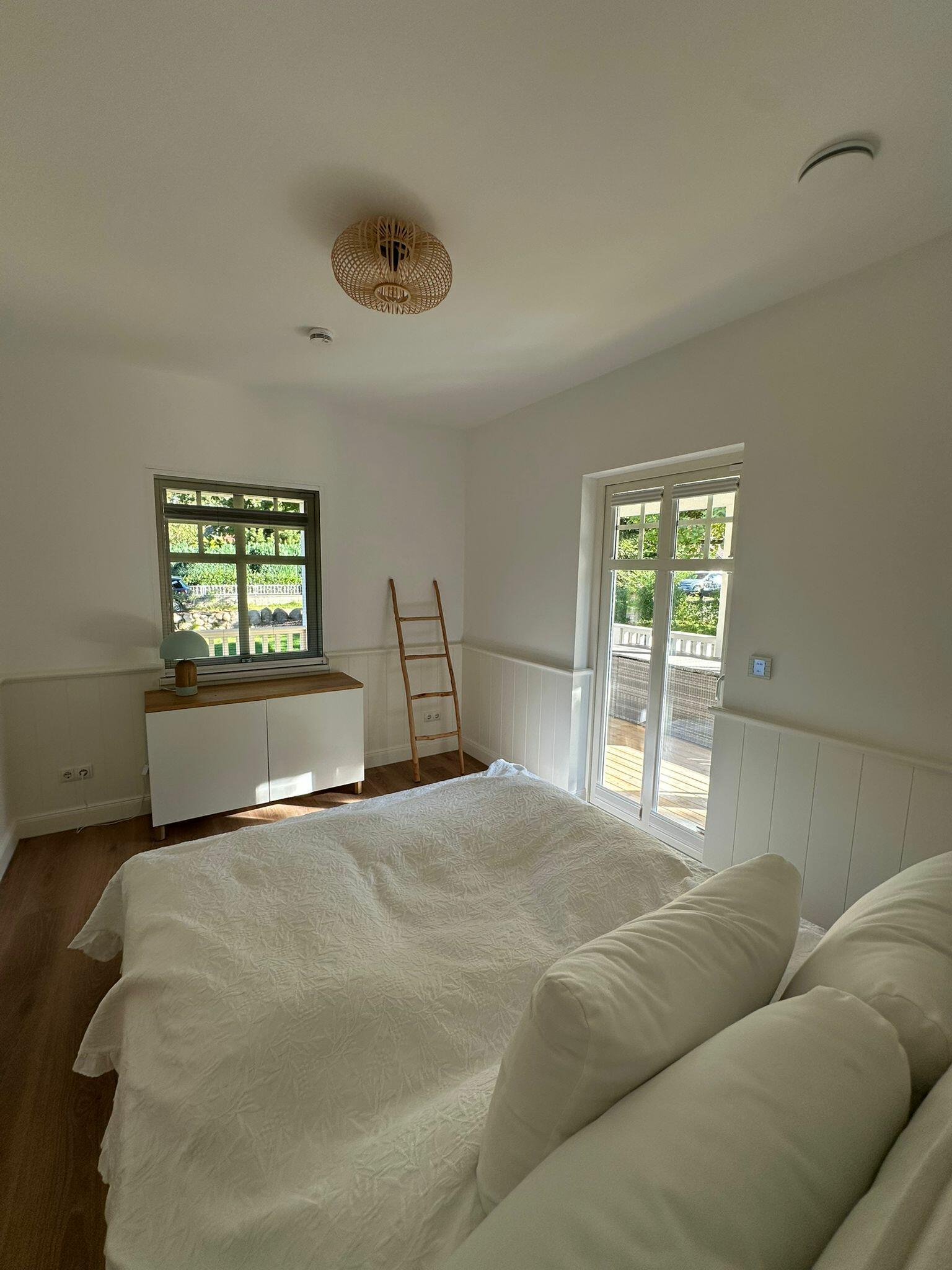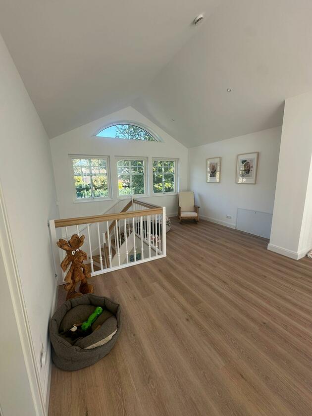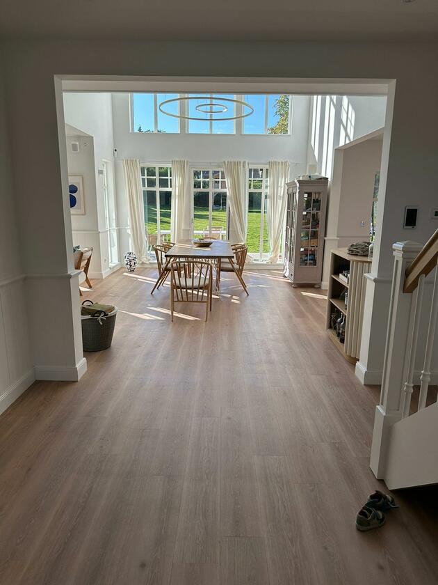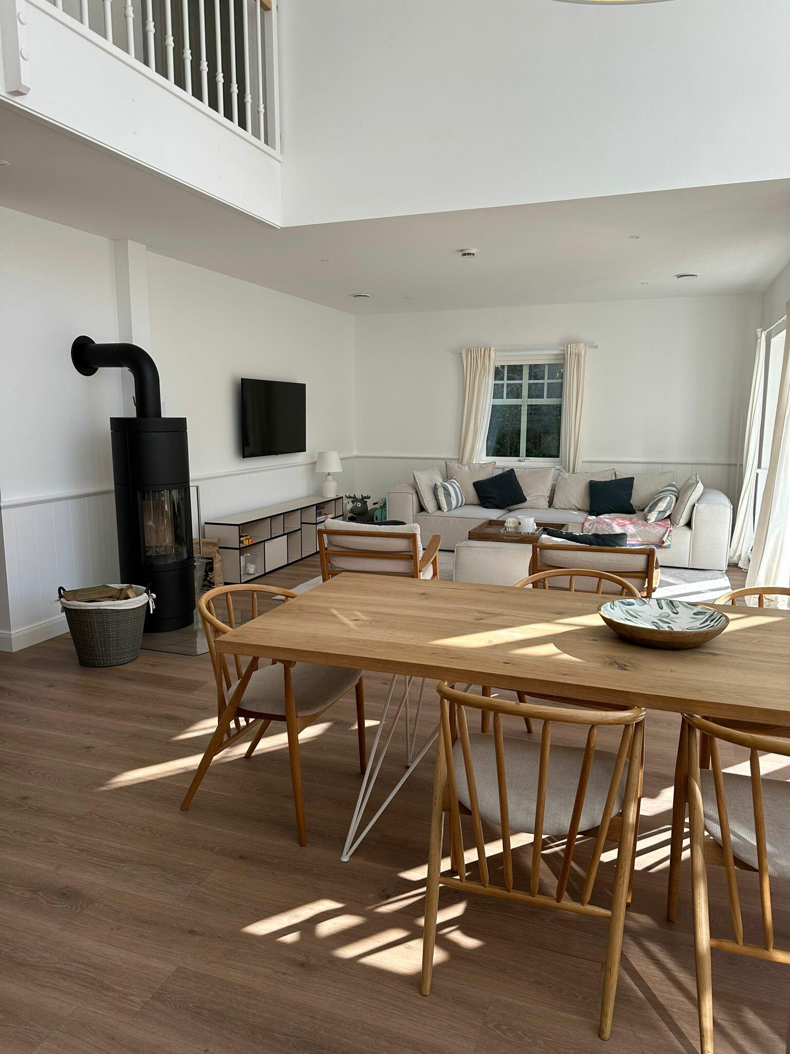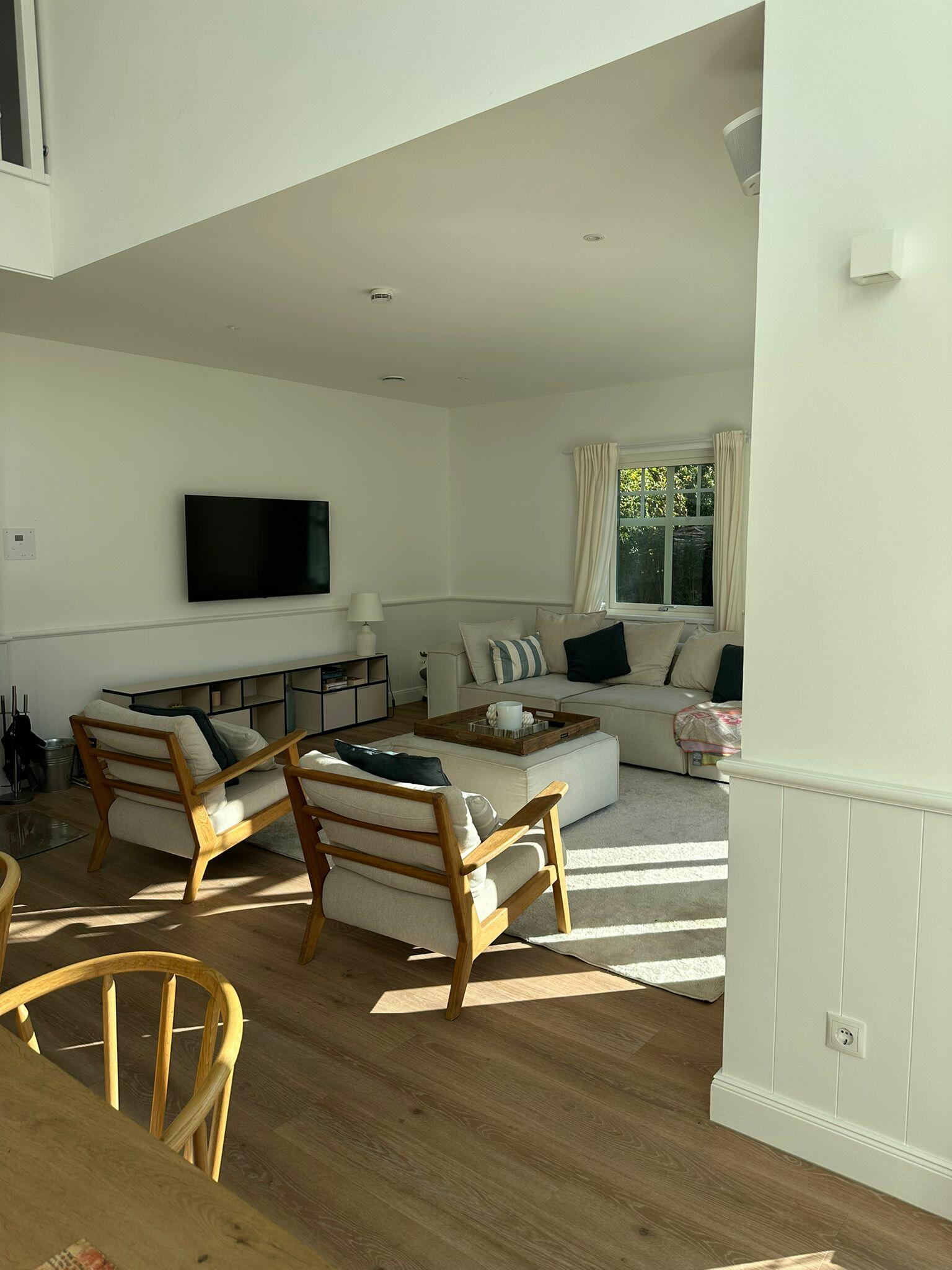 Unser charmantes Landhaus im skandinavischen Stil verbindet nordisches Design mit wohnlicher Eleganz und einer natürlichen, hellen Atmosphäre. Die hellgraue Holzfassade, die großen Sprossenfenster und die umlaufende Veranda verleihen dem Haus seinen unverwechselbaren Charakter. Der lichtdurchflutete Wohn- und Essbereich öffnet sich zum weitläufigen Garten mit Terrasse und gepflegter Rasenfläche. In einer ruhigen Wohngegend gelegen, mit Parkplätzen direkt vor dem Grundstück und guten Zufahrtsmöglichkeiten bietet unser Haus ideale Voraussetzungen für Produktionen.