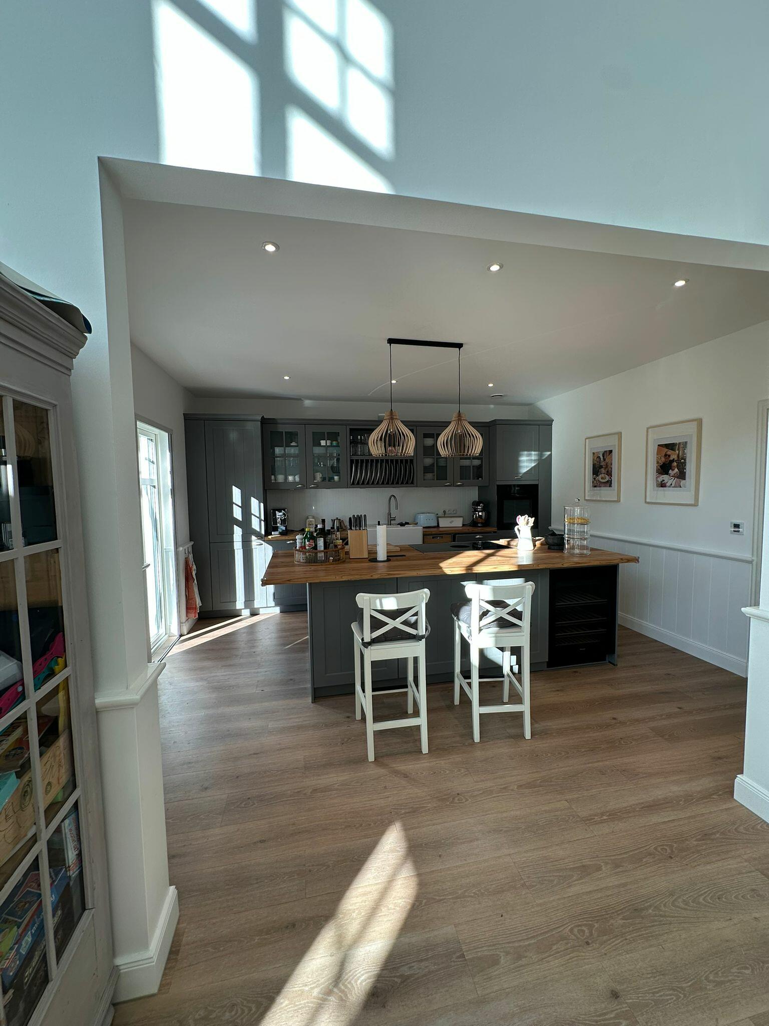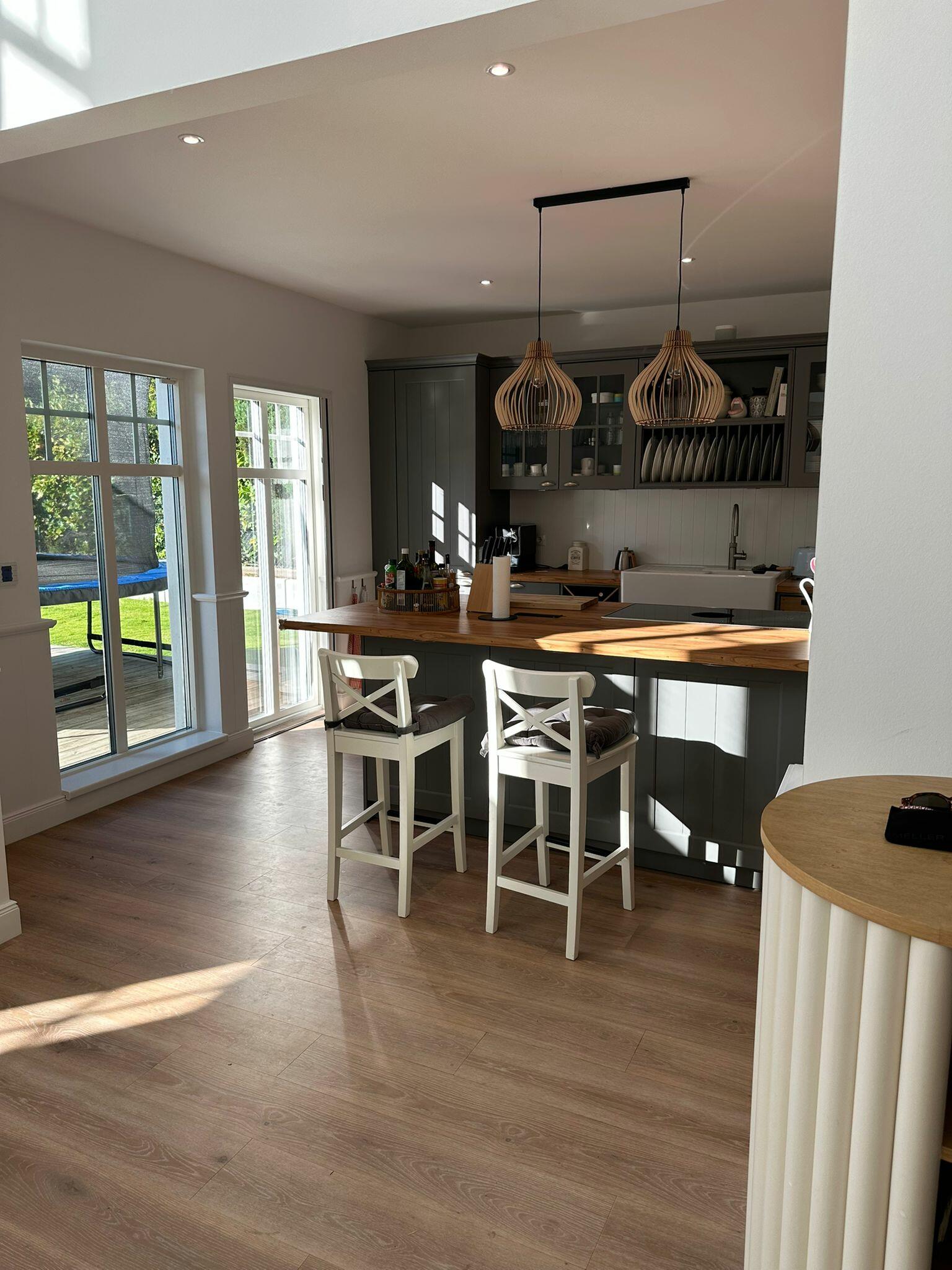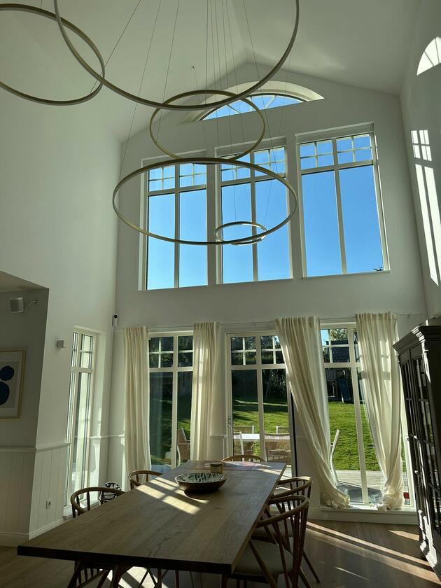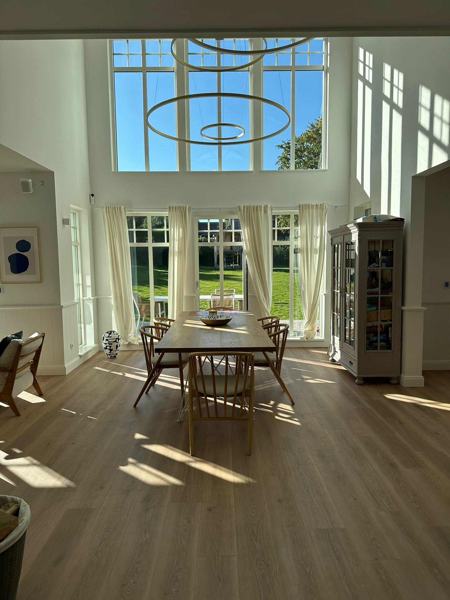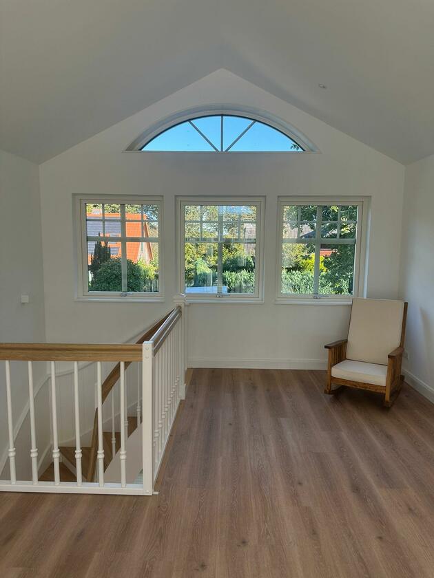Unser charmantes Landhaus im skandinavischen Stil verbindet nordisches Design mit wohnlicher Eleganz und einer natürlichen, hellen Atmosphäre. Die hellgraue Holzfassade, die großen Sprossenfenster und die umlaufende Veranda verleihen dem Haus seinen unverwechselbaren Charakter. Der lichtdurchflutete Wohn- und Essbereich öffnet sich zum weitläufigen Garten mit Terrasse und gepflegter Rasenfläche. In einer ruhigen Wohngegend gelegen, mit Parkplätzen direkt vor dem Grundstück und guten Zufahrtsmöglichkeiten bietet unser Haus ideale Voraussetzungen für Produktionen.