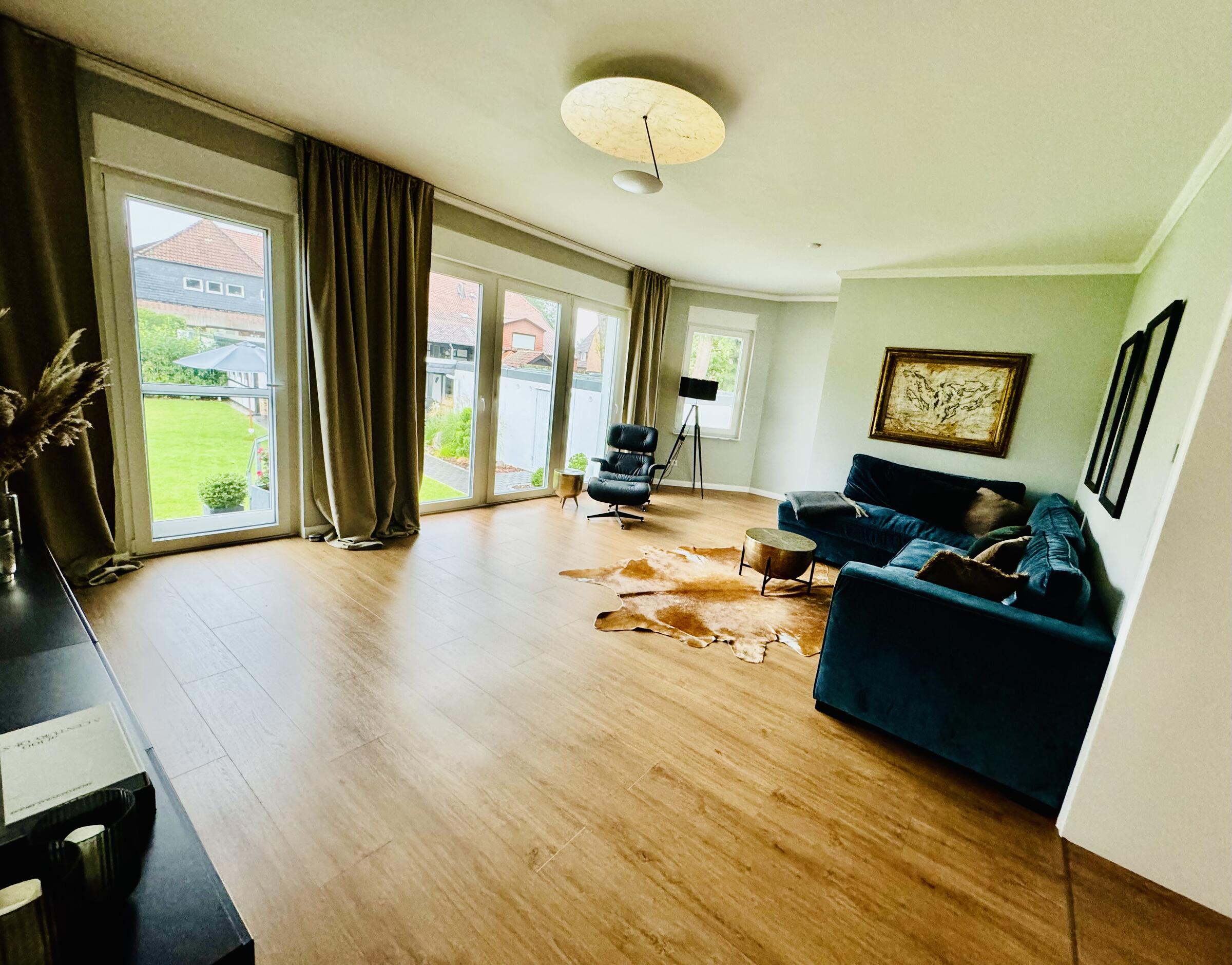 Wir vermieten unser 400 m² großes freistehendes Einfamilienhaus, welches sich auf einem 1.500 m² großen Grundstück in Burgwedel (Region Hannover - Autobahnnähe) befindet, für Film- und Fotoproduktionen. Hierzu bieten wir 28 Räume an, wobei der Wohn-Essbereich bereits 120 m² umfasst. Diese Großzügigkeit schafft hervorragende Rahmenbedingungen für Produktionen jeglicher Art. Das Haus wurde im Jahr 2020 kernsaniert. Es ist modern und zeitlos eingerichtet. Klare Linien, offene Räume und schlichte Farben dominieren die Einrichtung des Hauses. Hamburger-Profil-Sockelleisten, Stuck an den Decken und elektrische Jalousien sind im Großteil der Räume vorzufinden. Bodentiefe Fenster im Hochparterre gewährleisten viel natürliches Licht. Das Haus ist hochwertig ausgebaut und ausgestattet z.B. Catellani & Smith Designbeleuchtung, USM, Vitra, Liebherr, BORA, Sonos etc.