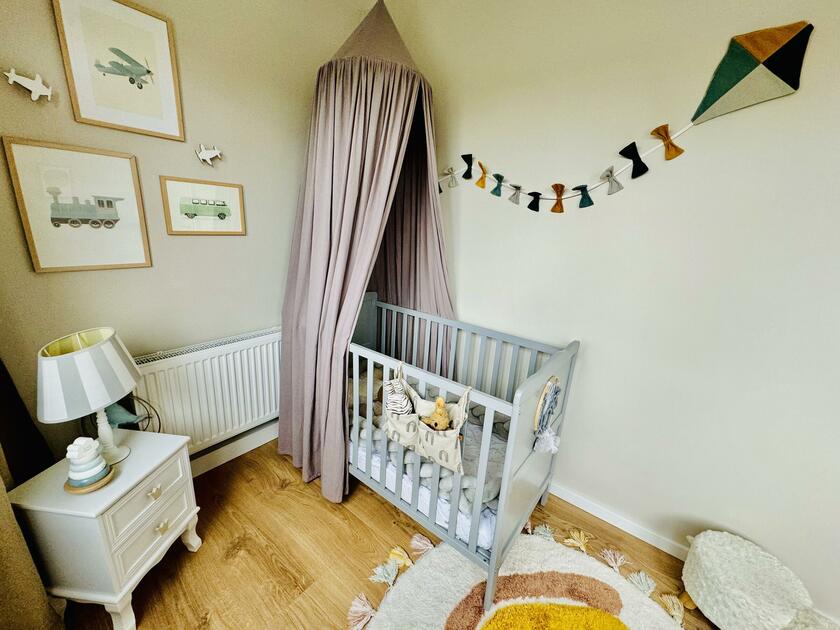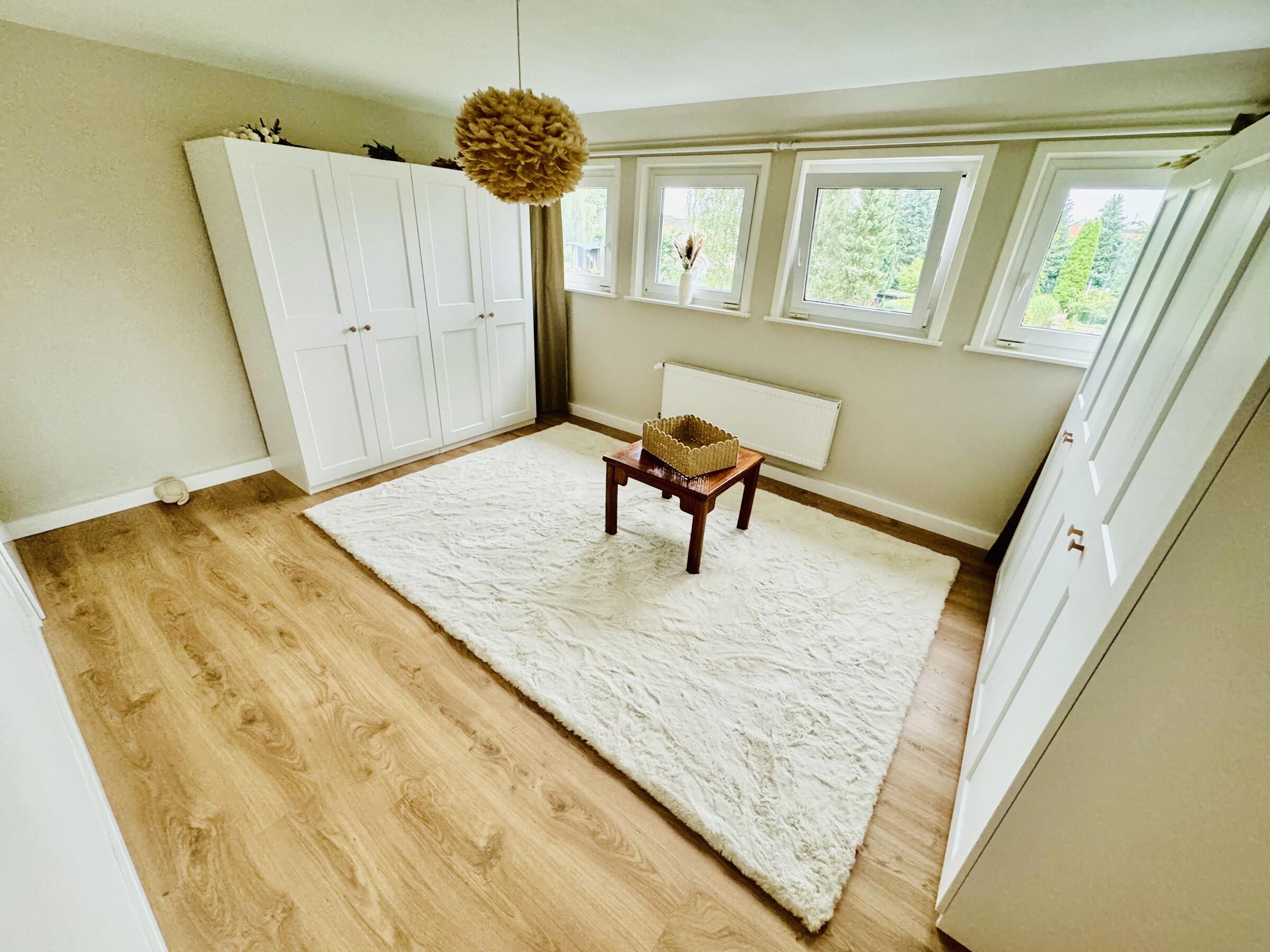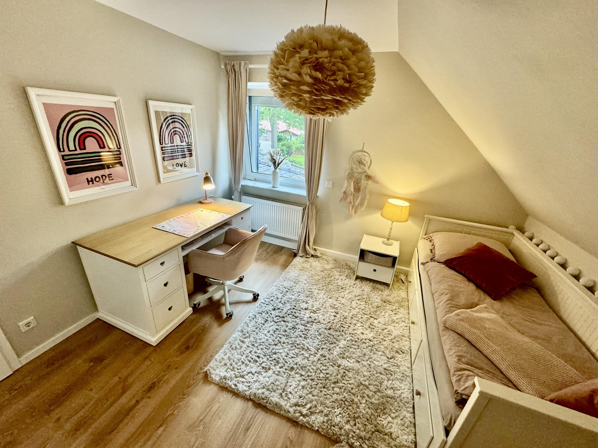 - Kinderzimmer (1. OG)Fläche: 13 m²Länge: 3,5 mBreite: 3,55 mHöhe: 2,45 mmöbliert: ja