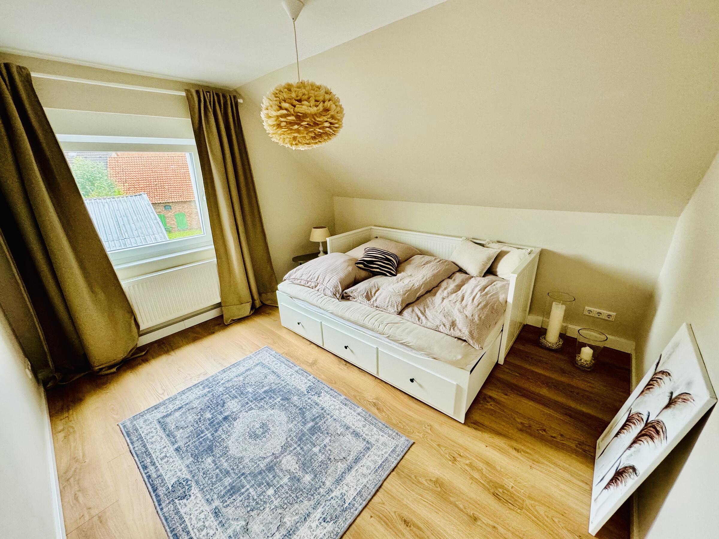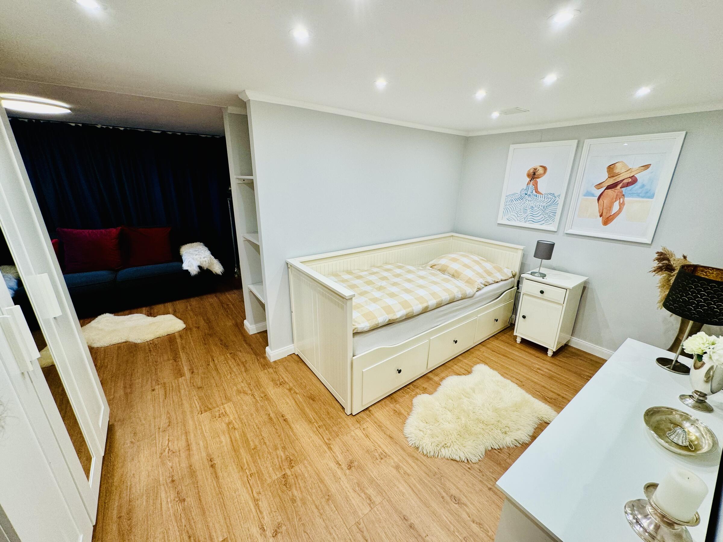 - Schlafzimmer (EG)Fläche: 17 m²Länge: 4,4 mBreite: 3,7 mHöhe: 2,7 mmöbliert: ja