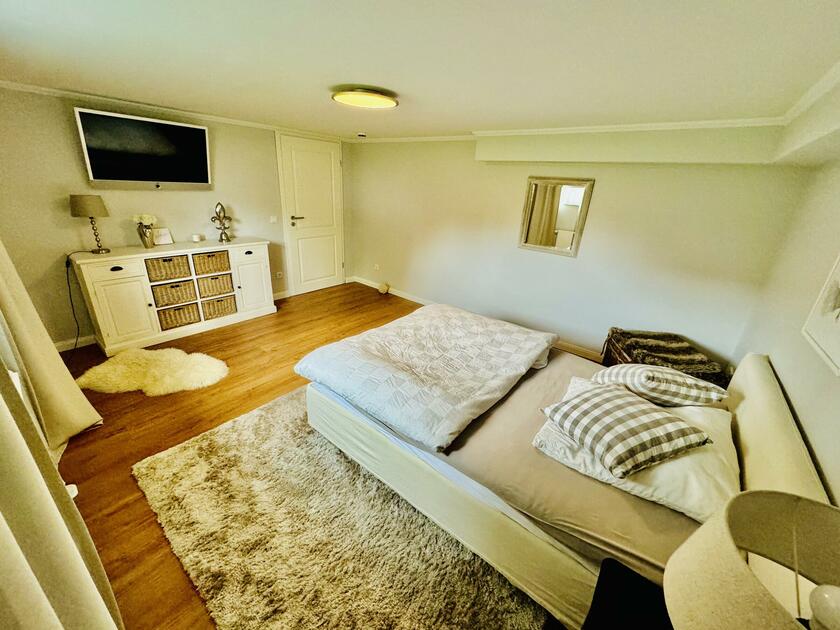 - Schlafzimmer (1. OG)Fläche: 13 m²Länge: 3,7 mBreite: 3,5 mHöhe: 2,45 mmöbliert: ja