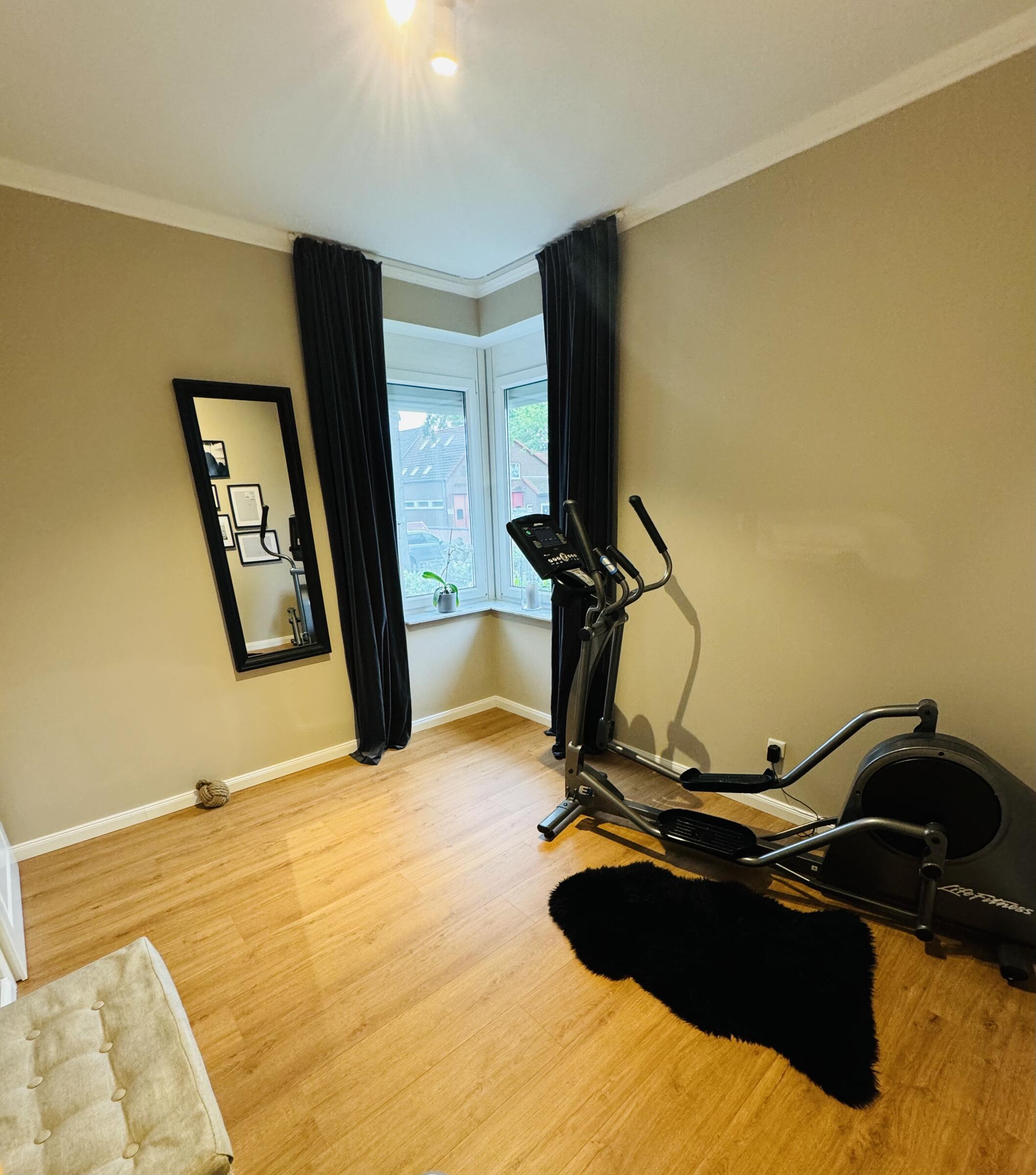 - Fitnessraum (EG)Fläche: 7 m²Länge: 2,85 mBreite: 2,35 mHöhe: 2,8 mmöbliert: ja