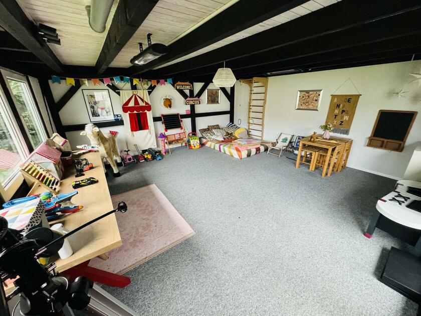 - Spielzimmer (EG)Fläche: 25 m²Länge: 5 mBreite: 5 mHöhe: 2,3 mmöbliert: ja