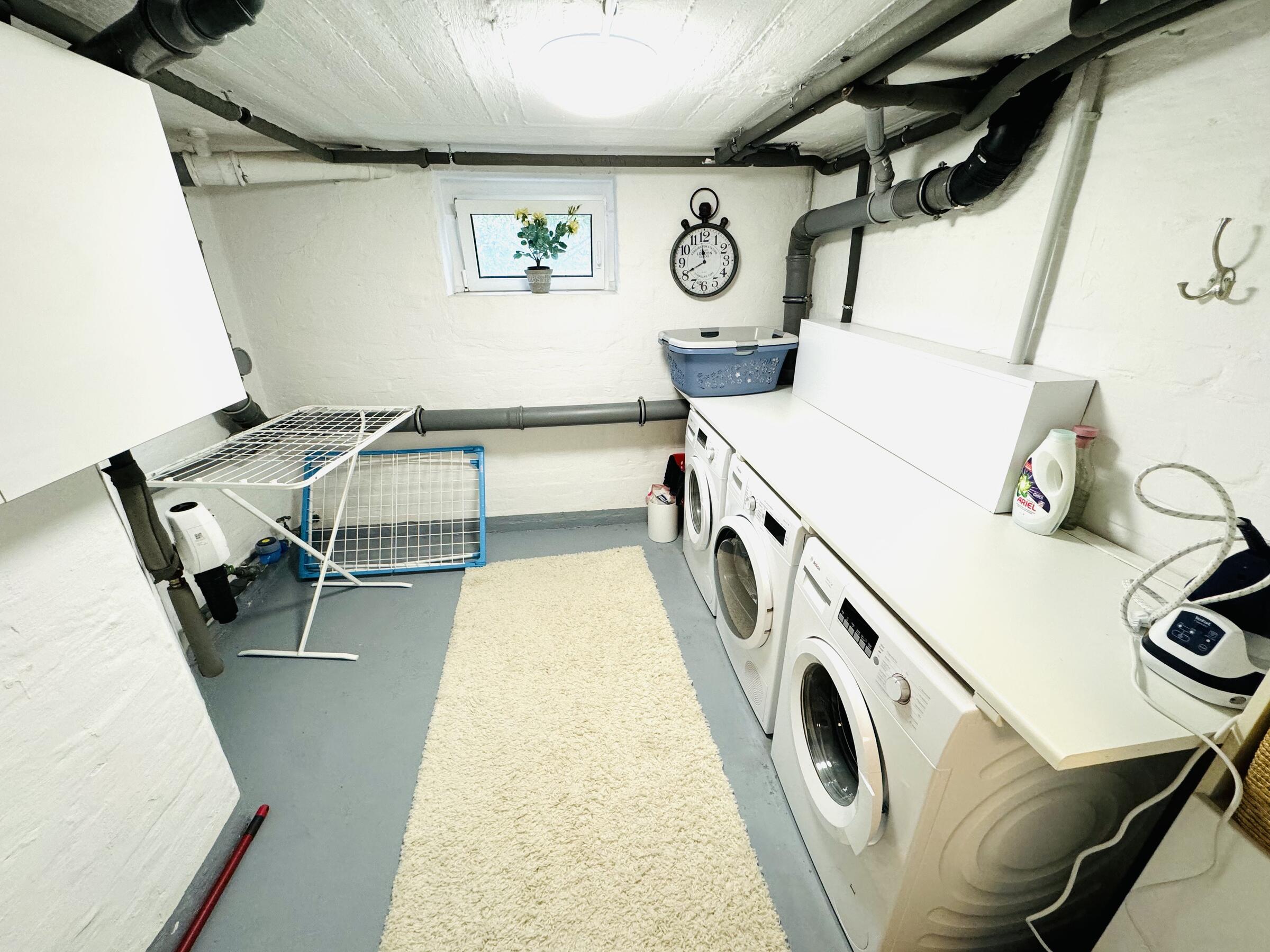 - Waschküche (1. UG)Fläche: 7 m²Länge: 2,3 mBreite: 2,8 mHöhe: 2,2 mmöbliert: ja