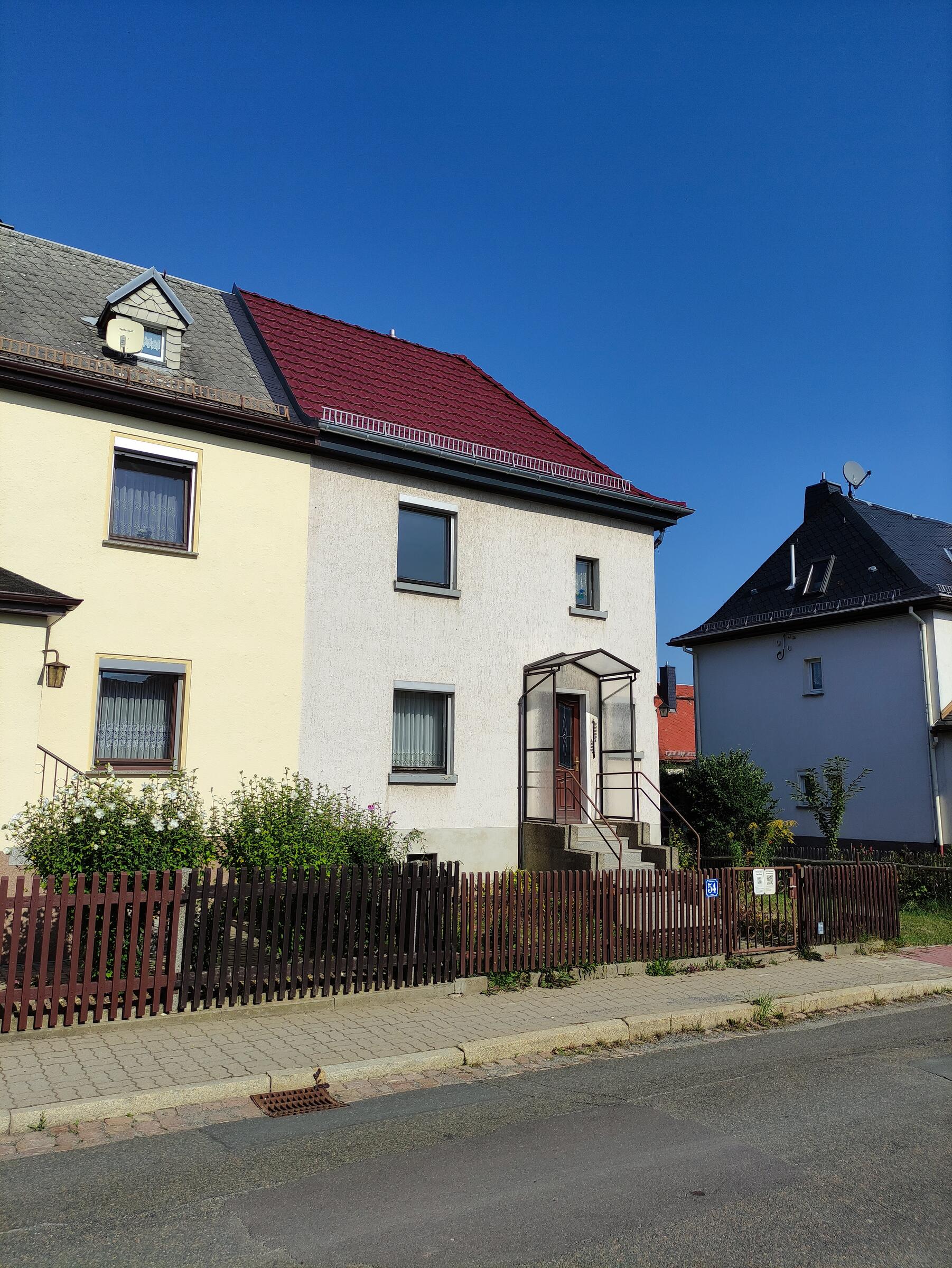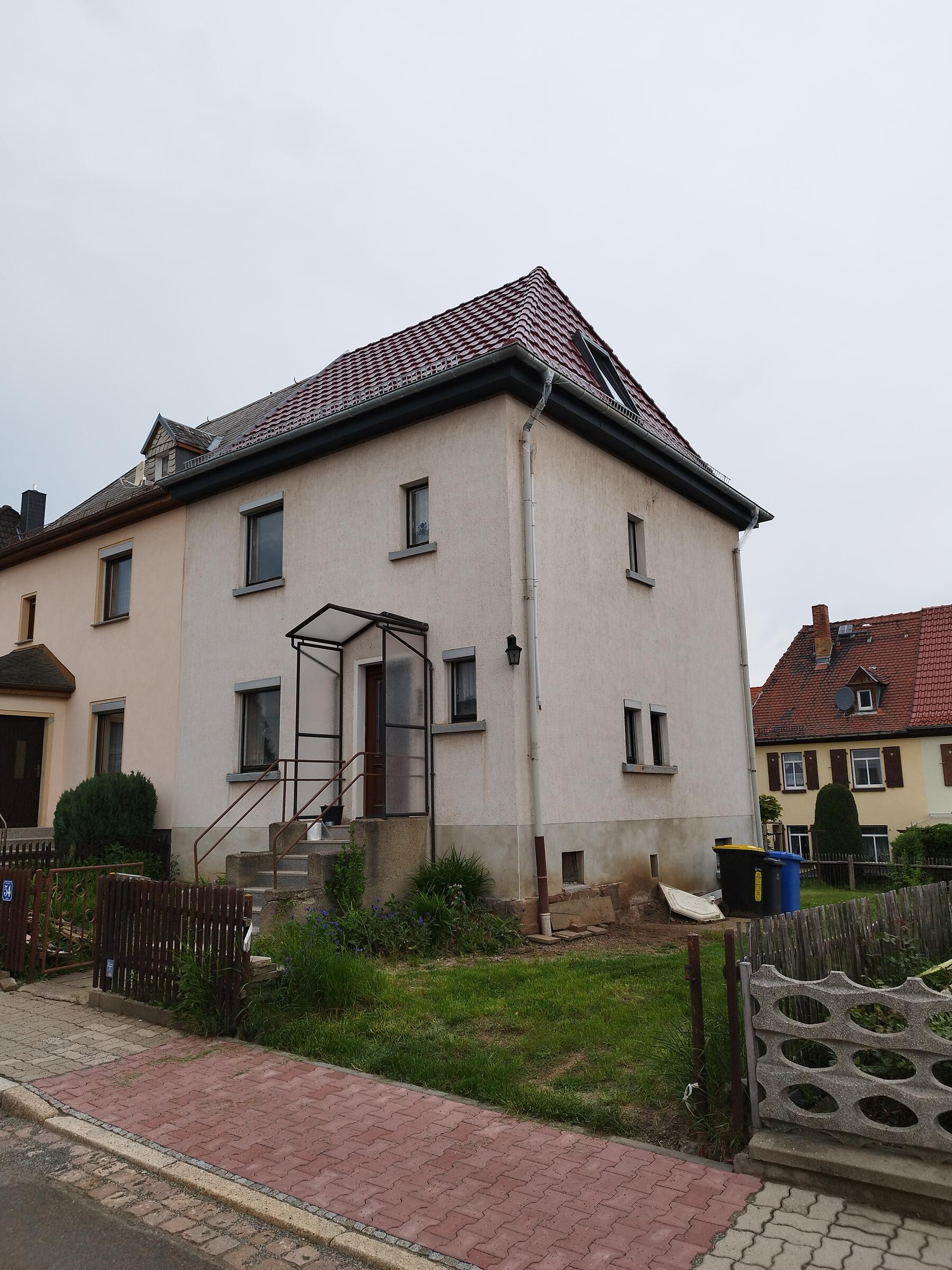 Die vollständig leerstehende Doppelhaushälfte befindet sind in einer gut bürgerlichen 100-jährigen Siedlung in der Nähe von Zwickau. Das Haus verfügt über einen Wasseranschluss, einen Standard 14 kW Hausanschluss für Strom aber keine Heizung. Das Gesamte Haus befindet sich derzeit in einem Roh- bzw. Ausbauzustand. Die Wände, Böden und Decken, der einzelnen Räume können für Produktionszwecke umgestaltet werden. Der kleine Garten um das Haus kann für eine Produktion ebenfalls genutzt werden. Hier kann auch ein mobiles Toilettenhäuschen gestellt werden. Das gesamte Grundstück hat eine Fläche von 291 m².